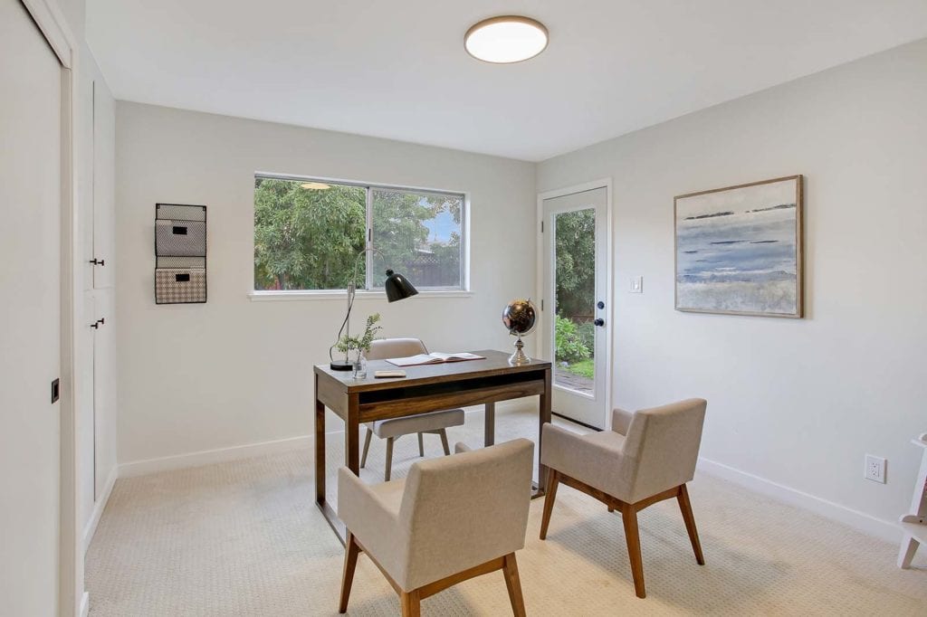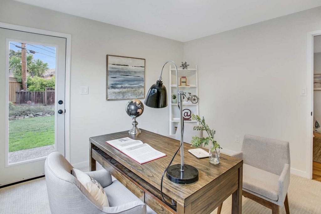 Wonderful single family home situated in desirable Darvon Park cul-de-sac features the 2nd largest lot in development with plenty of room to expand, 4 spacious bedrooms, & separate family/living areas. The front porch leads you into the mud-room & beyond this sits the sun-filled formal living area complete w/ wood-burning fireplace & huge paneled window. The family room sits adjacent to the kitchen/dining area & eat-in kitchen features shaker-style cabinets, tile backsplash, granite countertops, sun tunnel large dining area, & sliding glass door leading out to expansive backyard. Master bedroom is complete w/ ensuite, attached office room (perfect for working from home), & a private entrance to the backyard. Other features include central heating, refinished hardwood flooring, spacious hall bathroom w/ dual sink vanity, & expanded third bedroom w/ dual closets & built-in desk with shelving. The home sits in close proximity to Apple Spaceship campus, parks, and Nob Hill Shopping center.
