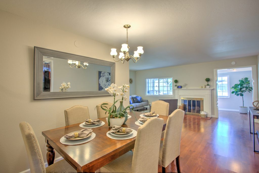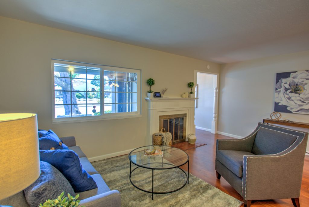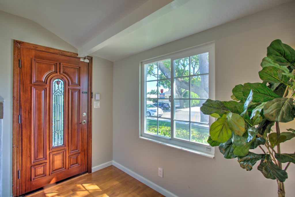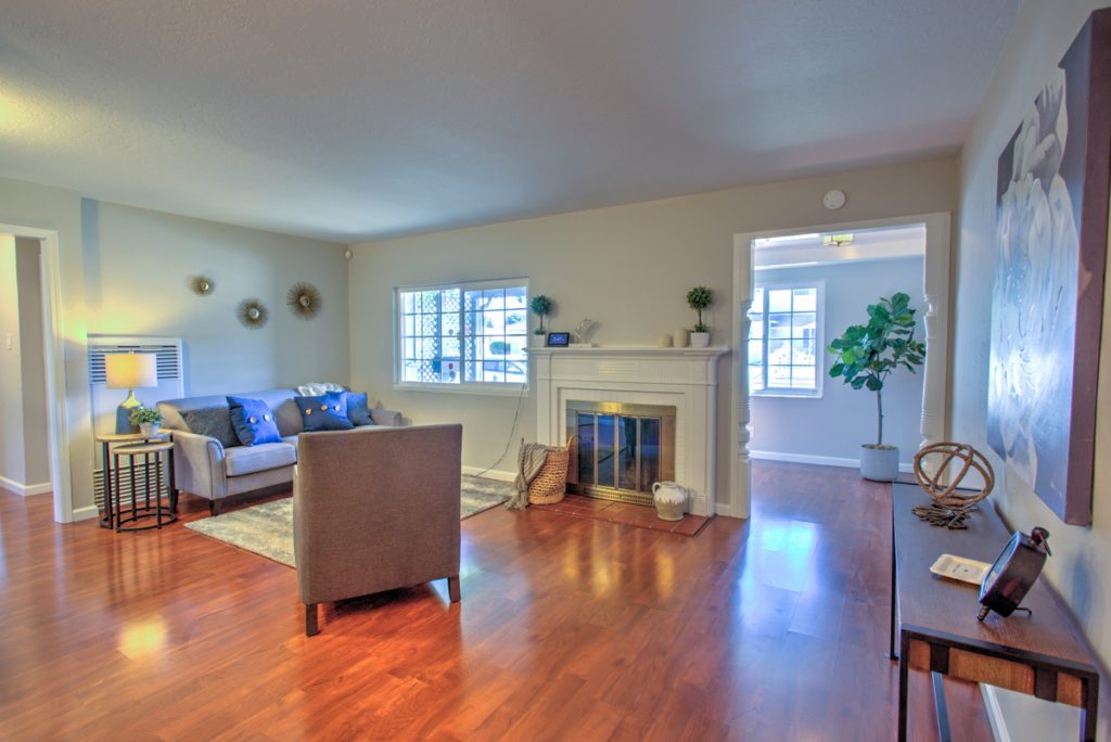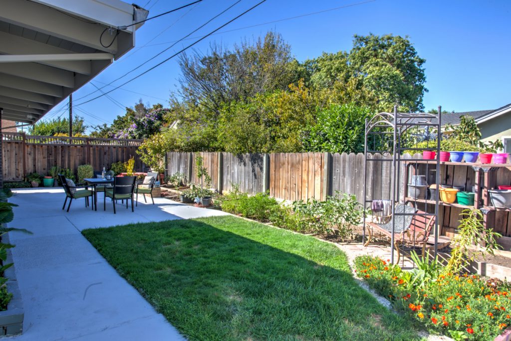Wonderful single-family home situated in Scott Lane Gardens features separate living and family rooms, four sizeable bedrooms, and landscaped front/back yards. Welcoming front porch leads to a formal entry connecting to the formal living and dining area. Central galley-style kitchen features granite countertops, stainless-steel appliances, and pass-through window that overlooks large family room with fireplace, built-ins, and high exposed beam ceilings. Serene backyard features a concrete patio, two storage sheds, flower beds, planters, and grass area. Home is conveniently located near great schools, parks, shopping, and tech companies.