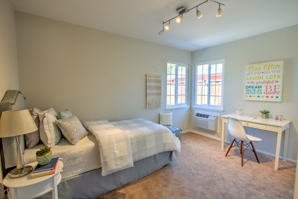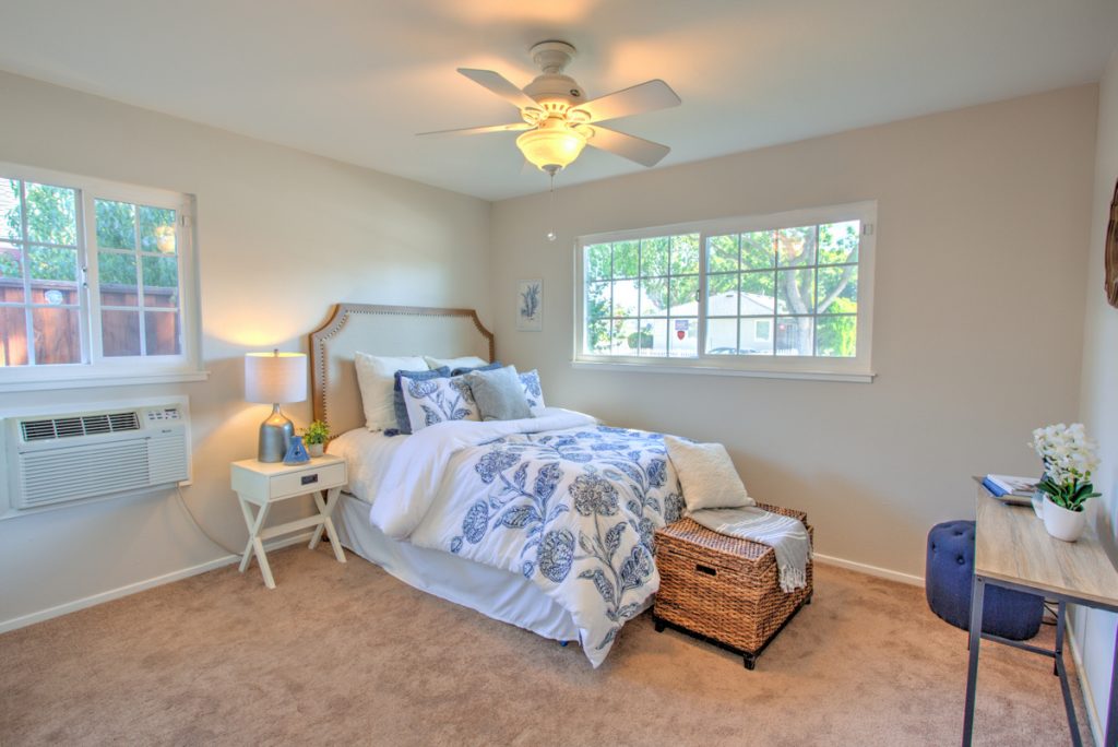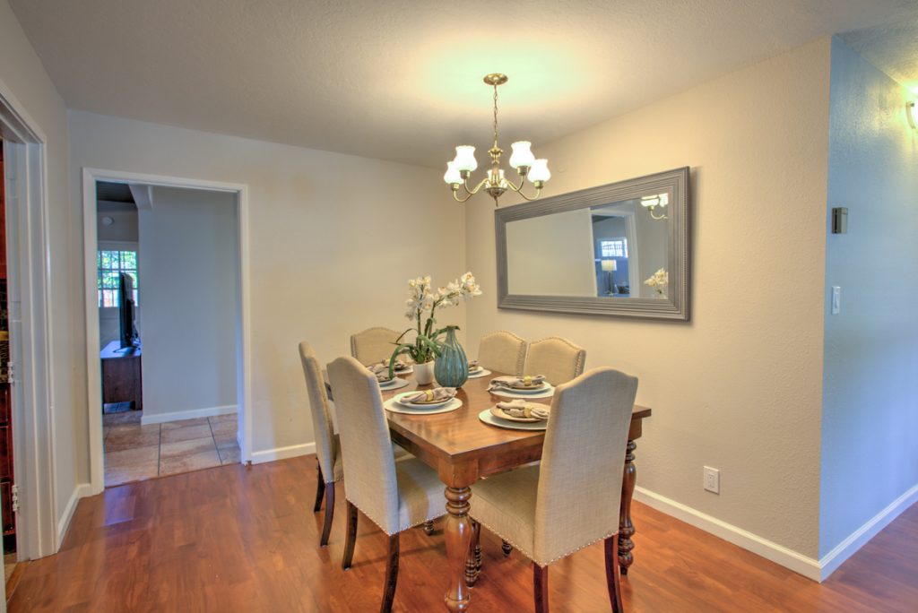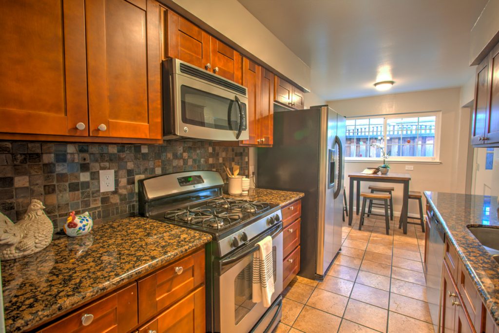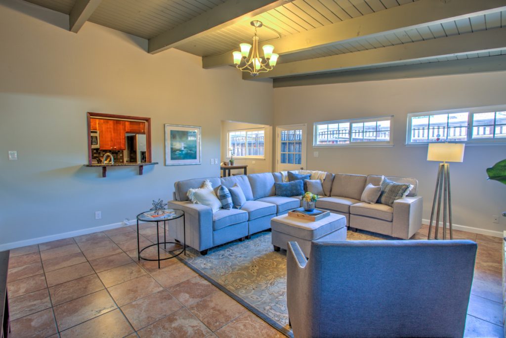 Wonderful single-family home situated in Scott Lane Gardens features separate living and family rooms, four sizeable bedrooms, and landscaped front/back yards. Welcoming front porch leads to a formal entry connecting to the formal living and dining area. Central galley-style kitchen features granite countertops, stainless-steel appliances, and pass-through window that overlooks large family room with fireplace, built-ins, and high exposed beam ceilings. Serene backyard features a concrete patio, two storage sheds, flower beds, planters, and grass area. Home is conveniently located near great schools, parks, shopping, and tech companies.