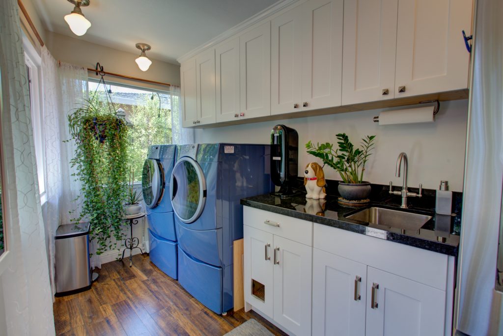 - Laundry room with sink and true black granite countertops
