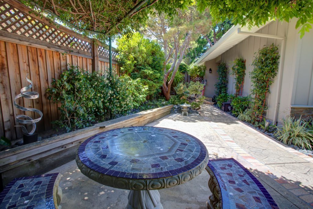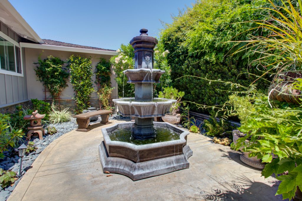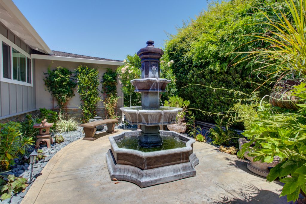 Beautifully updated Killarney Farms home features two spacious living areas, gourmet kitchen, and immaculate front/backyard landscaping. Chef’s kitchen is complete with Thermador appliances, pot filler, soft-close doors and drawers, retractable mixer stand, Brazilian granite countertops, LED recessed/under counter lighting, and lazy susan corners. Elegantly renovated bathrooms feature Absolute black granite countertops and Kohler brushed nickel fixtures. Master en suite features lighted medicine cabinets with power outlets, heated floors, and frameless shower enclosure. Professionally landscaped ever-blooming yards feature 3 cast stone A. Silvestri fountains, benches, and mosaic tiled table. Home is approx. 3.3 miles to Apple Spaceship campus. Easy walk to parks, shopping, schools and high tech company shuttle stops.