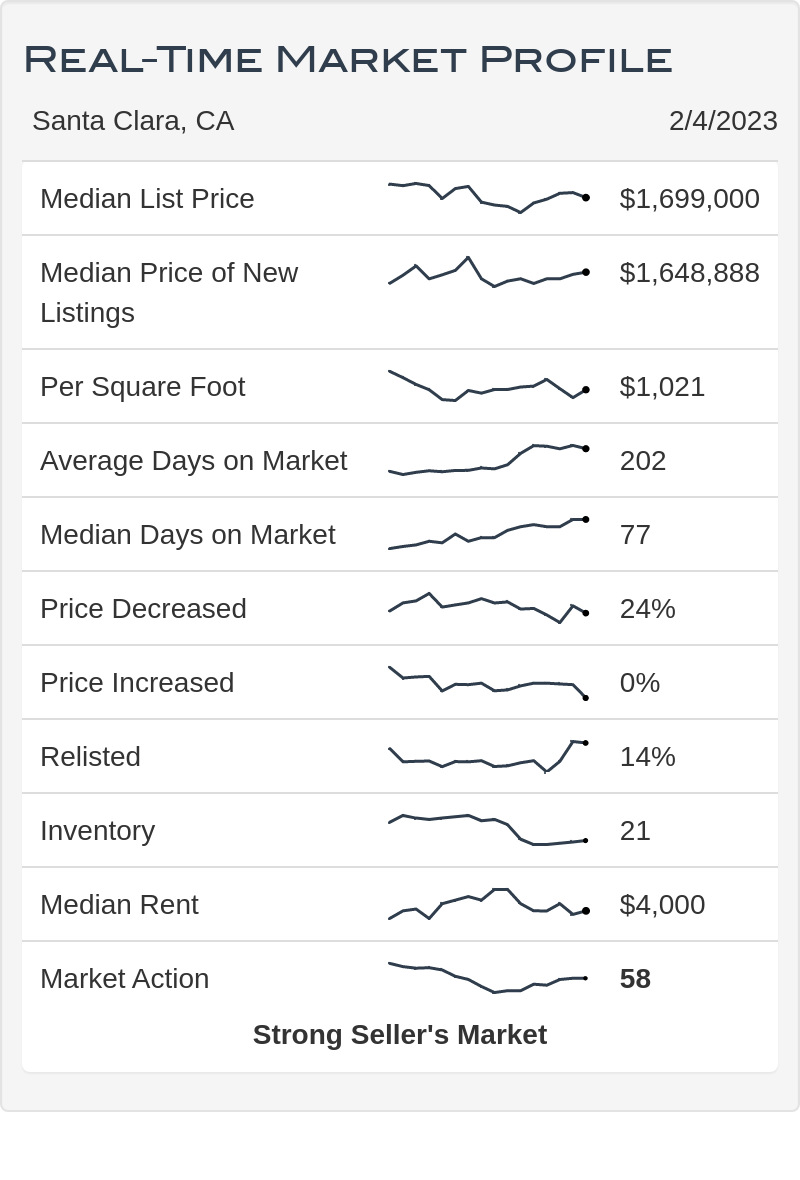 January Santa Clara Home Sales Recap The Santa Clara housing market in January experienced 19 single-family homes that closed escrow, which is 6 less than closed escrow in the previous month of December. For some more perspective, last year there were 34 homes sold in January. The average price of a home sold in January was […]