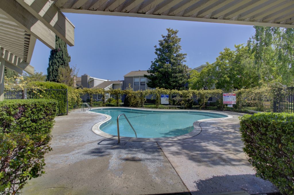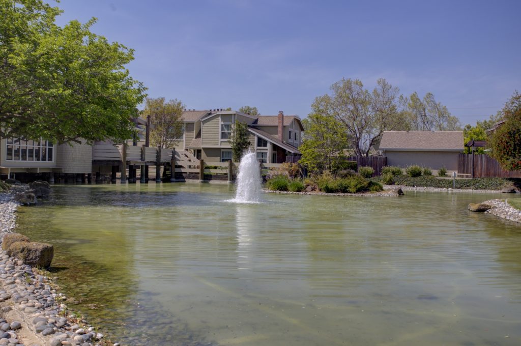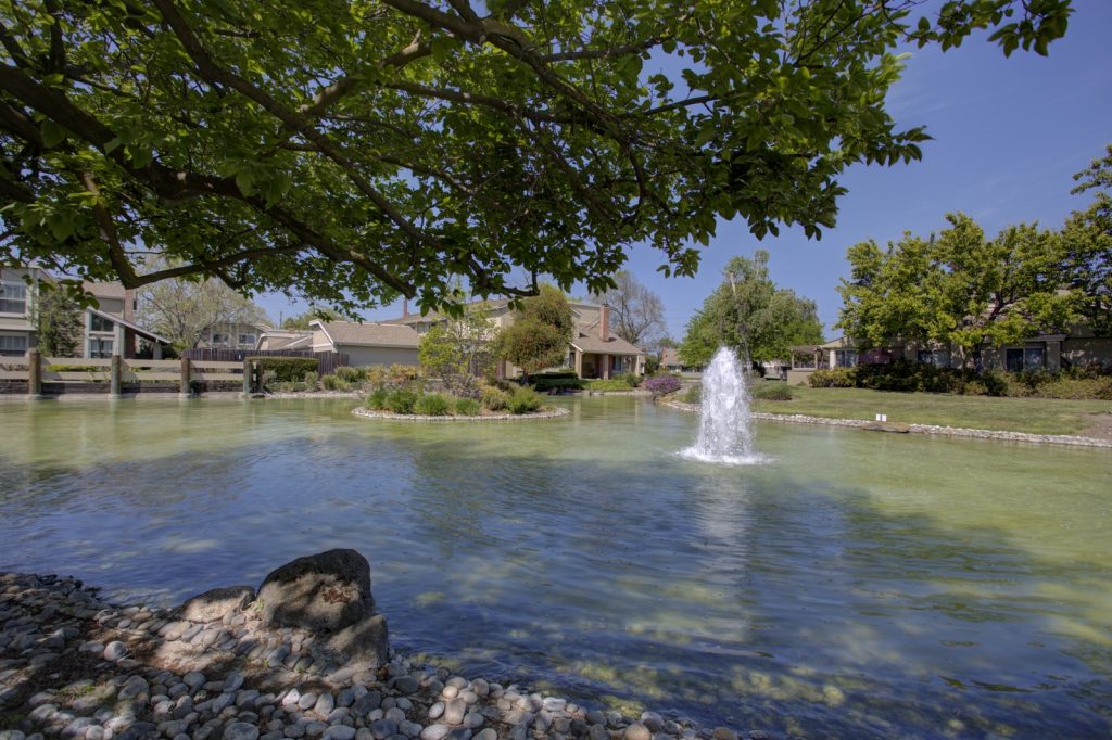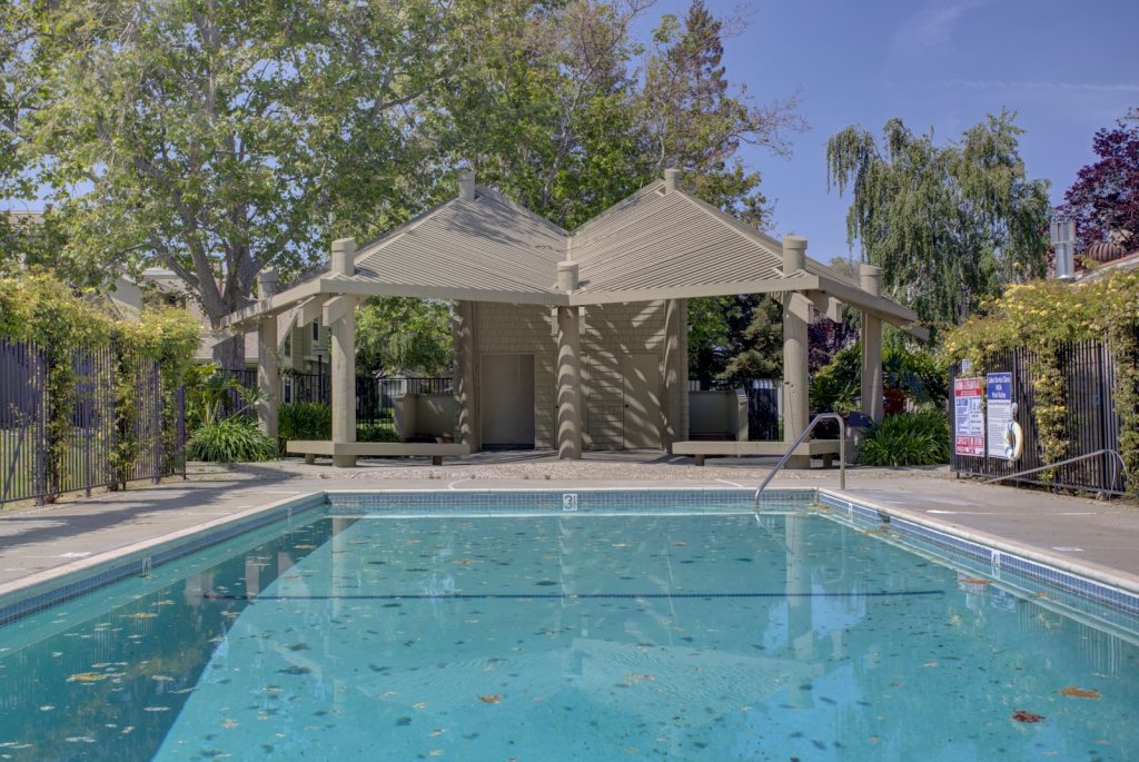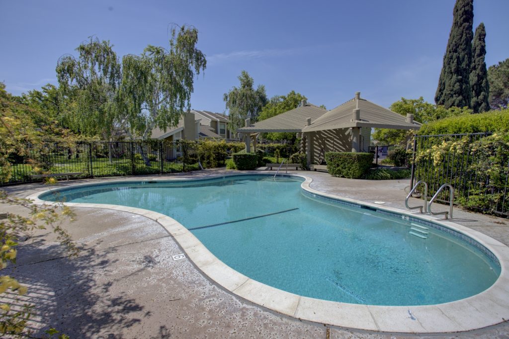 Desirable Lake Santa Clara townhome in optimal location centrally located in complex and across from large green belt, and closet proximity to community pool and clubhouse. This spacious townhome features three bedrooms and 2 and a half baths. Spacious kitchen has been upgraded with tile flooring, maple cabinetry, granite countertops, full backsplash and stainless steel appliances. Unit also features a large patio with deck, private fountain, two car garage with roll-up door and automatic opener. Master bedroom is spacious and features attached private bath and walk-in closet. Other features include dual pane windows and sliding glass door, inside laundry, central AC and heat. Complex features two pools, clubhouse, guest parking areas, and in close proximity to San Tomas Aquino Trail.