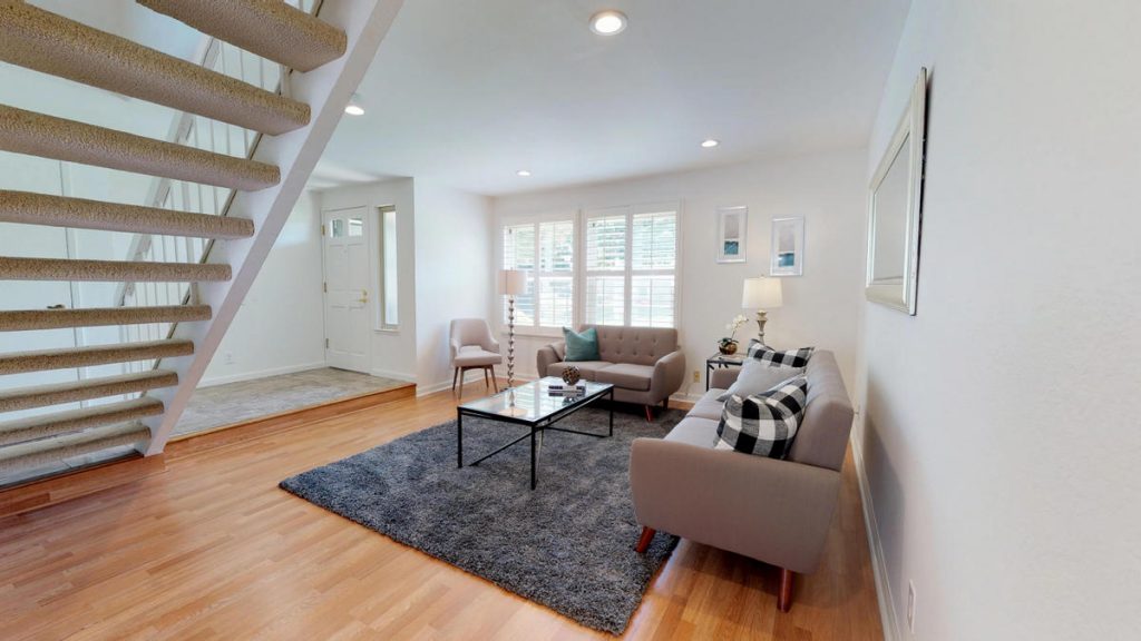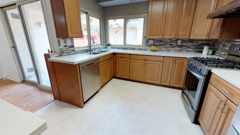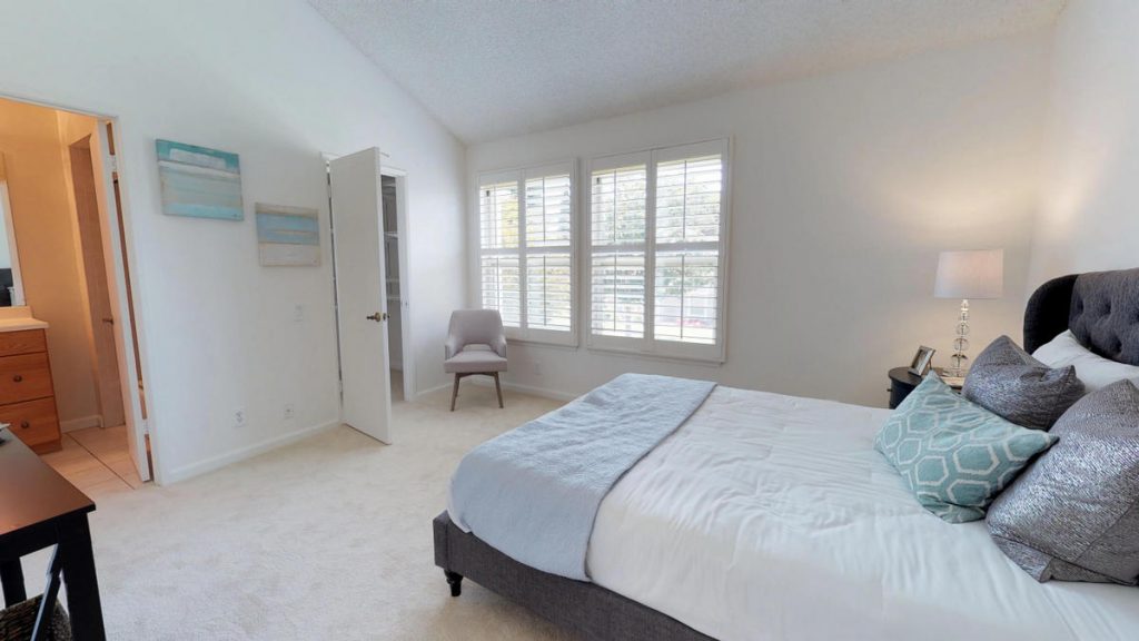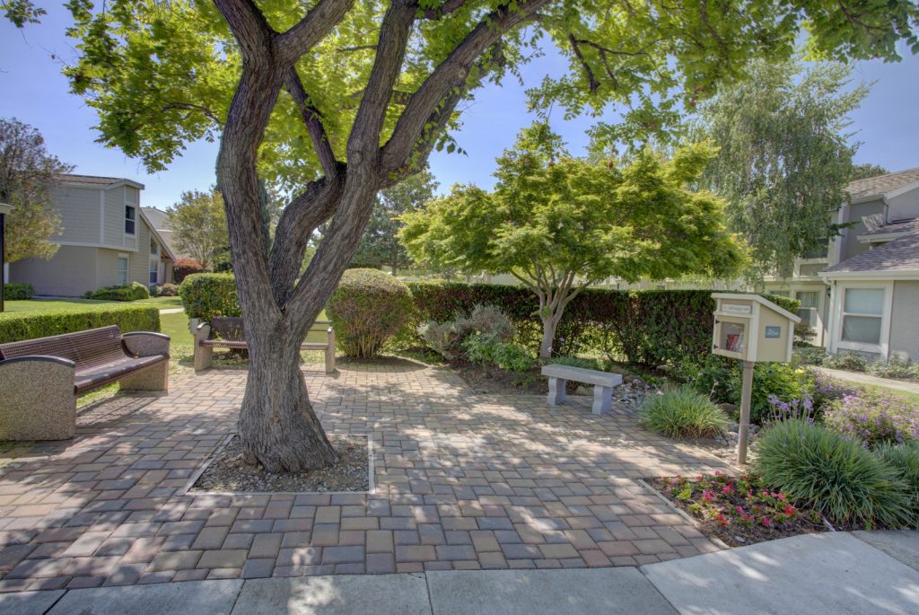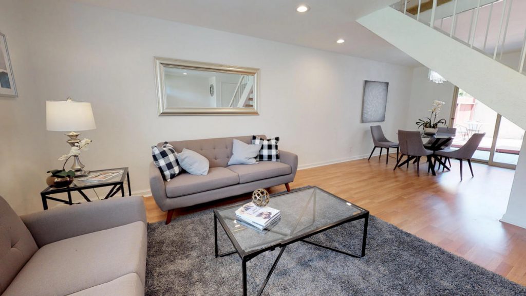 Desirable Lake Santa Clara townhome in optimal location centrally located in complex and across from large green belt, and closet proximity to community pool and clubhouse. This spacious townhome features three bedrooms and 2 and a half baths. Spacious kitchen has been upgraded with tile flooring, maple cabinetry, granite countertops, full backsplash and stainless steel appliances. Unit also features a large patio with deck, private fountain, two car garage with roll-up door and automatic opener. Master bedroom is spacious and features attached private bath and walk-in closet. Other features include dual pane windows and sliding glass door, inside laundry, central AC and heat. Complex features two pools, clubhouse, guest parking areas, and in close proximity to San Tomas Aquino Trail.