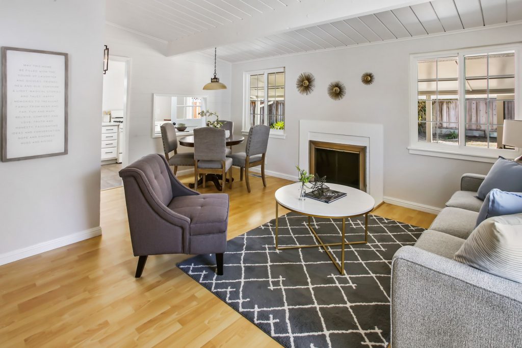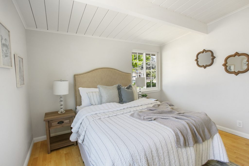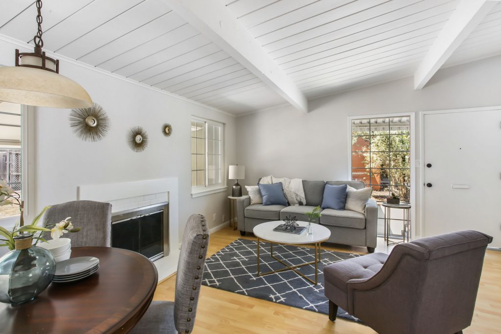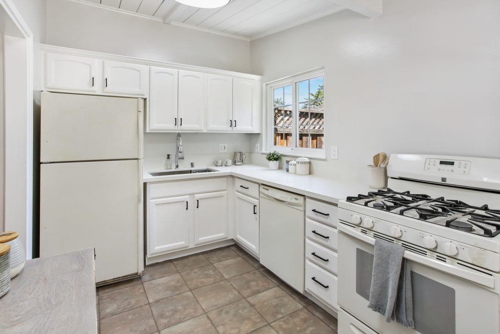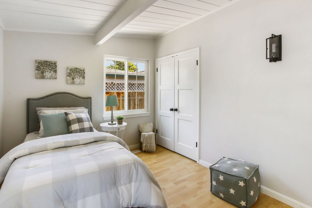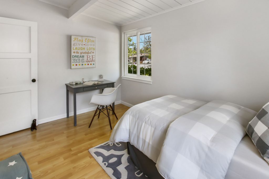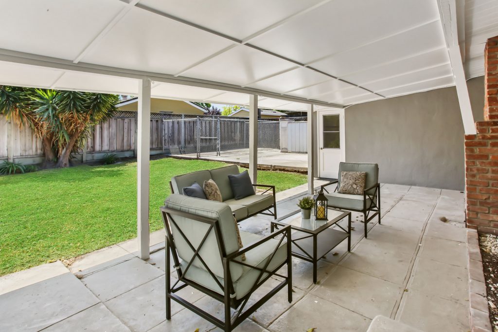 Great starter home in San Jose’s coveted Cory Neighborhood. This home features a convenient layout with an open living room and kitchen area. The living room features exposed beam ceilings and a wood-burning fireplace. The kitchen has been updated with quartz countertops and features LED lighting, new stainless steel under-mount sink, and gas cooking. Bedrooms are spacious and feature large closet areas. The bathroom features tile flooring and tiled tub surround with glass-enclosed. Backyard features covered patio and large lawn area with dog run. The home also features a 2 car garage with automatic opener. Other features include dual pane windows, central heating, and air conditioning.