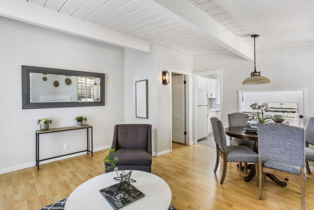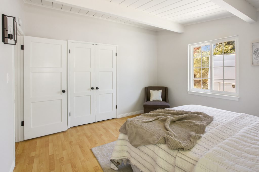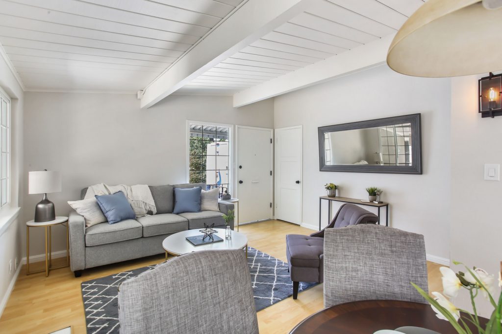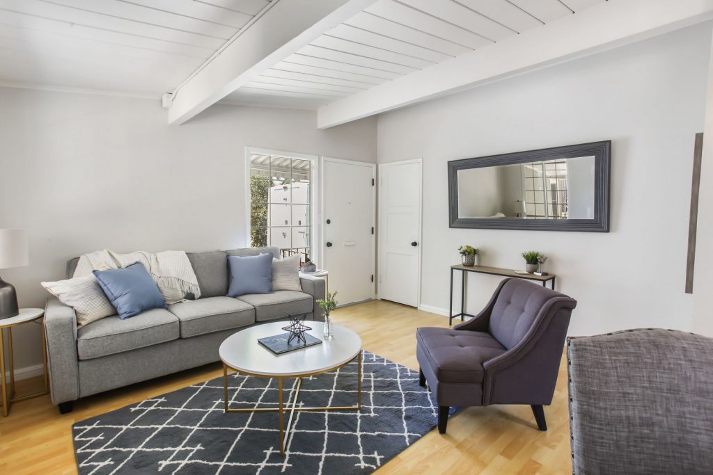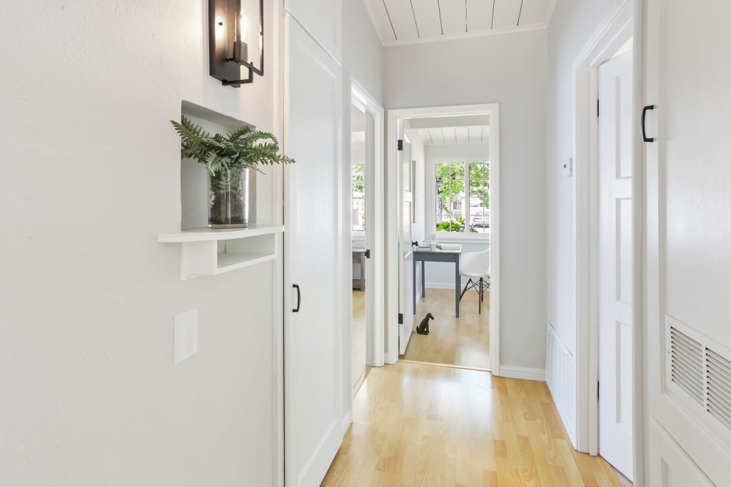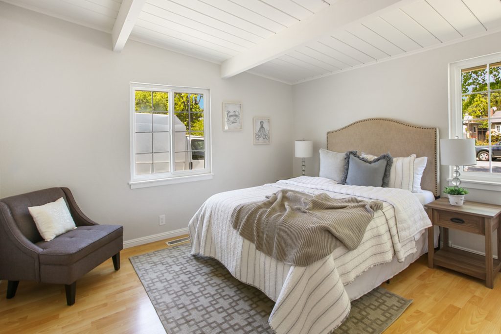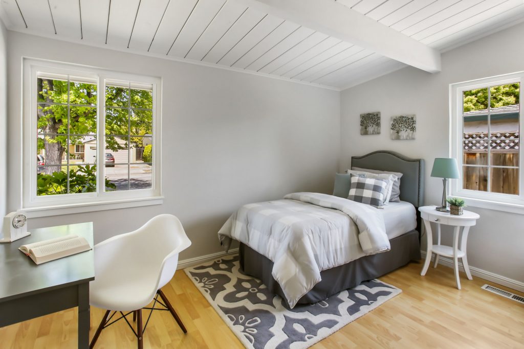 Great starter home in San Jose’s coveted Cory Neighborhood. This home features a convenient layout with an open living room and kitchen area. The living room features exposed beam ceilings and a wood-burning fireplace. The kitchen has been updated with quartz countertops and features LED lighting, new stainless steel under-mount sink, and gas cooking. Bedrooms are spacious and feature large closet areas. The bathroom features tile flooring and tiled tub surround with glass-enclosed. Backyard features covered patio and large lawn area with dog run. The home also features a 2 car garage with automatic opener. Other features include dual pane windows, central heating, and air conditioning.