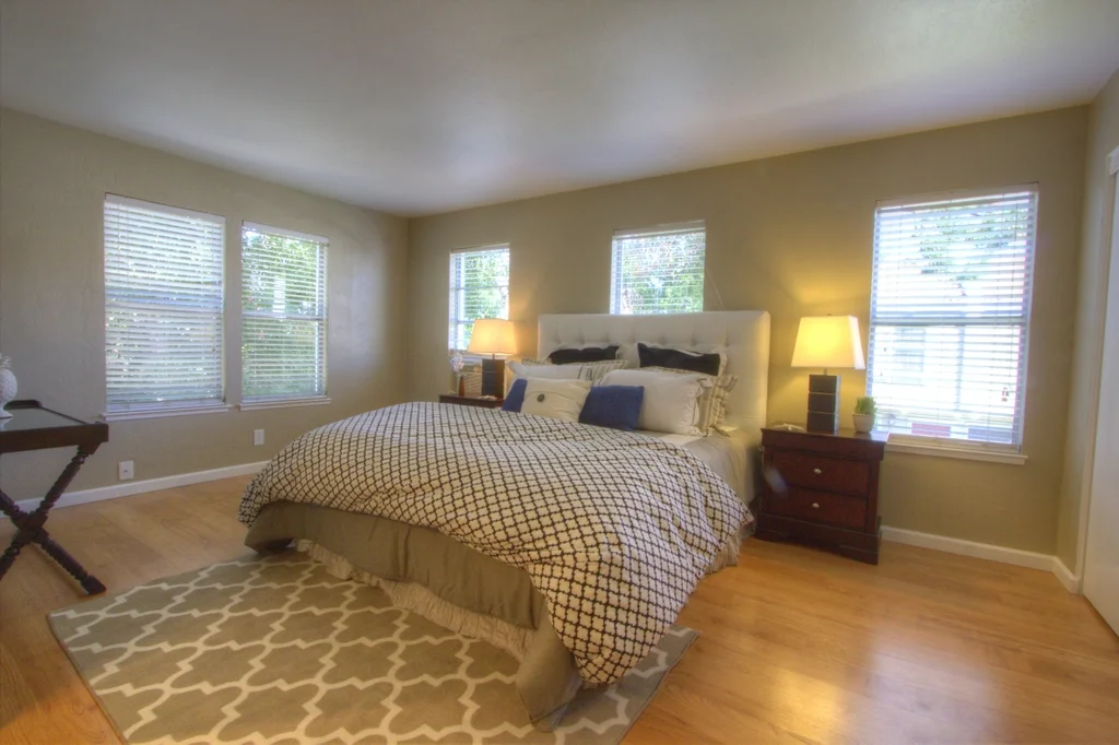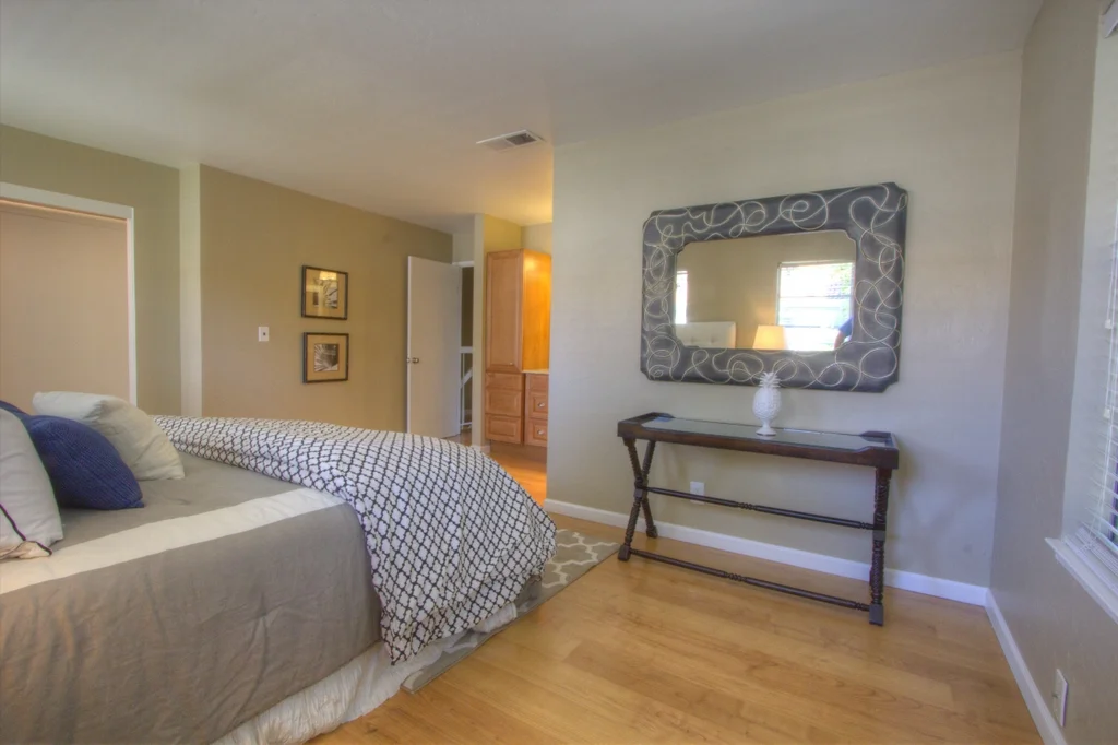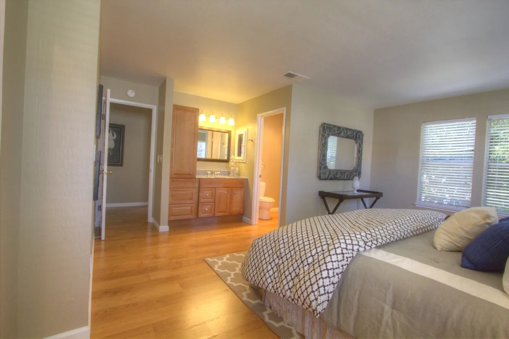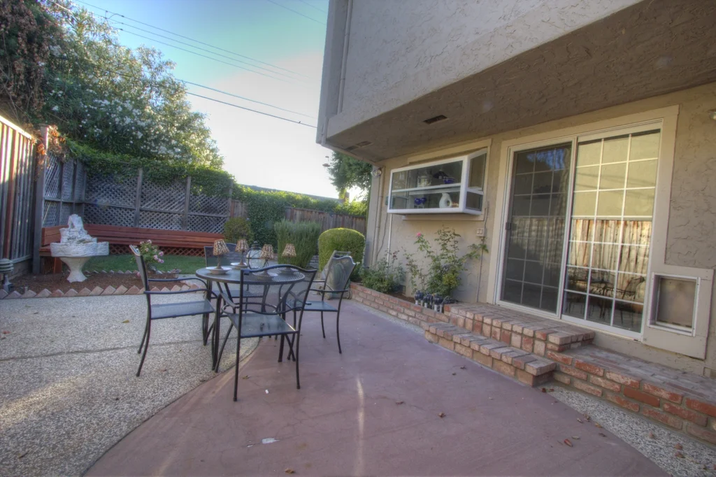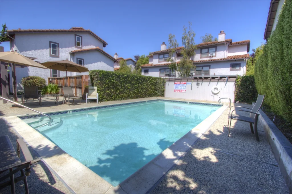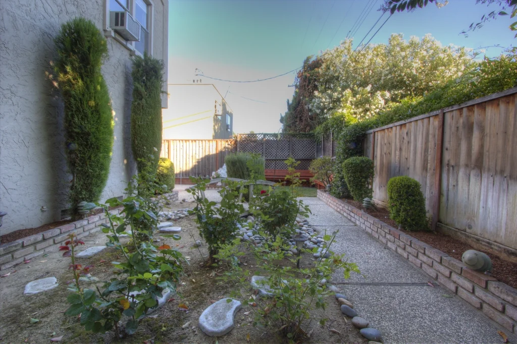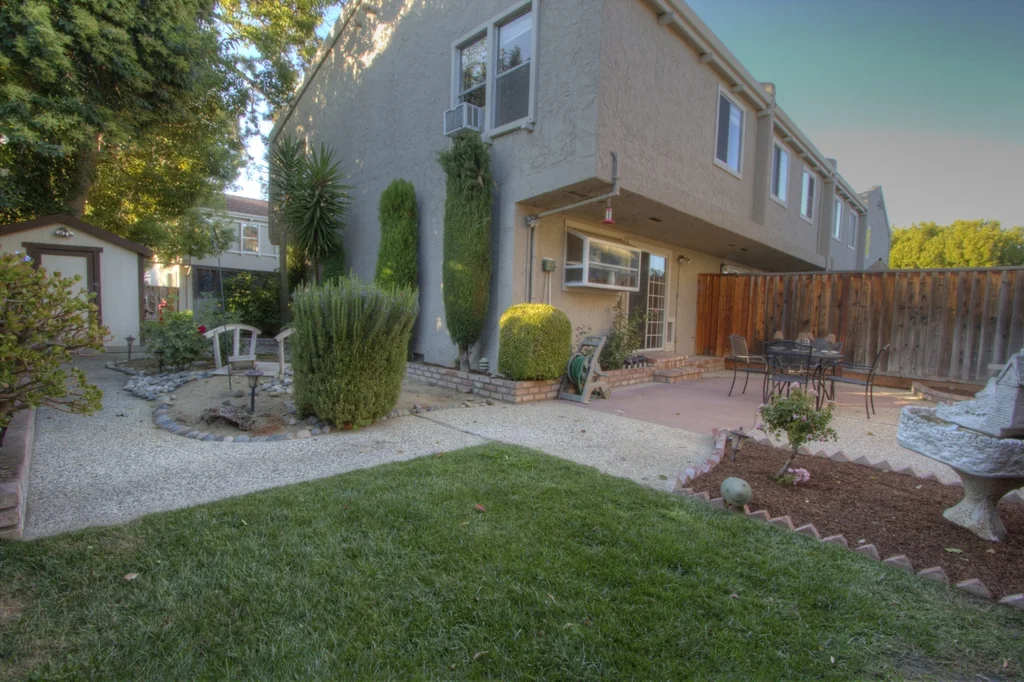 Beautiful, spacious townhouse-style condo with two master suites. One designated parking spot plus 1-car garage. End unit at the back of a small complex that only shares one wall – no downstairs or upstairs neighbors! Convenient inside laundry. Conveniently located; Walk or bike to Valley Fair Mall, Santana Row, Santa Clara Farmers Market and nearby parks. Close to Nvidia, the new Apple campus, Santa Clara University and freeways. Private backyard oasis with room to garden or entertain. A lovely place to relax and unwind after a long work day. Side yard includes lemon tree, rosemary bush and spectacular, fragrant roses. Youre sure to get a visit from the neighborhood hummingbirds!