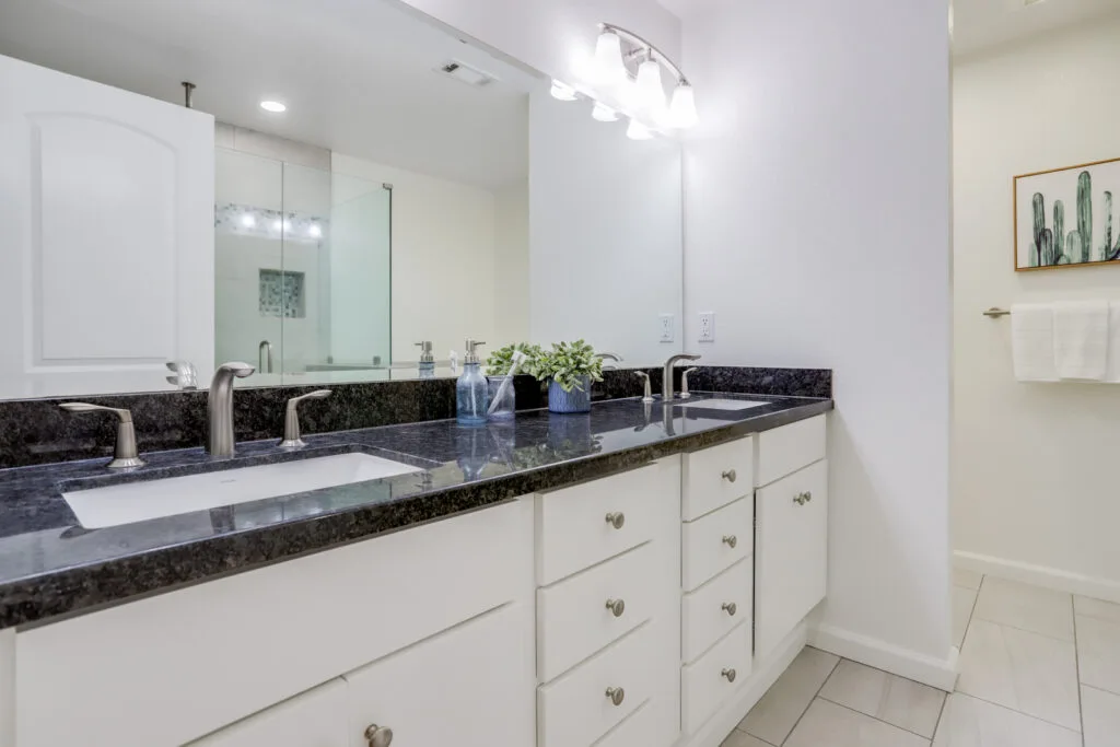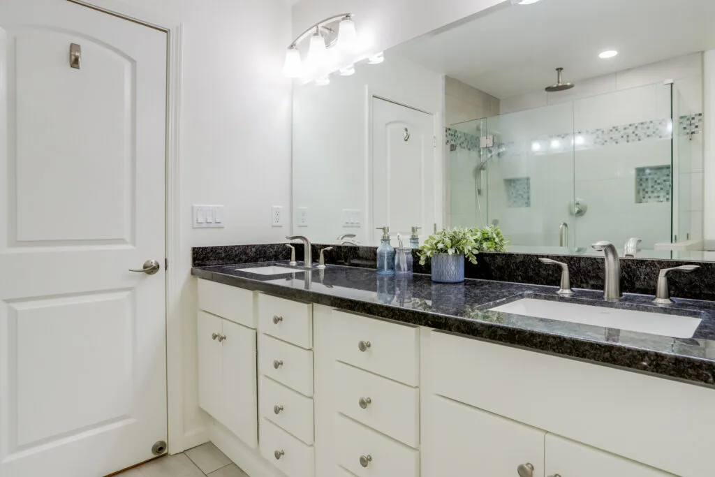 - Ensuite bath features dual vanity, jetted tub, and large stall shower