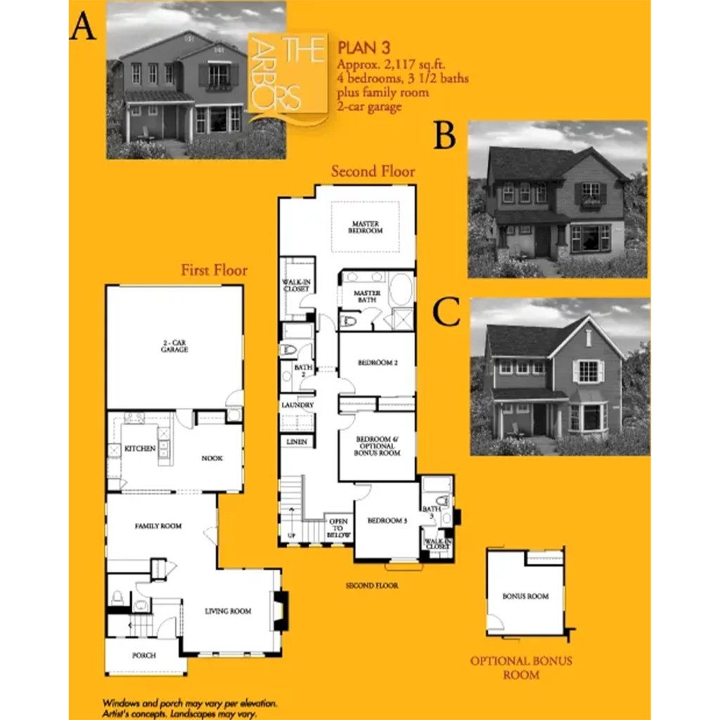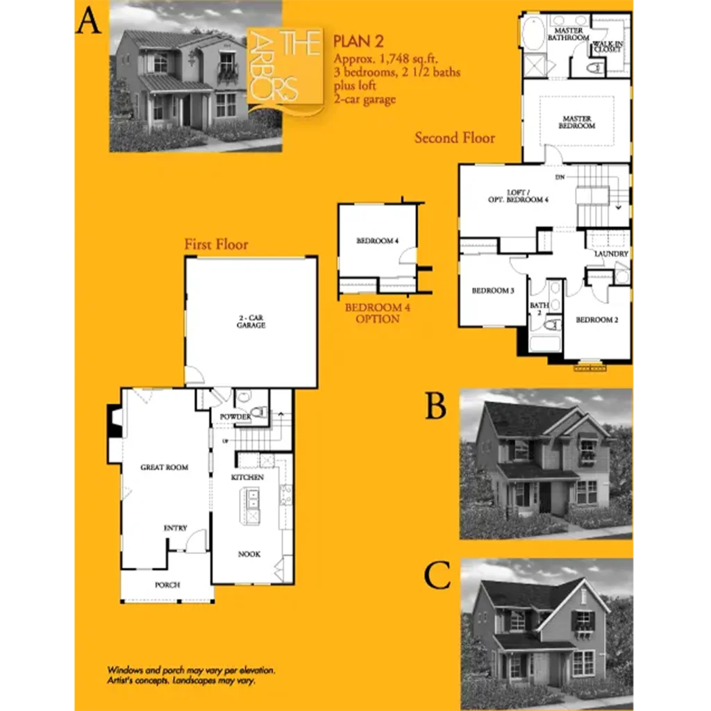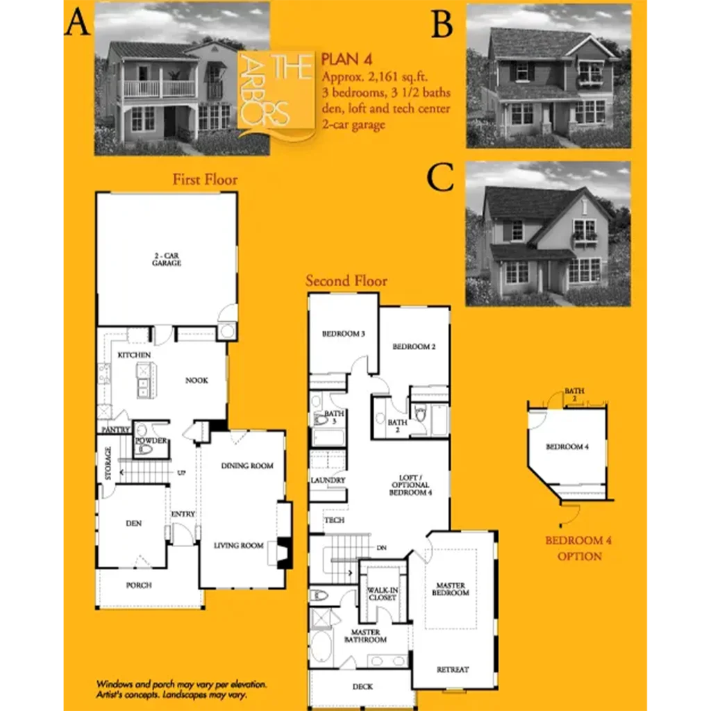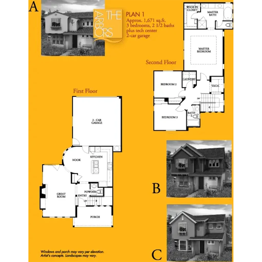 The Arbors, by Centex Homes, features 81 traditional two-story single-family homes. This cozy neighborhood is a patchwork of charming carriageways and shared walkways. The Arbors’ homes range in size from 1,671 to 2,100 square feet and have three to four bedrooms, two and a half baths, and two-car garages.