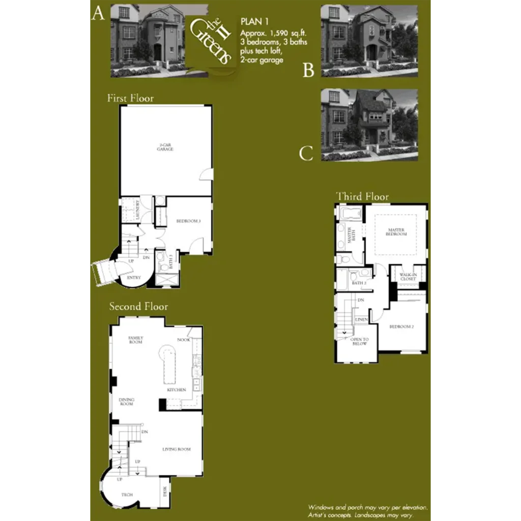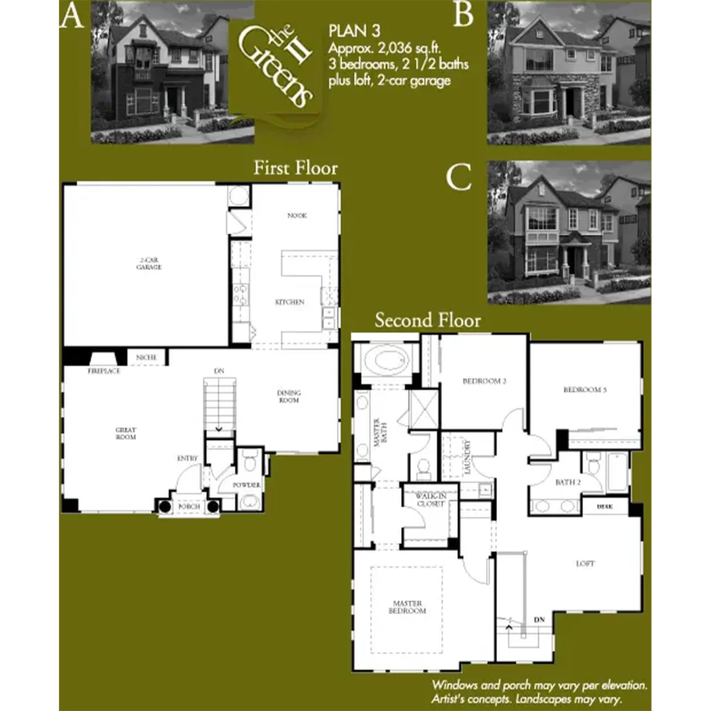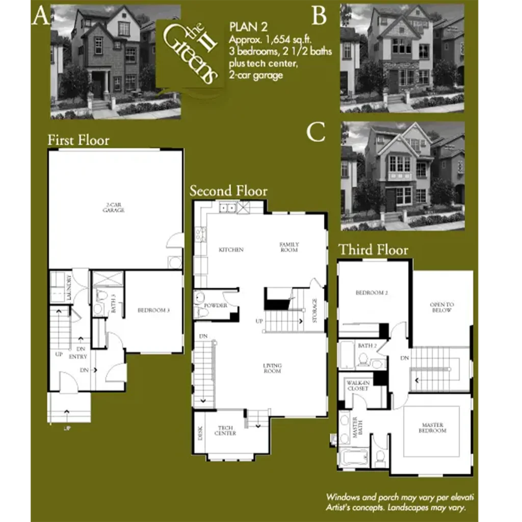 The 63 homes in The Greens II by Lennar Homes are two and three story cottages. Each home in this charming neighborhood ranges in size from 1,590 to 2,036 square feet and has three bedrooms and two and a half to three and a half baths. The Greens II homes also have porches and two-car garages.