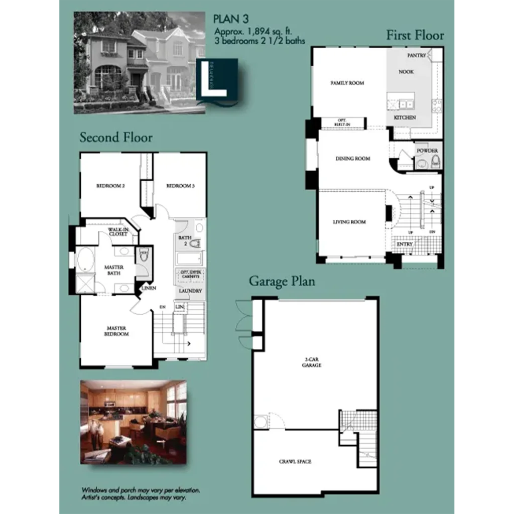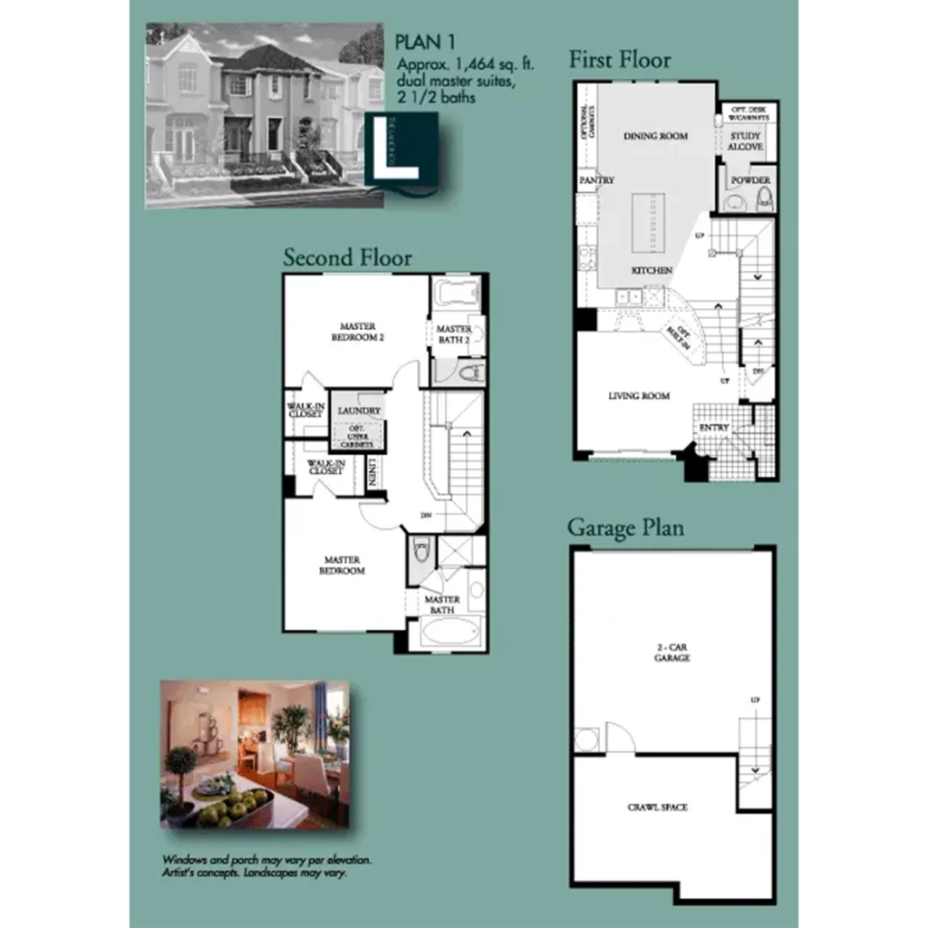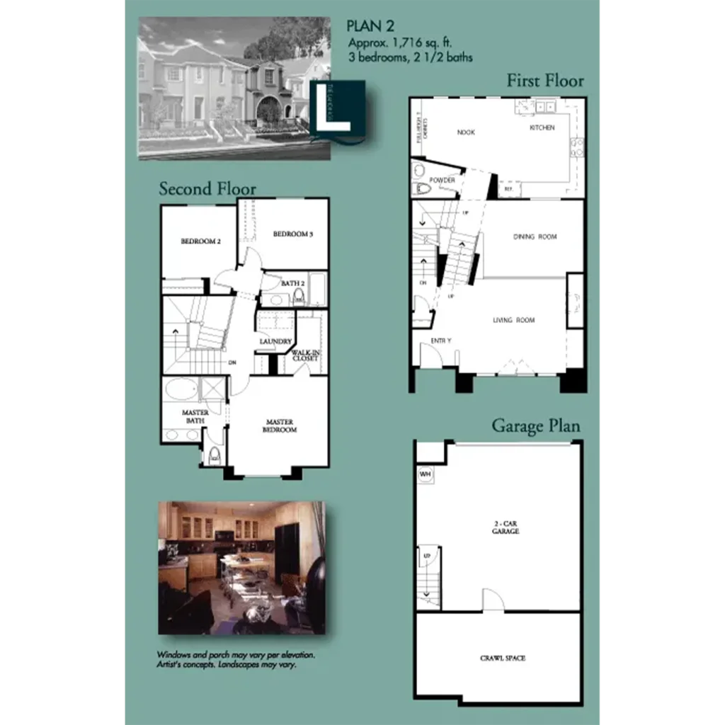 The architectural influence of San Francisco’s Marina District can be seen in the 109 homes of The Landings by Shea Homes. These lovely walk-up town homes range in size from 1,500 to 1,900 square feet and have two or three bedrooms, two and one-half baths, and a two-car garage.
