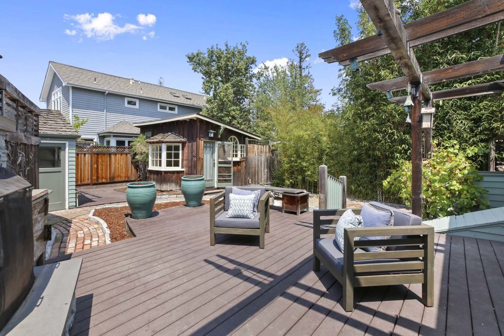 Charming Historic Palo Alto home with separate Studio Cottage situated in highly desirable College Terrace neighborhood. The 2 bedroom, 1 bath main house features a sun-filled living room w/ fireplace, built-ins, large bay-window seat, finished attic, and cozy dining room with built-ins & door leading out to deck. Kitchen is complete w/ granite countertops, refrigerator, dishwasher, double sink, and gas stove. 1st bedroom with 2 closets, vaulted ceiling, bay window seat, & ensuite. 2nd bedroom with private entrance & fireplace (non-operational). All tile bathroom with soaking tub, spacious shower w/ frameless enclosure/built-in bench, and 2 entrances. Beautifully landscaped backyard complete w/ spacious deck, outdoor gas fireplace, basement entrance, & pathway to cottage. Other features include hardwood flooring, forced Heat/A/C, long driveway, converted garage, & street permit parking. Don’t miss out on this wonderful home in a dream neighborhood with world-renowned Palo Alto schools.