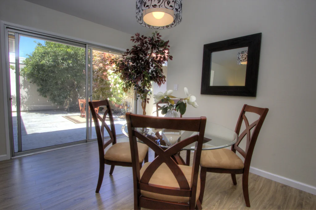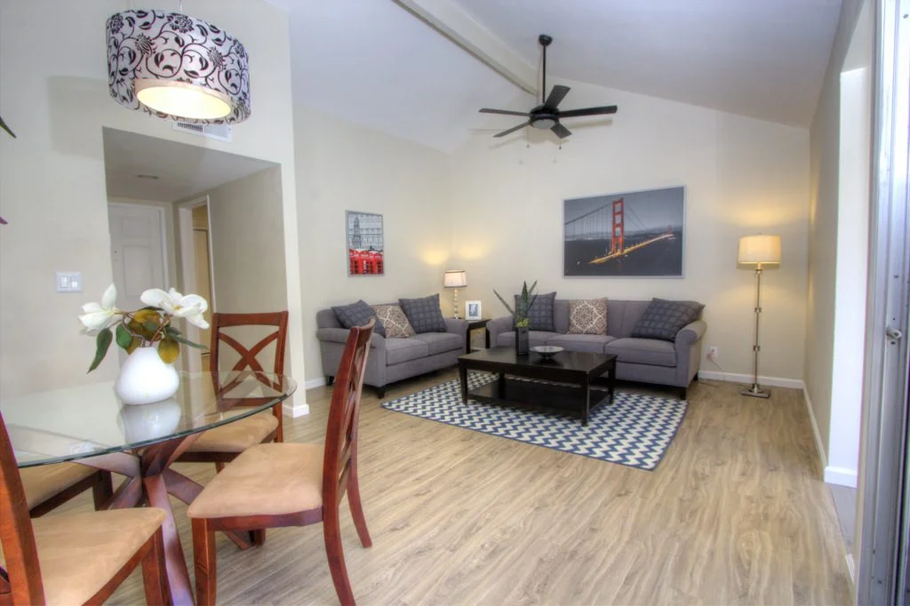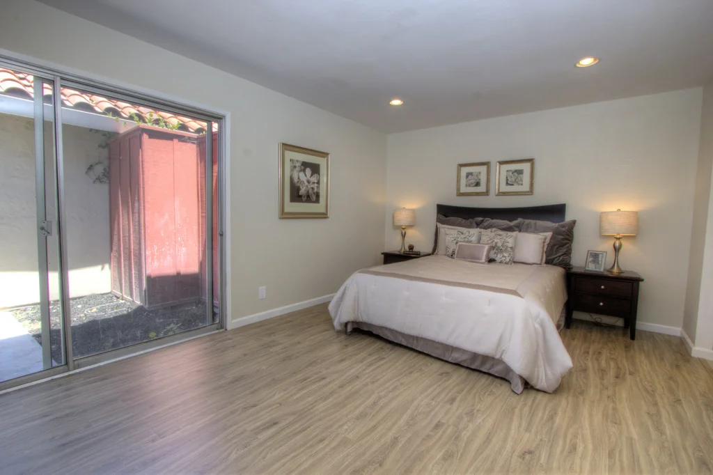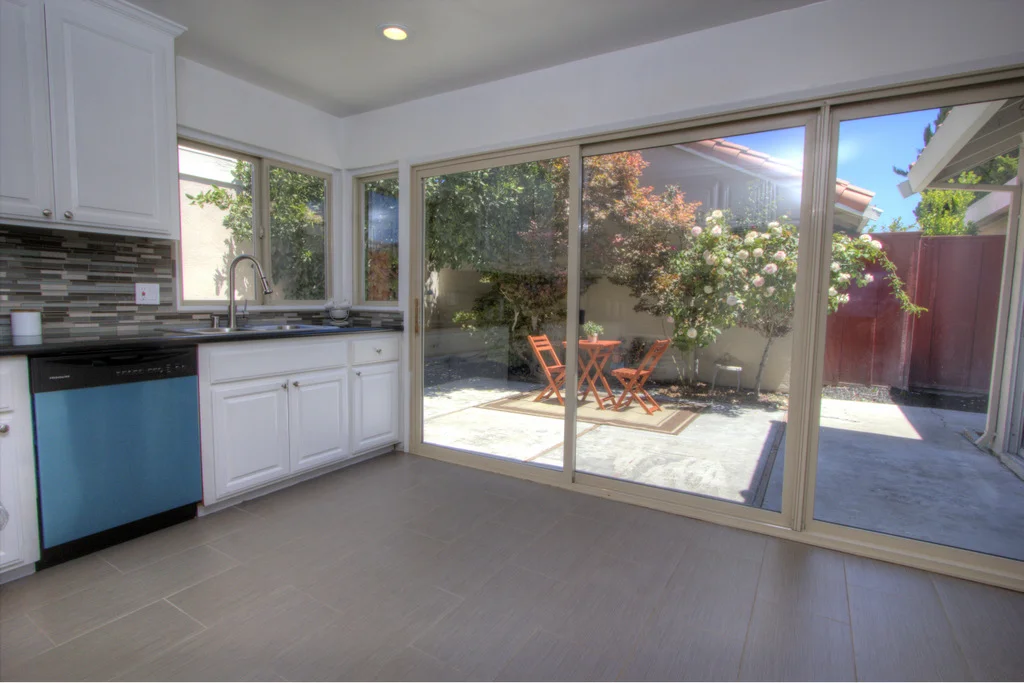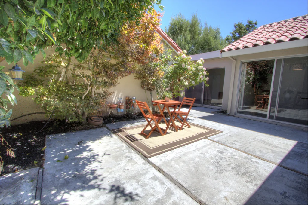 Stylish and updated one level townhome with large patio and attached 2 car garage. Home is bright with multiple sliding glass doors leading to private patio. Home features remodeled interior with designer touches, vaulted ceiling, sun tunnels, recessed lighting. Spacious master bedroom with lots of closet space. Large kitchen with granite countertops, tile floors, & new appliances (gas cooking).