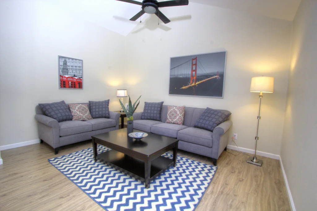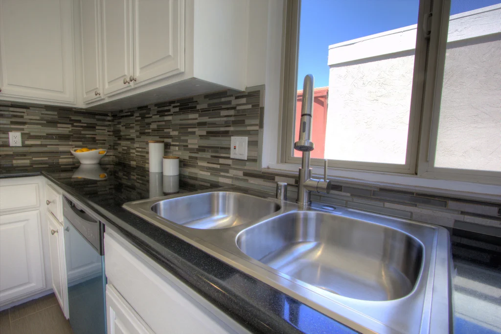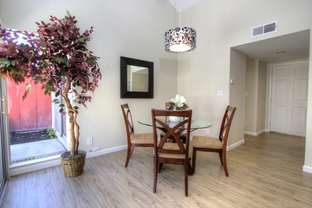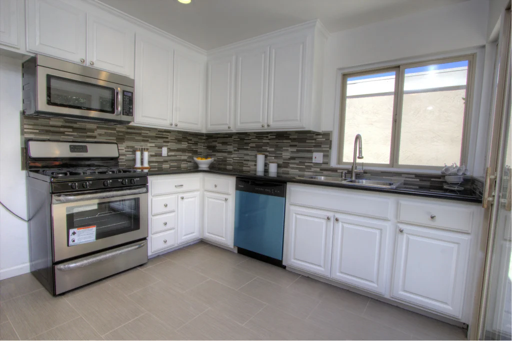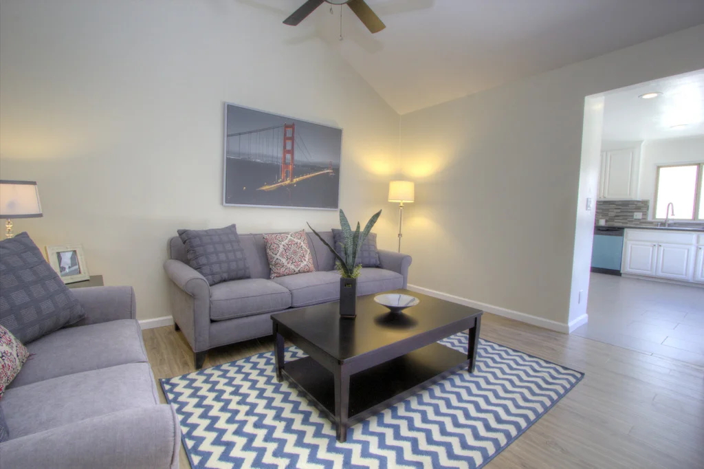 Stylish and updated one level townhome with large patio and attached 2 car garage. Home is bright with multiple sliding glass doors leading to private patio. Home features remodeled interior with designer touches, vaulted ceiling, sun tunnels, recessed lighting. Spacious master bedroom with lots of closet space. Large kitchen with granite countertops, tile floors, & new appliances (gas cooking).