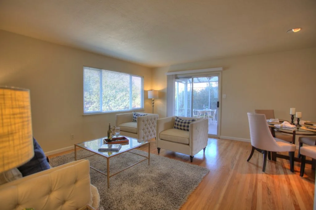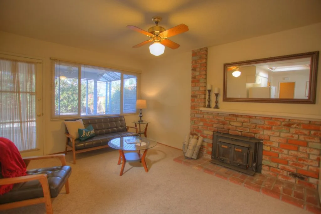 Welcome home to 10481 Pineville Avenue. Situated on a quiet street in a beautiful neighborhood, this home features a central floorplan. The formal entry leads to a hallway that separates the living & bedroom areas. Formal living room is spacious with dining area & sliding glass door leading to the rear patio & backyard. A spacious eat-in kitchen boasts a separate pantry & abundance of cabinet & counter space. Also a bright skylight fills the space with light. A den/family room is situated right off the kitchen & leads to the exterior patio. Family room features a brick fireplace & built-in shelving. Master bedroom features two closets, spacious vanity, & shower stall. Hall bathroom features a large vanity & shower over tub with glass enclosure. Additional features include central heating / AC, dual pane windows, refinished oak hardwood floors, new exterior & interior paint, 2 car garage with automatic opener, enclosed screen room & large backyard with lawn area & enclosed patio.