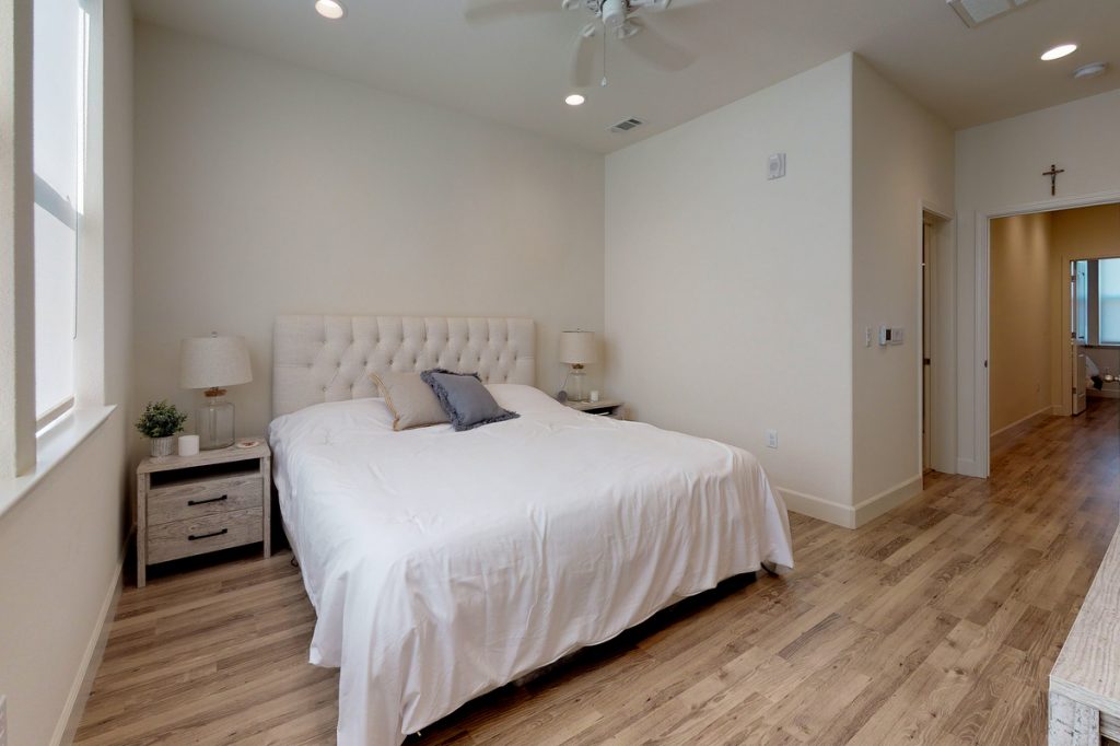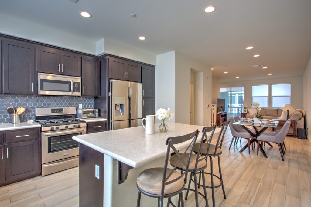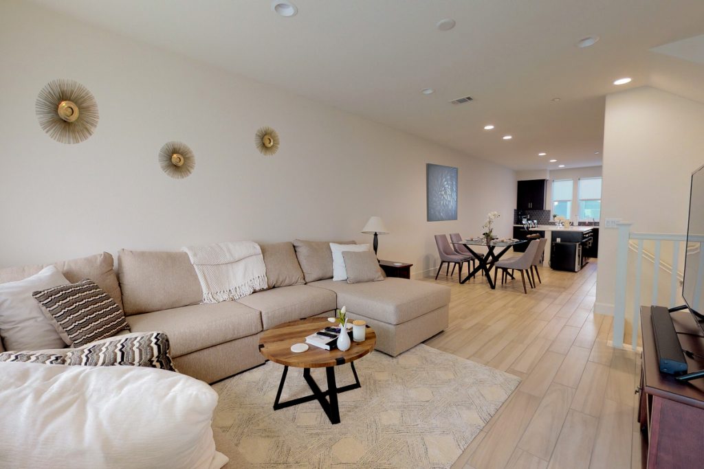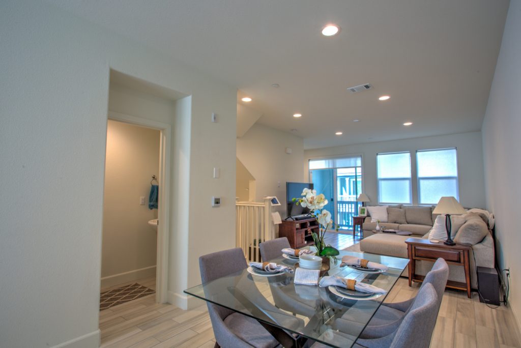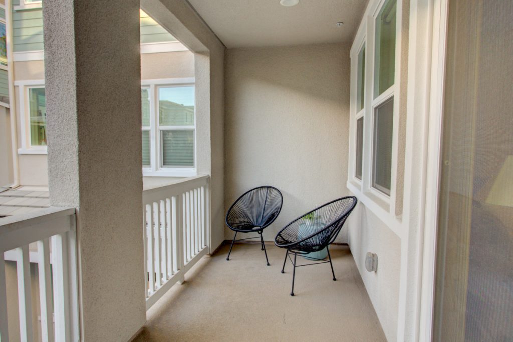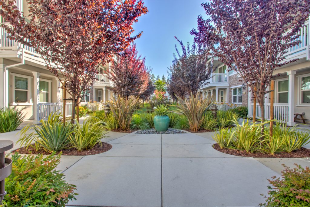 This gorgeous townhome-style condo is located in desirable Sandalwood complex, walking distance to downtown Sunnyvale and minutes from tech companies. Just 2 years new, the multi-level condo features an open floorplan with beautifully-updated kitchen and an abundance of natural light, upgraded contemporary wood-look porcelain tile flooring, two large bedrooms with ensuites, LED recessed lighting and 9 ft. ceilings throughout. Entertainers kitchen is complete with a large island with storage and breakfast bar, stainless-steel appliances including upgraded Samsung refrigerator, shaker-style cabinets, upgraded quartz countertops, upgraded custom backsplash. The Sun-filled master suite features a walk-in closet and ensuite with dual-sink vanity and a large shower with a built-in bench. Other features include upgraded designer window blinds throughout, upgraded Samsung washer/dryer, cozy balcony overlooking the picturesque courtyard. Park-like community features a clubhouse, dog-friendly playground, and greenbelt trails.