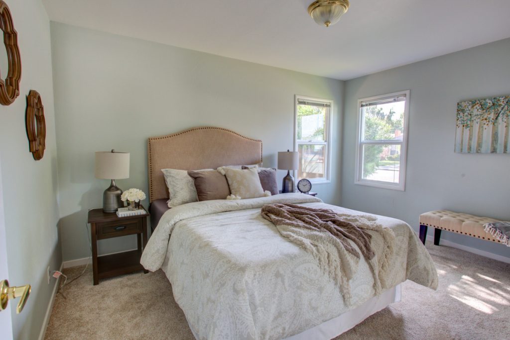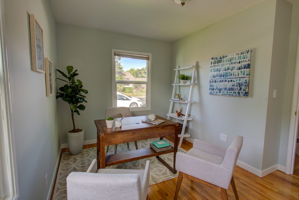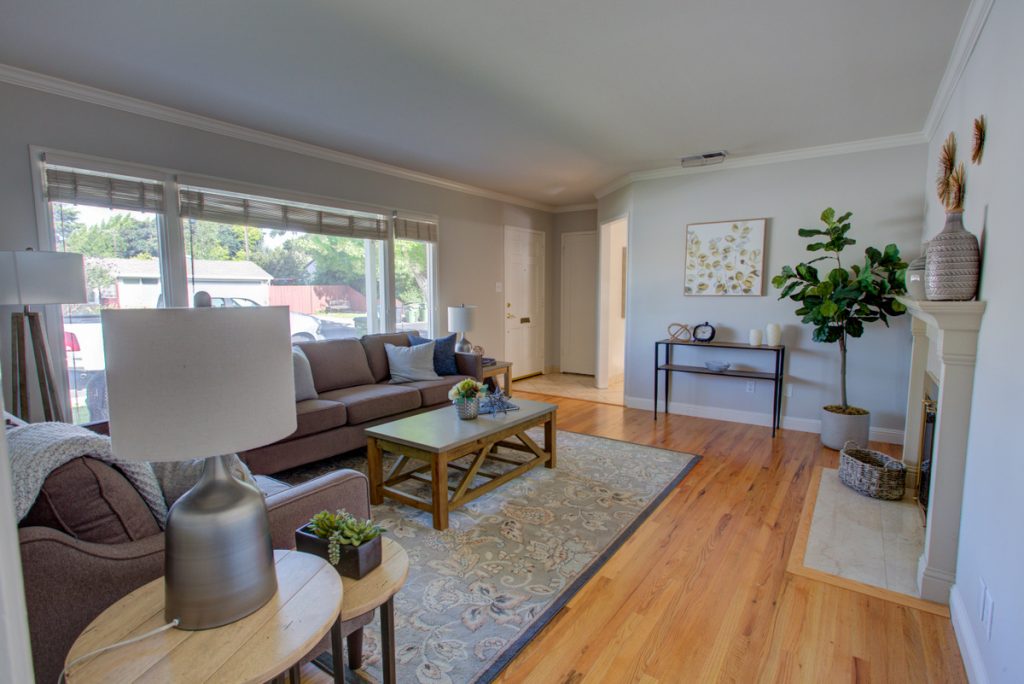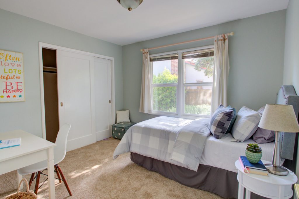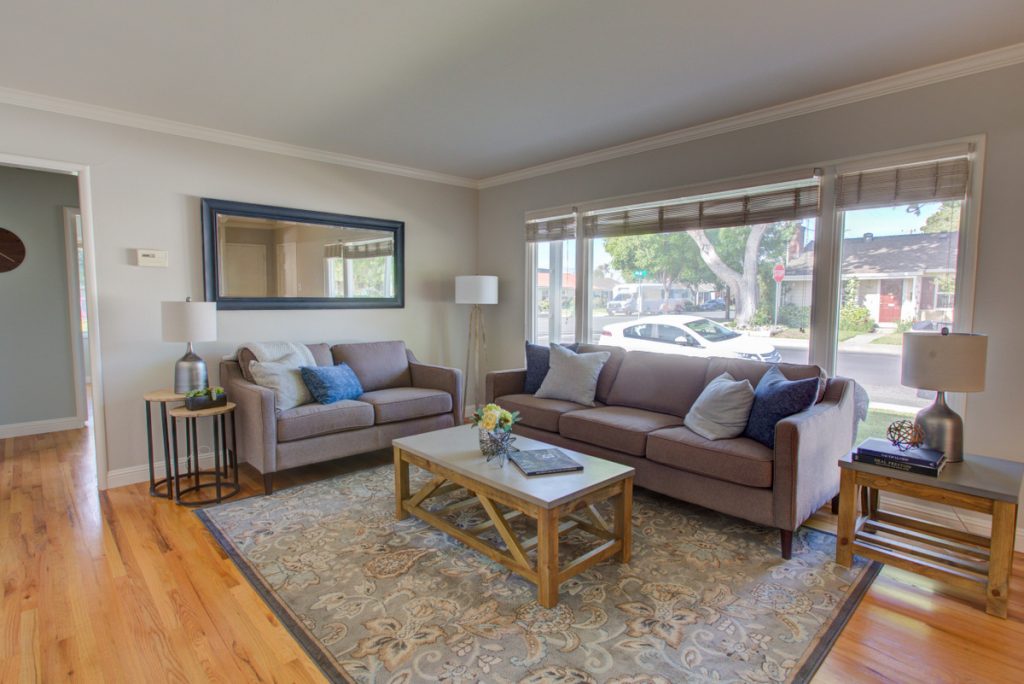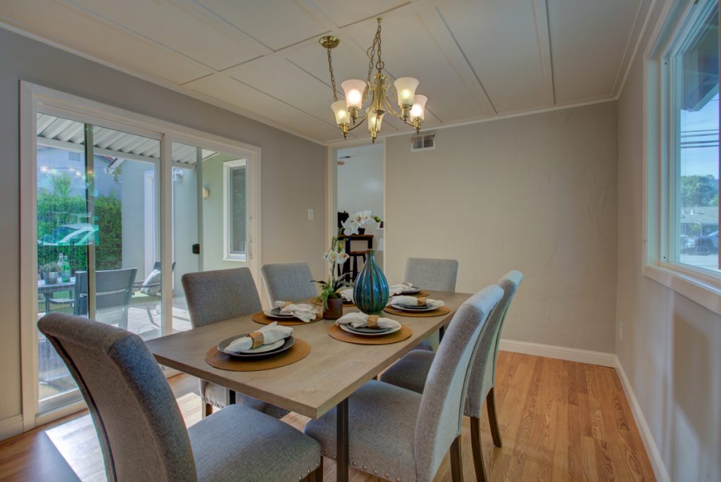 Bright and charming single-family home situated in Sunny Brae features separate living/dining area, three spacious bedrooms, and landscaped front/backyard. Eat-in kitchen is complete with dining nook, large garden window, Bosch dishwasher, and Frigidaire front-load washer/dryer. Sun-filled living room features wood-burning fireplace and extra large window. Separate dining room looks out onto serene backyard patio area. Beautifully-landscaped yard features large grassy area, storage shed, paved patio with awning, and lemon tree. Full bathroom is complete with large storage vanity with granite countertop, large tub with tile-surround, and linen closet. Home sits in close proximity to Apple Spaceship campus, parks, and shopping.