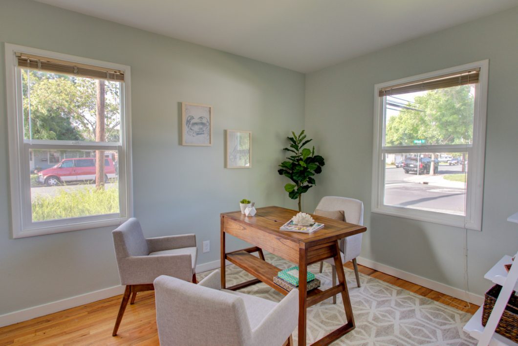 Bright and charming single-family home situated in Sunny Brae features separate living/dining area, three spacious bedrooms, and landscaped front/backyard. Eat-in kitchen is complete with dining nook, large garden window, Bosch dishwasher, and Frigidaire front-load washer/dryer. Sun-filled living room features wood-burning fireplace and extra large window. Separate dining room looks out onto serene backyard patio area. Beautifully-landscaped yard features large grassy area, storage shed, paved patio with awning, and lemon tree. Full bathroom is complete with large storage vanity with granite countertop, large tub with tile-surround, and linen closet. Home sits in close proximity to Apple Spaceship campus, parks, and shopping.