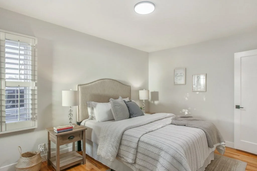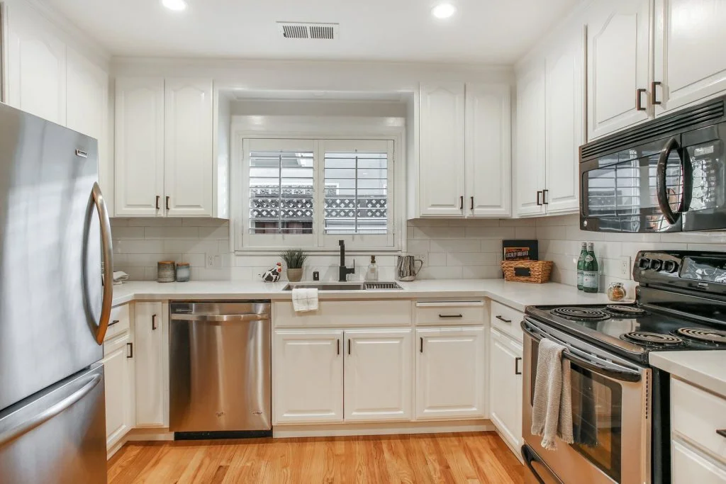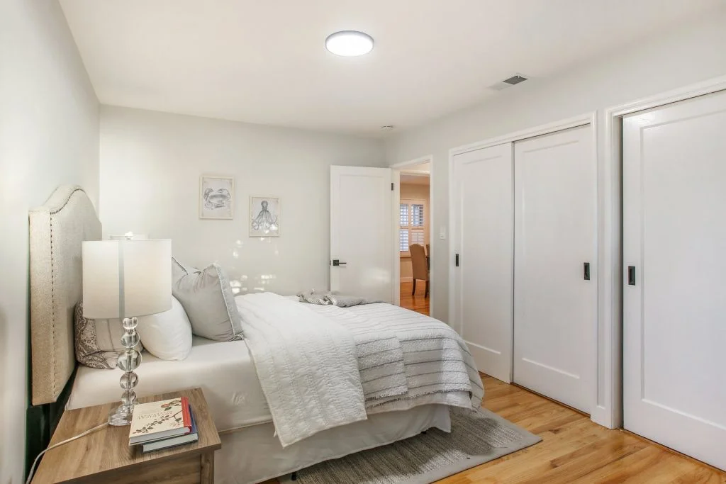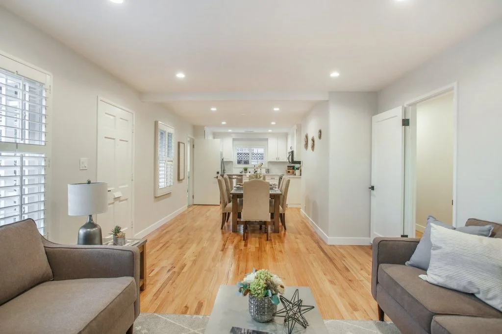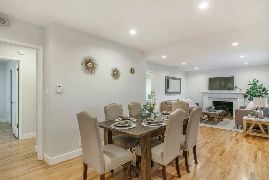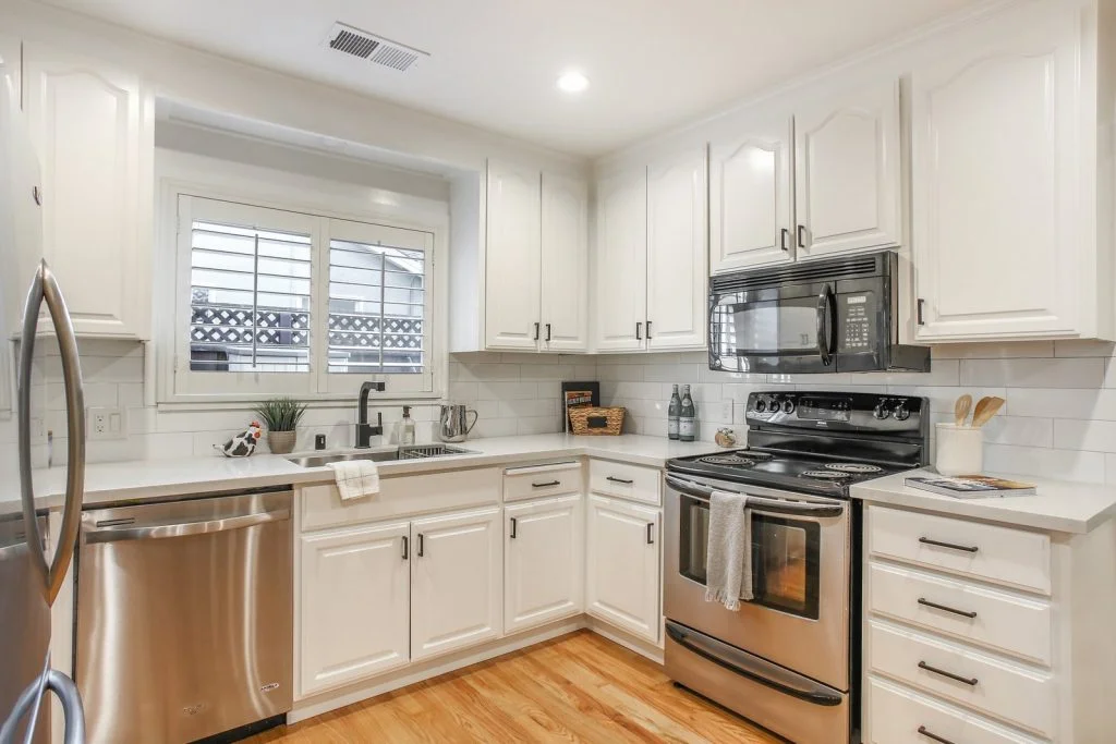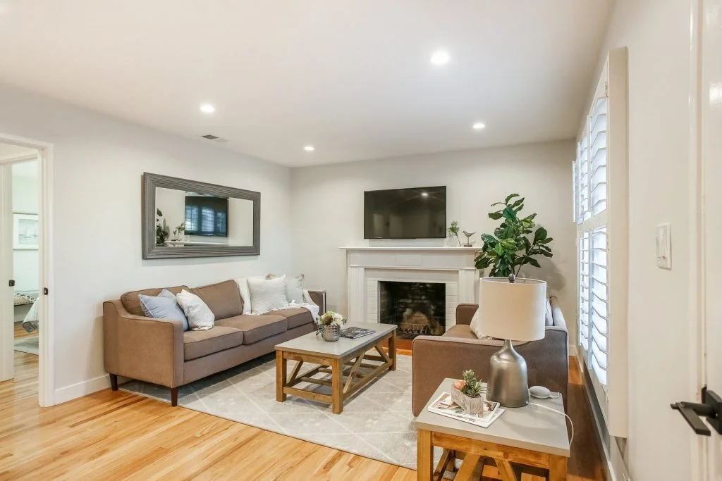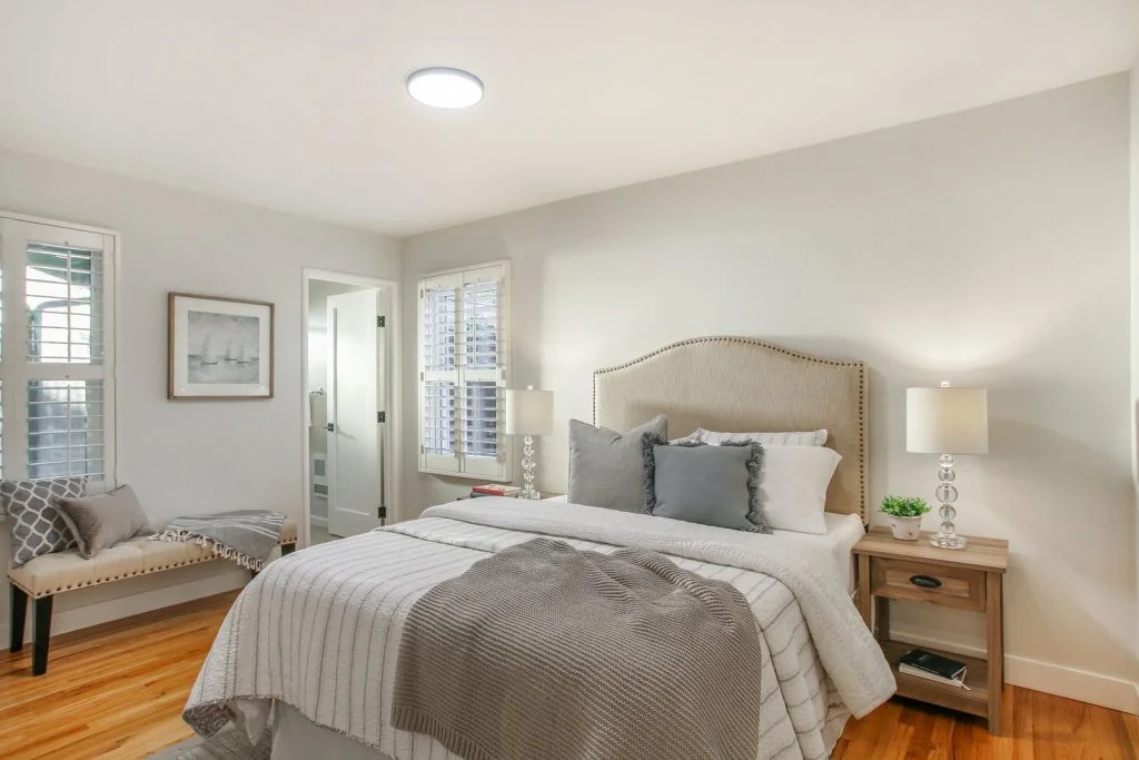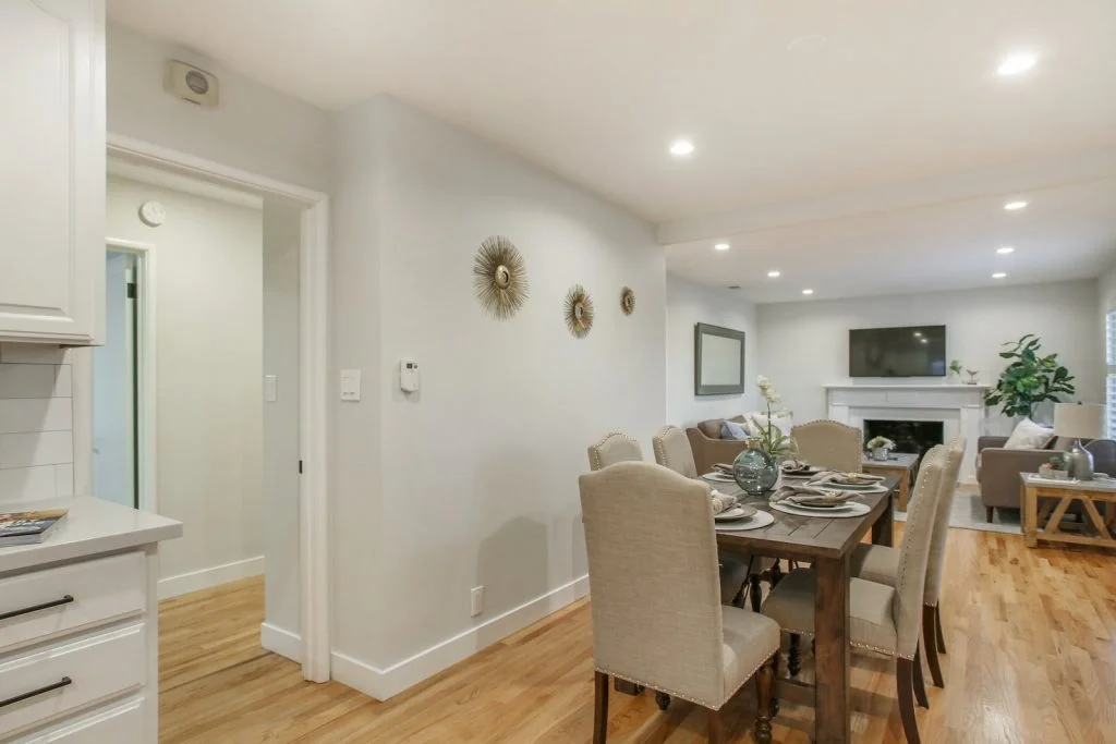 Open & bright Sunnybrae home in the heart of Santa Clara. This beautifully updated home is situated on a quiet street and features a spacious living & dining room that opens to the kitchen. Classic elements such as oak hardwood flooring, brick fireplace, traditional shaker style interior doors are combined with modern recessed lighting, contemporary hardware. The kitchen features refinished oak cabinetry with marble style quartz countertops, stainless steel under-mount sink, & stainless steel appliances. Bedrooms feature sliding door closets, hardwood flooring. The ensuite master is spacious, features dual closets, a private bath with large stall shower. Garage has been converted (no permits) to a spacious living area with high ceilings, recessed lighting & new plush carpeting. Additional features include dual pane windows, plantation-style shutters, spacious backyard with shed, metal roof, prolific orange tree & walking distance to popular stores, restaurants, parks & schools.