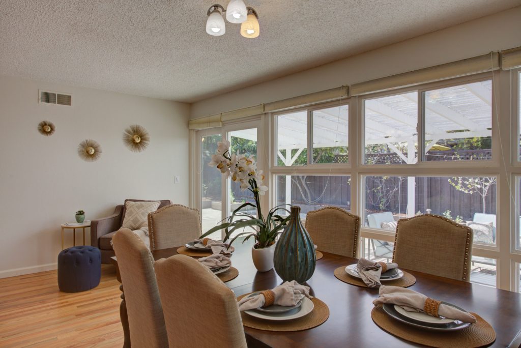 Bright and expansive Lynbrook home, walking distance to all three neighborhood Schools (DILWORTH, MILLER, LYNBROOK). This beautiful home is situated on a quiet street and features an inviting living room with fireplace. The interior of the home is filled with natural light, the beautifully refinished oak hardwood floors and contemporary colors make it feel warm and inviting. The open concept family dining and kitchen are bright with a wall of windows and a sliding glass door overlooking the backyard. The kitchen features raised panel maple cabinetry, electric cooktop, wall oven, microwave, dishwasher, and refrigerator. Exterior yards are landscaped with blooming shrubs and plant life. Backyard features a covered patio, planter box, and storage shed. Other features include dual pane windows, central heating and air conditioning, front and back automatic sprinkler system, converted garage with attic storage loft, refinished hardwood flooring, new interior paint.