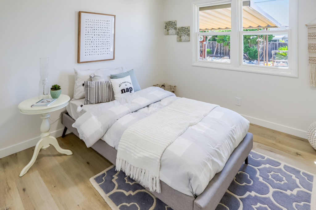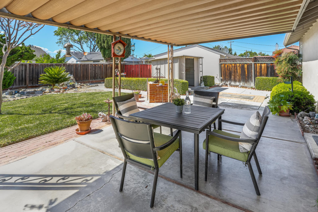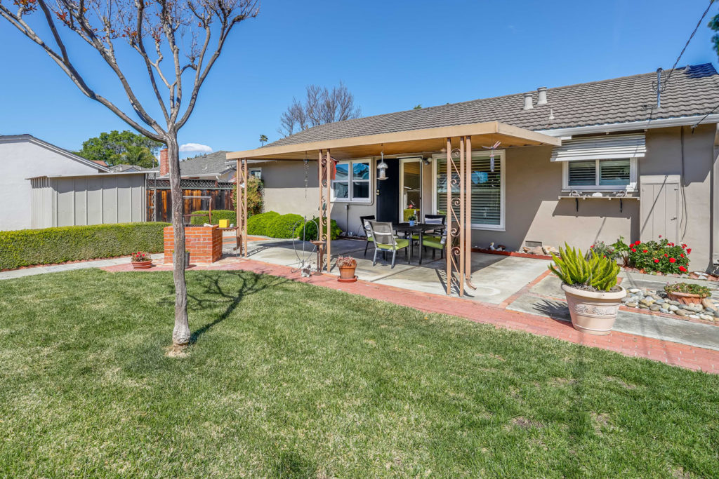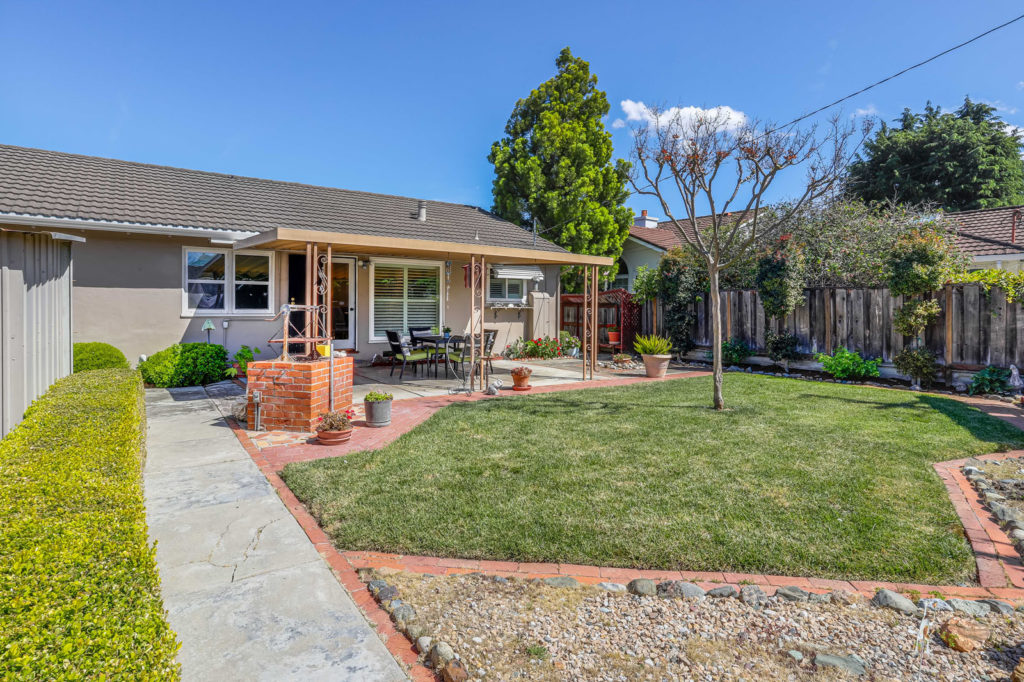 Bright and inviting home situated in the heart of Santa Clara with access to top-rated schools. The 1,238 sq ft home set on an expansive lot offers a wonderful layout with 3 bedrooms, 1.5 bathrooms, and large backyard. The living room is adorned with a brick fireplace and features gorgeous new flooring, LED recessed lighting, and adjacent dining area with french door leading out to the back patio and yard. Large, landscaped backyard provides the perfect venue for entertaining with a spacious covered patio, additional seating area with pergola, large grass area, flower beds, and storage shed. Additional features include beautiful new wide-plank flooring throughout, dedicated laundry room, new interior paint, dual-pane windows, attached 2-car garage with automatic opener, and shutter window treatments throughout. Central location within walking distance to Santa Clara Town Center shopping plaza and a short drive to major tech companies make this a great place to call home.