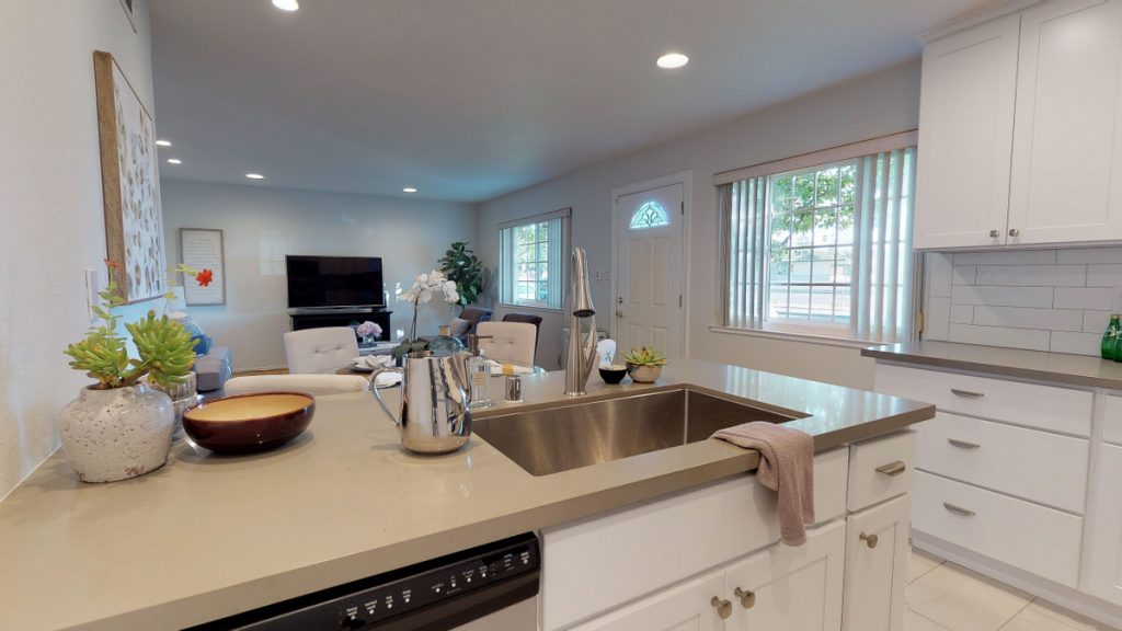 Updated and stylish Mckuen model 1 home located on a quiet street. This coveted single floor unit is located on the ground level and features 2 bedrooms and 1 bath. The home features an updated kitchen with new shaker style cabinetry, porcelain tile flooring, quartz countertops, full subway tile backsplash, large stainless steel sink, stainless steel appliances, and LED recessed lighting. The bright floor plan features an open kitchen that overlooks the eating area and spacious living room. Bedrooms are at the rear of the unit and feature large closets. The bathroom features tile flooring, an updated vanity and shower over tub with glass enclosure. Additional features include recessed lighting, laminate flooring in the living area, dual pane windows, one car garage, raised panel doors. within walking distance to Almaden Ranch plaza, restaurants, shopping, public transportation and minutes to highways 85 & 87, Costco, and Oakridge mall. Complex features 2 pools.