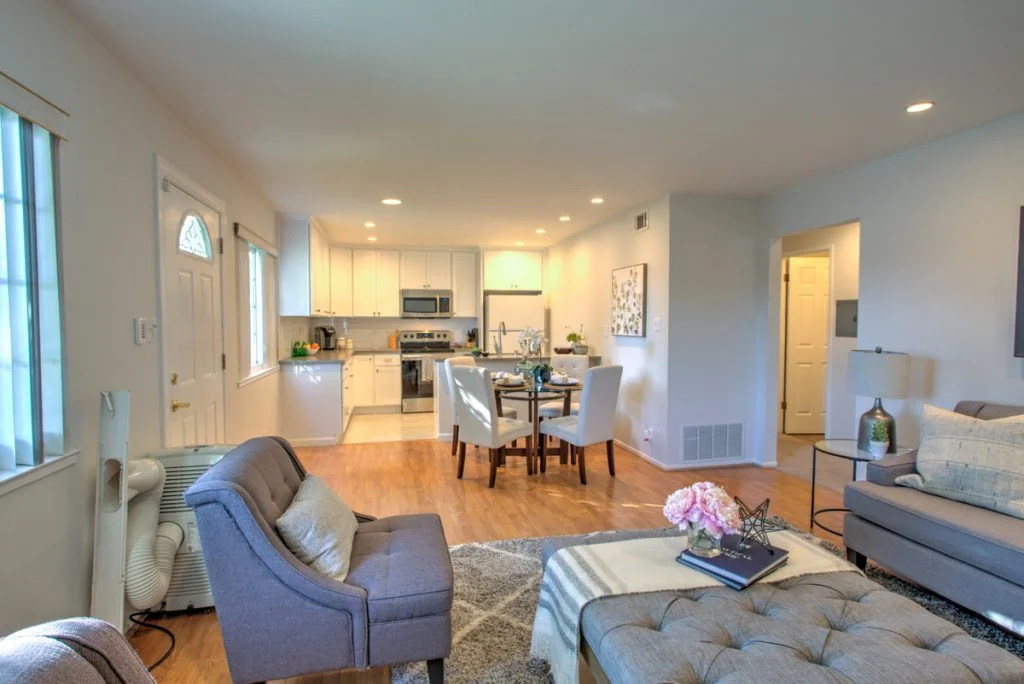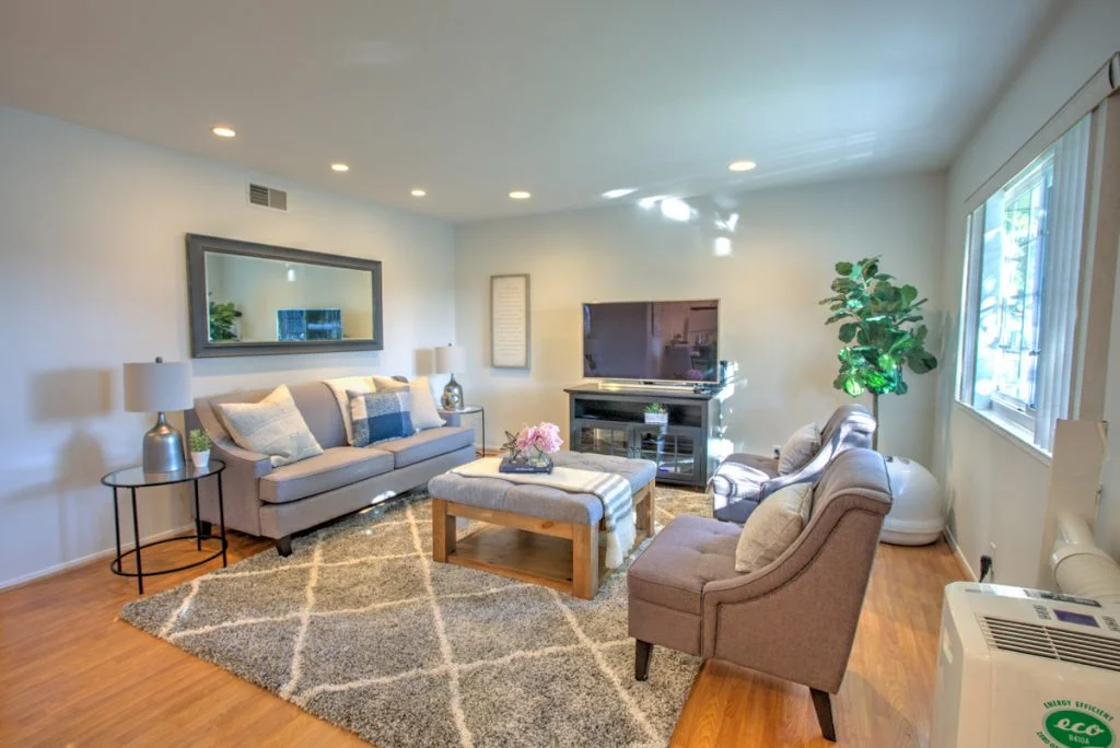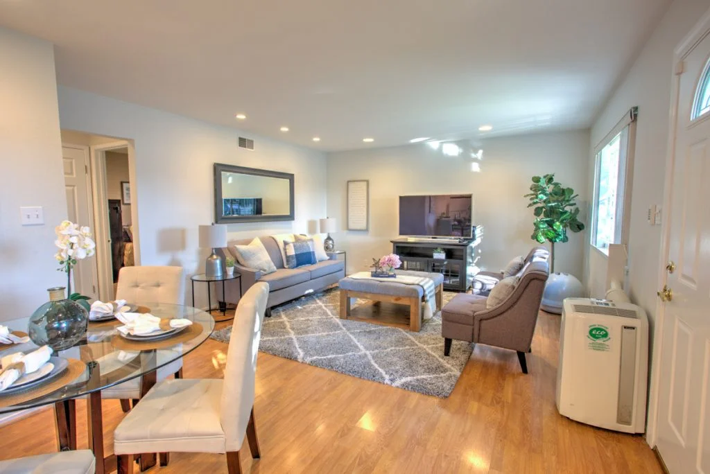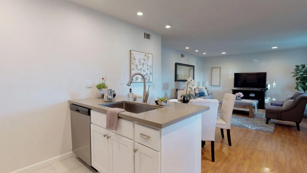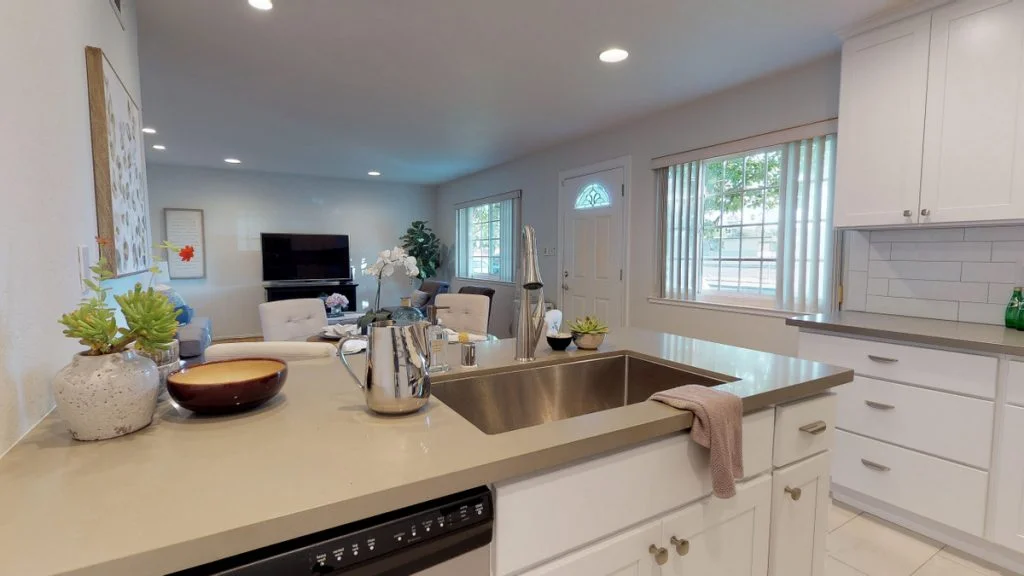 Updated and stylish Mckuen model 1 home located on a quiet street. This coveted single floor unit is located on the ground level and features 2 bedrooms and 1 bath. The home features an updated kitchen with new shaker style cabinetry, porcelain tile flooring, quartz countertops, full subway tile backsplash, large stainless steel sink, stainless steel appliances, and LED recessed lighting. The bright floor plan features an open kitchen that overlooks the eating area and spacious living room. Bedrooms are at the rear of the unit and feature large closets. The bathroom features tile flooring, an updated vanity and shower over tub with glass enclosure. Additional features include recessed lighting, laminate flooring in the living area, dual pane windows, one car garage, raised panel doors. within walking distance to Almaden Ranch plaza, restaurants, shopping, public transportation and minutes to highways 85 & 87, Costco, and Oakridge mall. Complex features 2 pools.