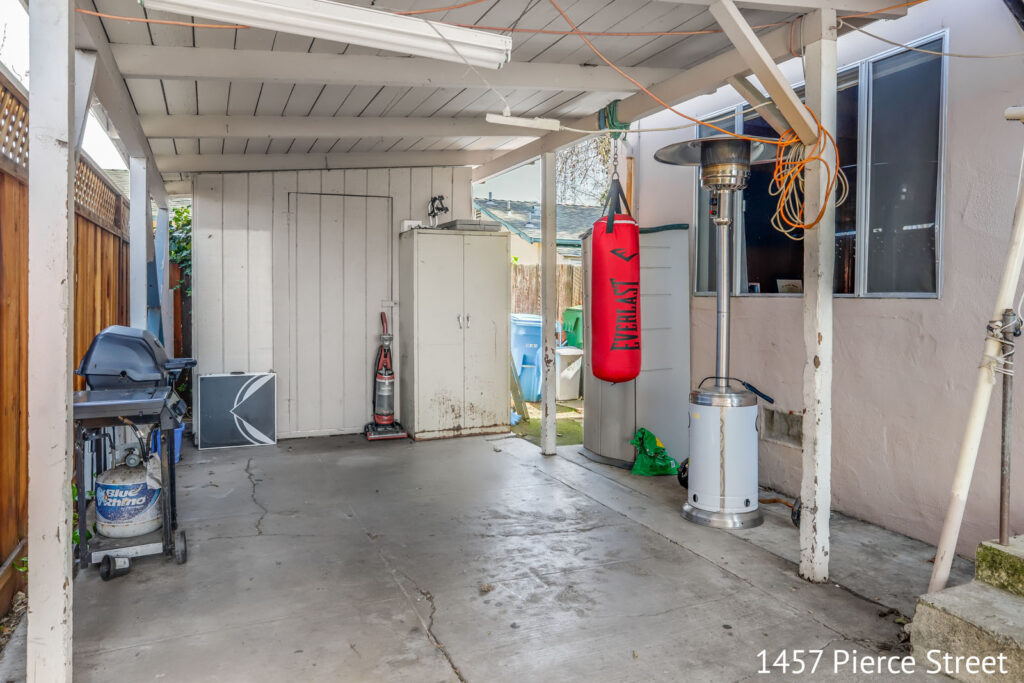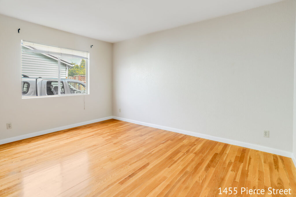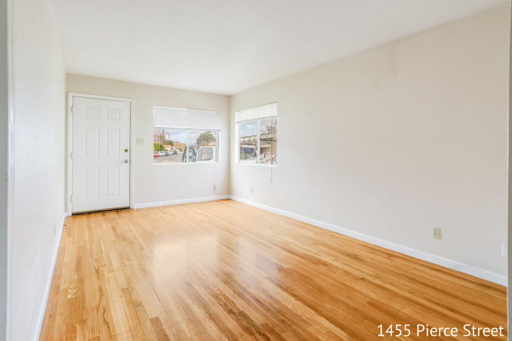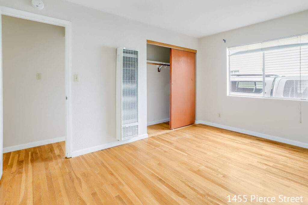 1457 Pierce St: – 770 sq ft. 2bd/1ba. with carport, eat-in kitchen, spacious bedrooms, wall heater, in-unit laundry, and roomy backyard with patio.
