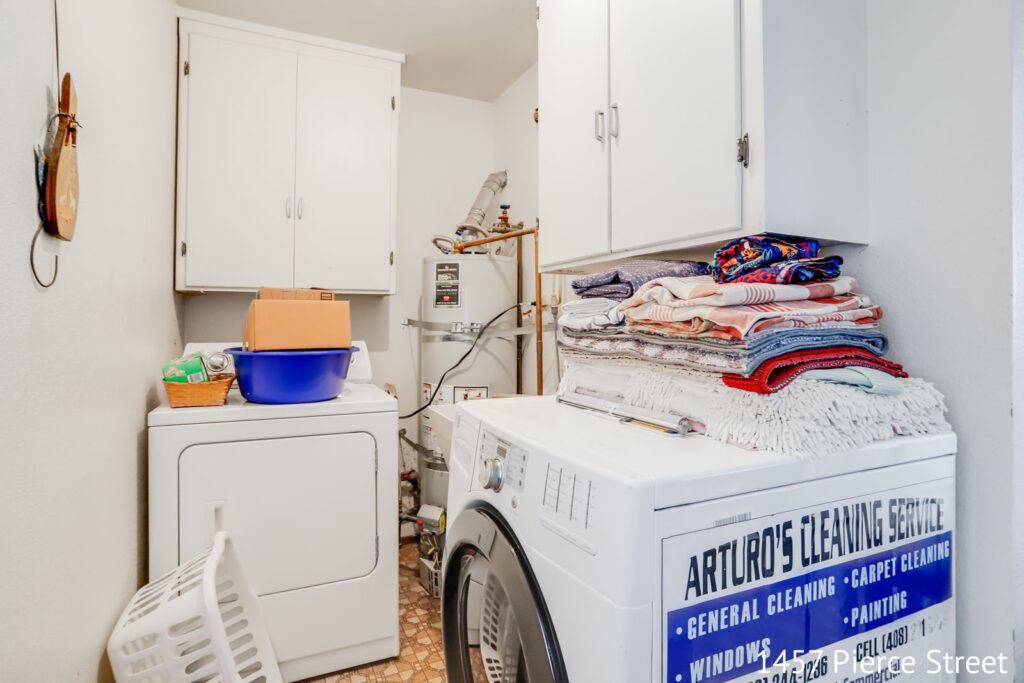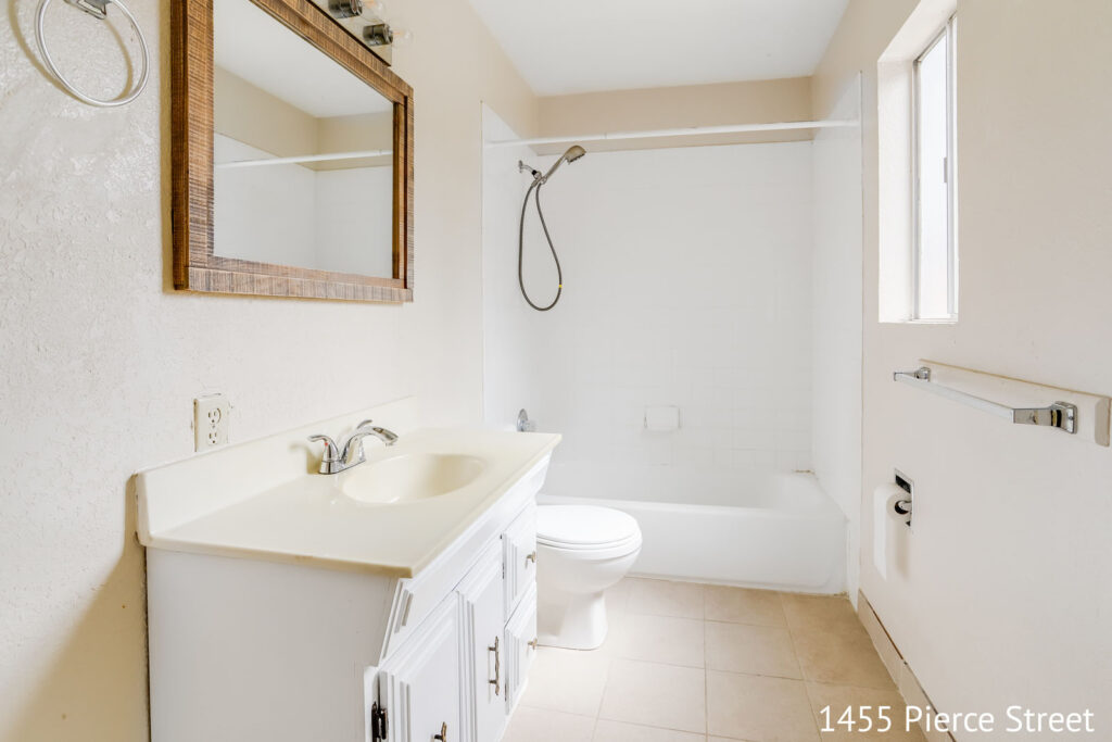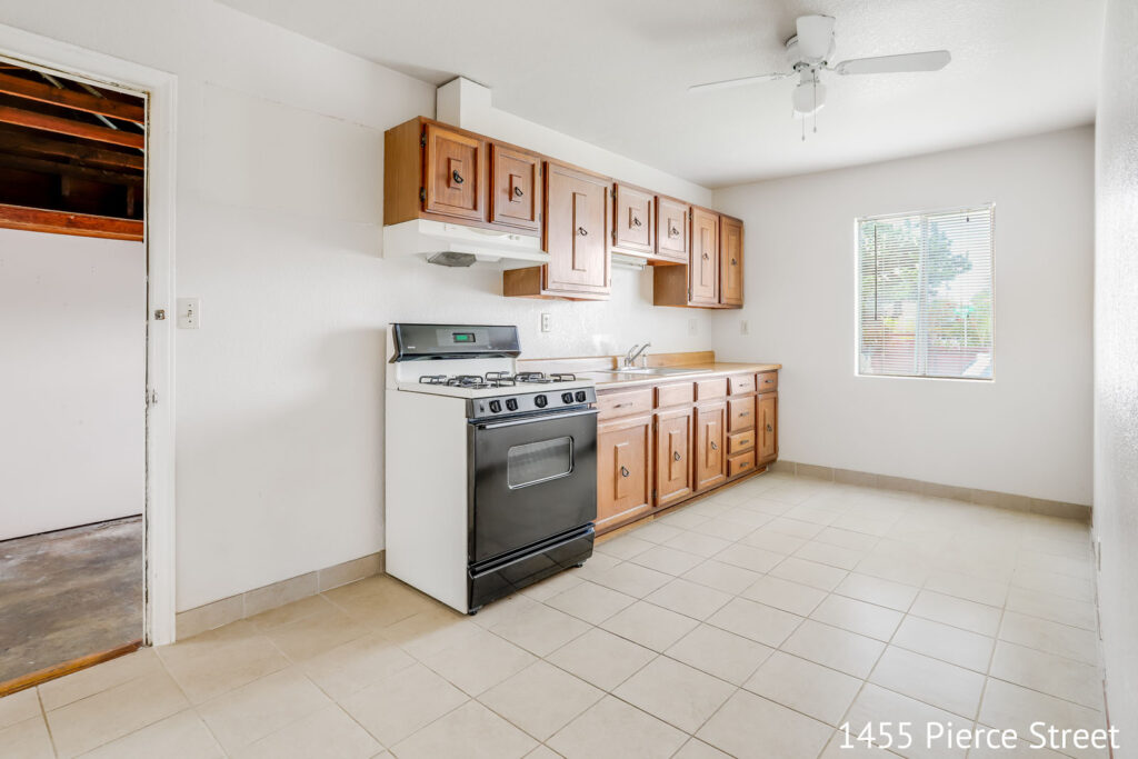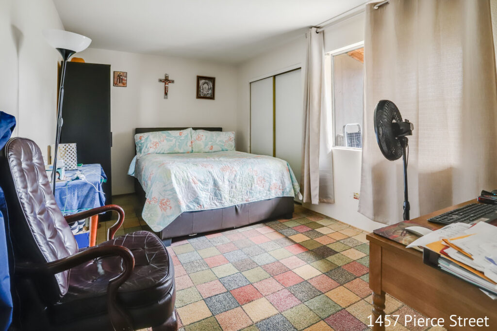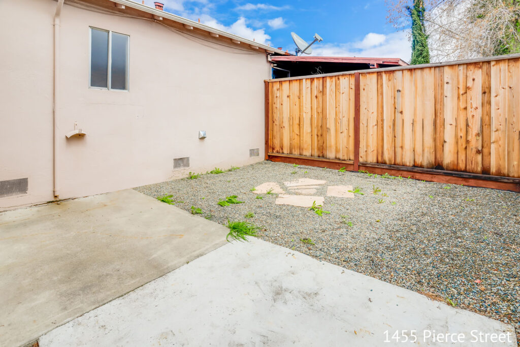 1457 Pierce St: – 770 sq ft. 2bd/1ba. with carport, eat-in kitchen, spacious bedrooms, wall heater, in-unit laundry, and roomy backyard with patio.