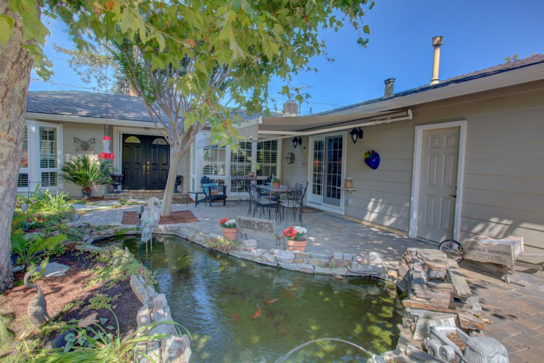 Beautifully-maintained single-family haven situated in coveted Rose Garden neighborhood features separate formal living and family rooms, gourmet eat-in kitchen, and an immaculate front courtyard. The homes secluded front gate leads you into the stunning courtyard which features a large paved patio area with motorized shade, lush landscaping, and a sweeping waterfall that pours into a koi pond. Once inside, a large foyer sits between the two spacious living areas, which both include floor to ceiling dual-pane windows with plantation shutters and wood-burning fireplaces. The chefs kitchen features Kitchen-Aid appliances, a farmhouse sink, island with additional storage, warming drawer, large garden window, and wet bar. Backyard features planting beds and two storage sheds.