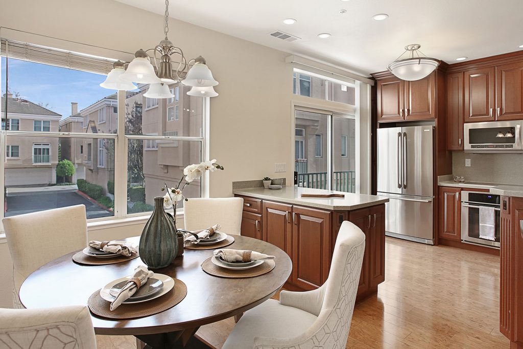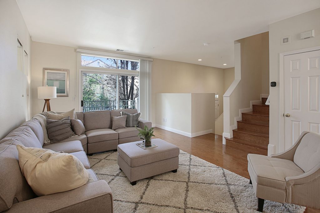 Gorgeous multi-level townhome situated in sought after Whisman Station/Whisman Park neighborhood. The end-unit home features the complex’s most desirable floor plan which includes 3 spacious bedrooms, 2.5 baths, and a bright open concept living/kitchen area. The remodeled kitchen is complete with customized cherry cabinet exteriors/solid maple interior, durable countertops, LED recessed lighting, breakfast bar, and spacious dining area overlooks the open living room. Other features include central heating and AC, two-car garage with spacious extra storage space, balcony and front porch, and brand new carpet. Complex features access to 2 community parks, 2 swimming pools, playground and BBQ area. Top Mountain View schools. First phase townhome of the development built with a poured concreated base perimeter around the garage and steel frame construction throughout. All floor levels were poured concrete for sound reduction and sturdiness. Unique construction for stability and strength. Convenient location, walking distance to the light rail station and easy commute to major freeways and a few miles from downtown Mountain View and Googleplex.