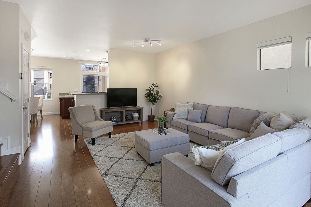 Gorgeous multi-level townhome situated in sought after Whisman Station/Whisman Park neighborhood. The end-unit home features the complex’s most desirable floor plan which includes 3 spacious bedrooms, 2.5 baths, and a bright open concept living/kitchen area. The remodeled kitchen is complete with customized cherry cabinet exteriors/solid maple interior, durable countertops, LED recessed lighting, breakfast bar, and spacious dining area overlooks the open living room. Other features include central heating and AC, two-car garage with spacious extra storage space, balcony and front porch, and brand new carpet. Complex features access to 2 community parks, 2 swimming pools, playground and BBQ area. Top Mountain View schools. First phase townhome of the development built with a poured concreated base perimeter around the garage and steel frame construction throughout. All floor levels were poured concrete for sound reduction and sturdiness. Unique construction for stability and strength. Convenient location, walking distance to the light rail station and easy commute to major freeways and a few miles from downtown Mountain View and Googleplex.