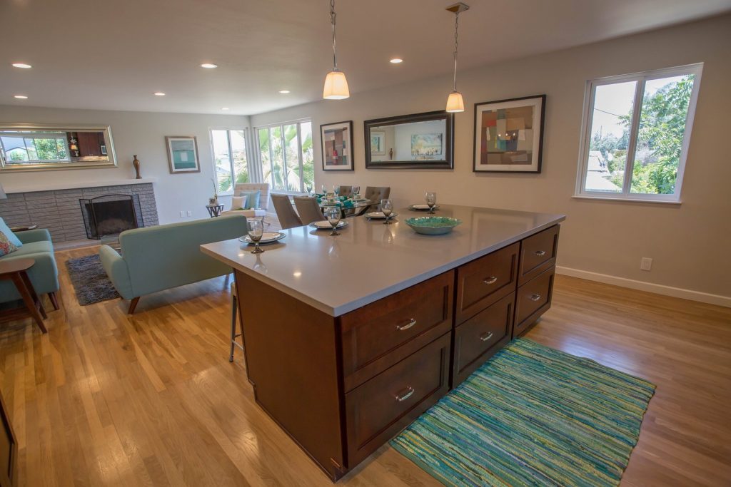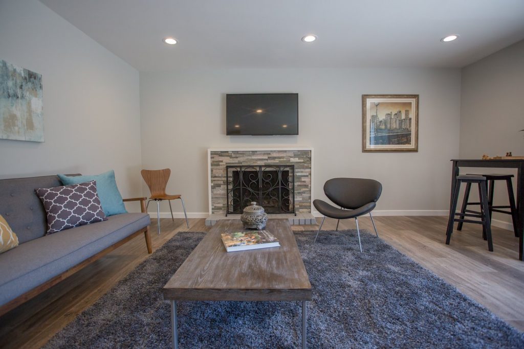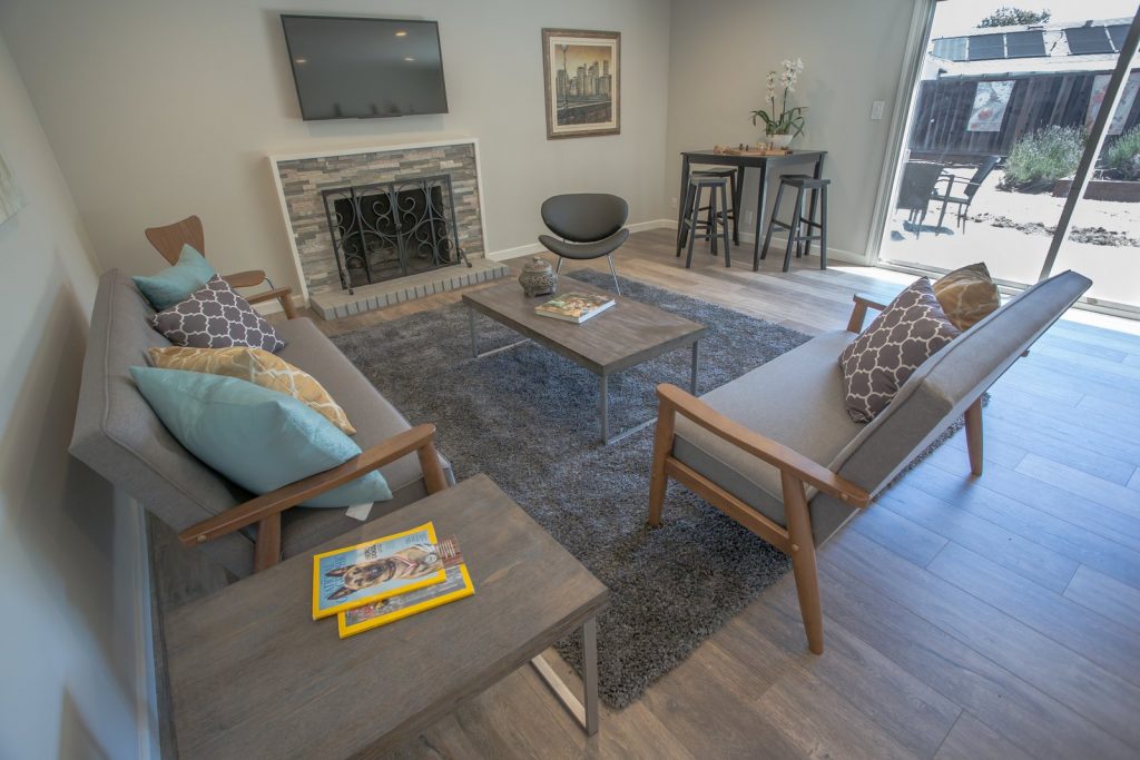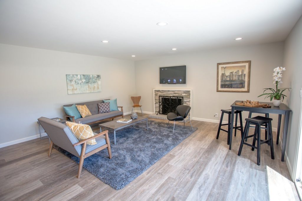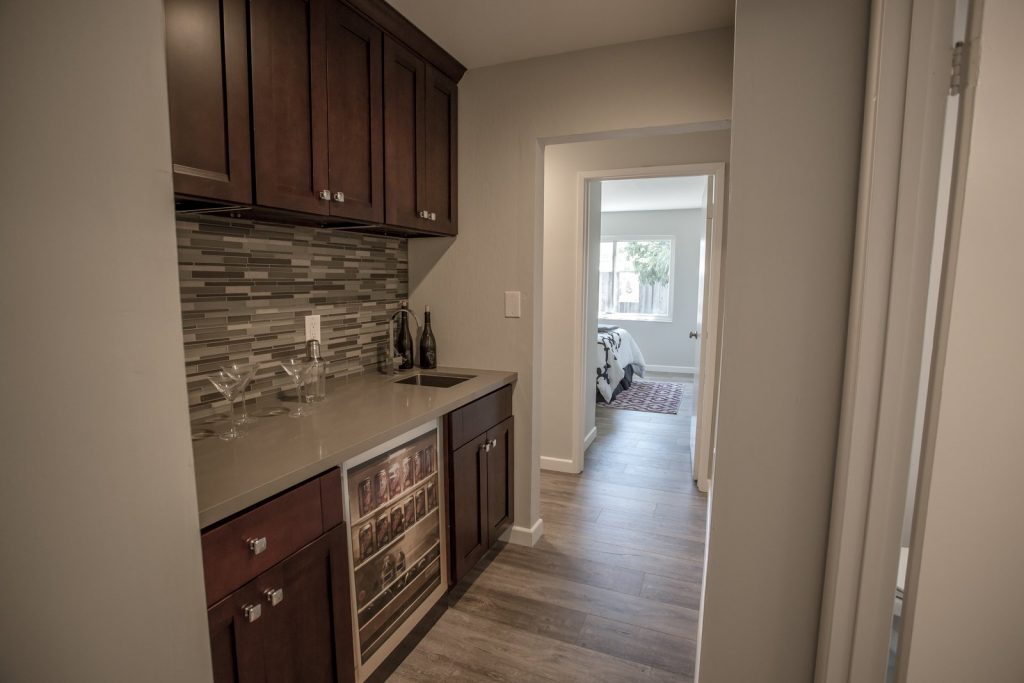 Largest Model in Darvon Park, the Saratoga. Only 11 of these homes were made. They have a very distinct floor plan, a versatile home that works with any sort of living situation. This beautiful Darvon Park has been recently remodeled with great room style kitchen with large island. Spacious kitchen features cherry cabinets, quartz counter tops, stainless steel appliances, under counter lighting. Spacious and bright living room features hardwood flooring, wood burning fireplace and recessed lighting. Bathroom have been remodeled and feature tile flooring and new fixtures. Family room is large and features its own wood burning fireplace, rustic laminate flooring, recessed lighting, wet bar with space for beverage refrigerator, and a sliding glass door to the backyard.