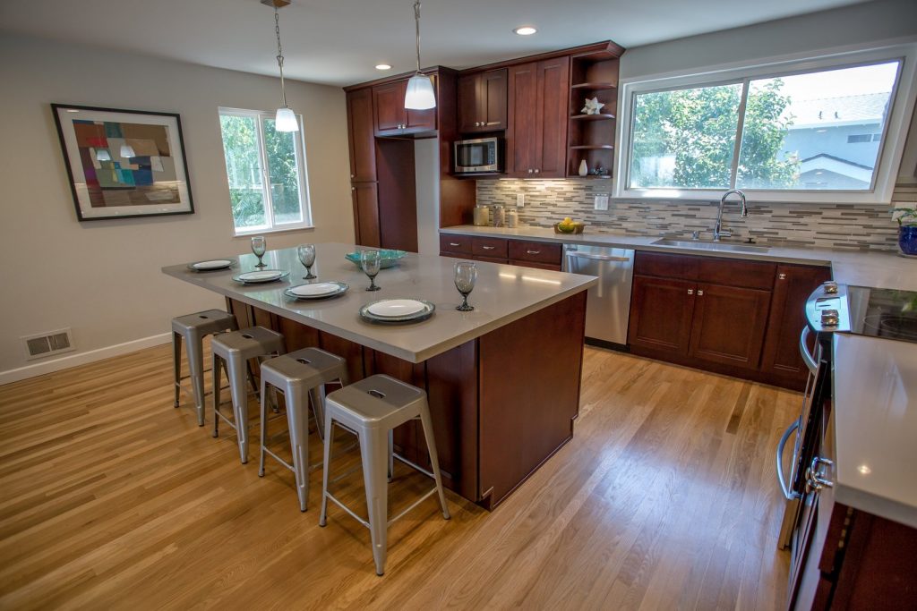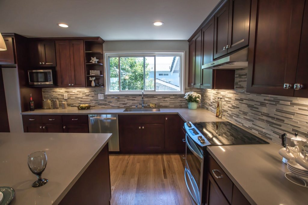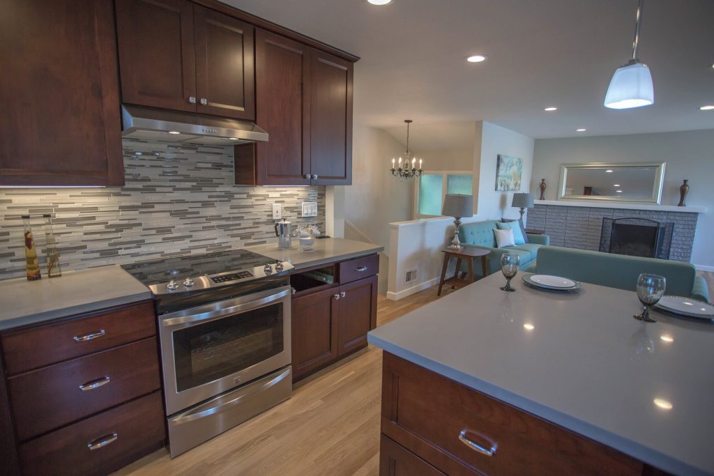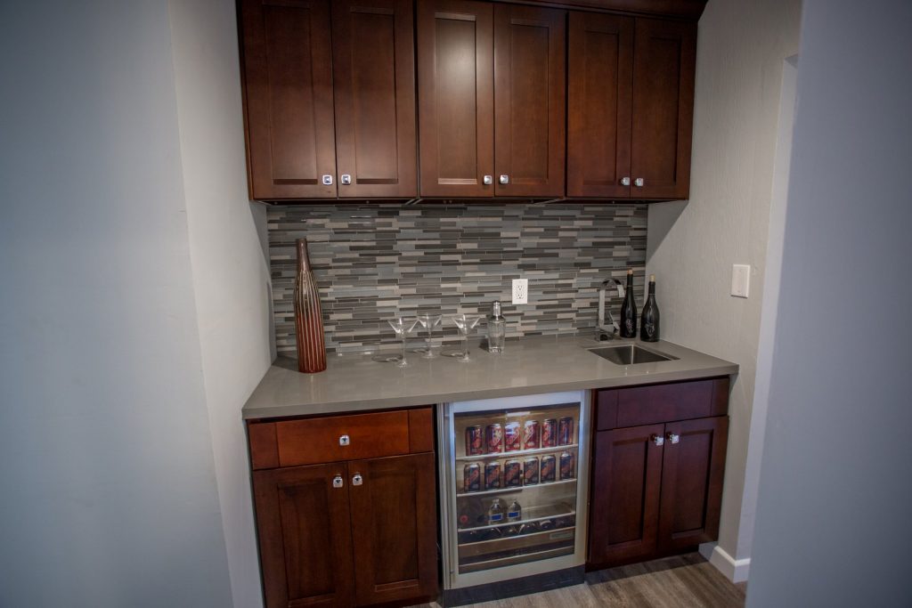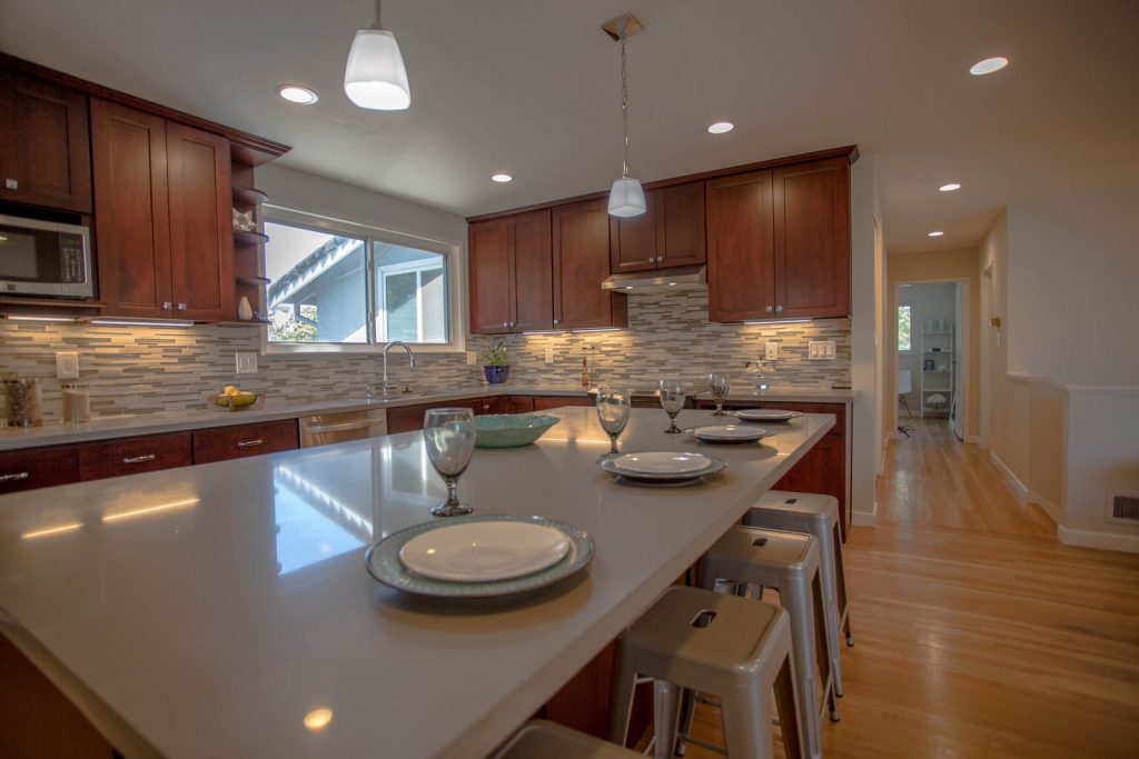 Largest Model in Darvon Park, the Saratoga. Only 11 of these homes were made. They have a very distinct floor plan, a versatile home that works with any sort of living situation. This beautiful Darvon Park has been recently remodeled with great room style kitchen with large island. Spacious kitchen features cherry cabinets, quartz counter tops, stainless steel appliances, under counter lighting. Spacious and bright living room features hardwood flooring, wood burning fireplace and recessed lighting. Bathroom have been remodeled and feature tile flooring and new fixtures. Family room is large and features its own wood burning fireplace, rustic laminate flooring, recessed lighting, wet bar with space for beverage refrigerator, and a sliding glass door to the backyard.