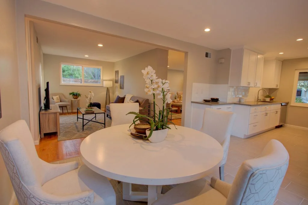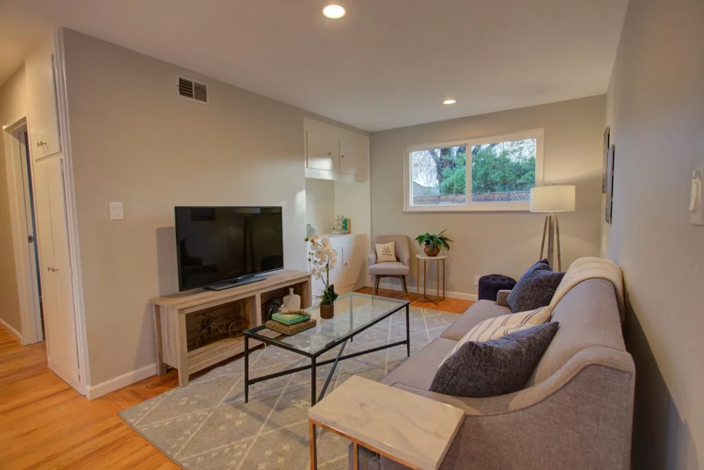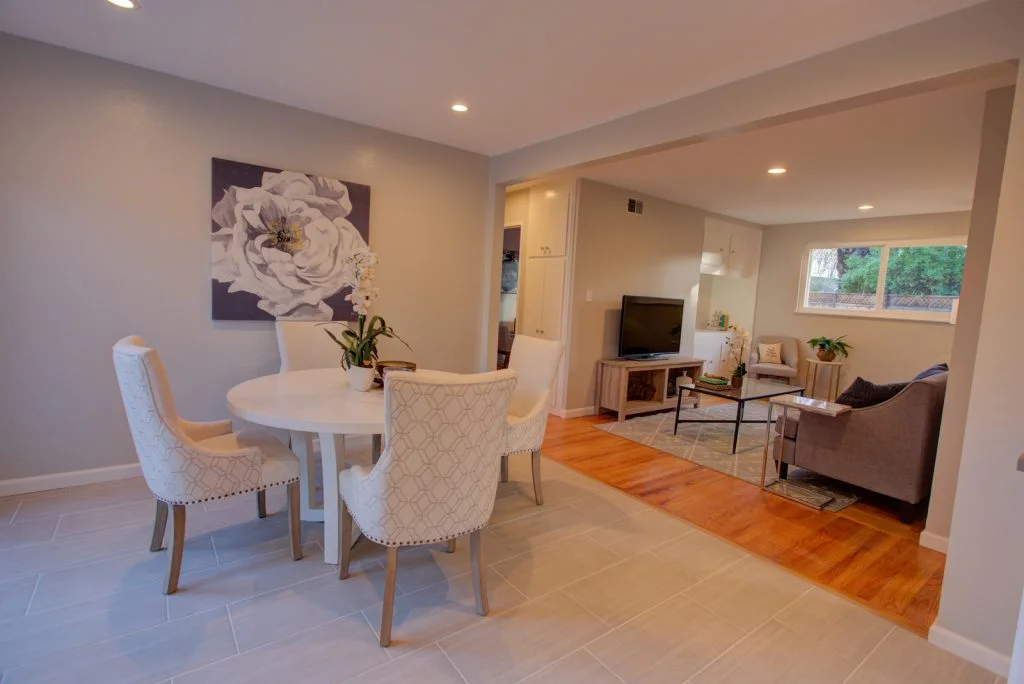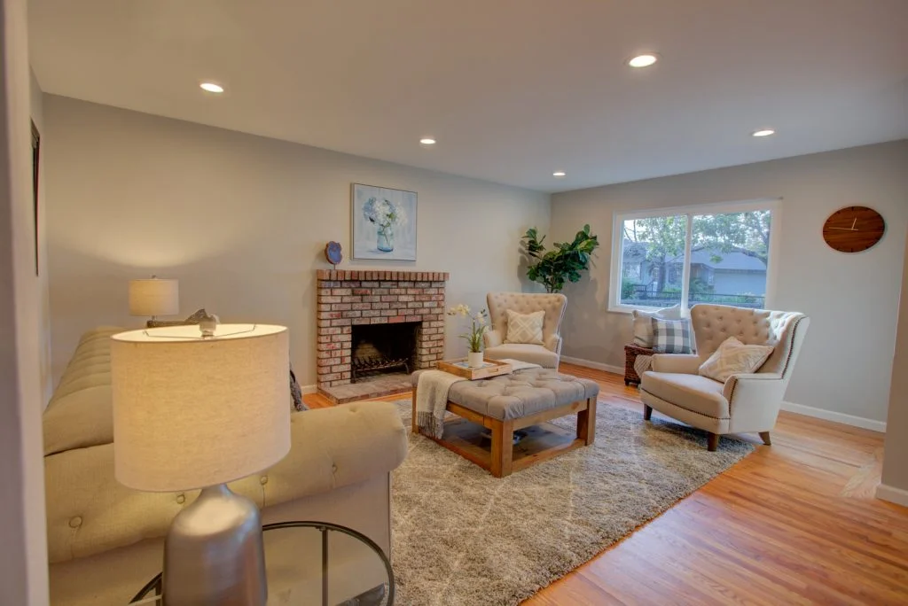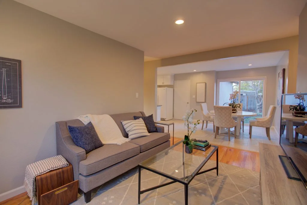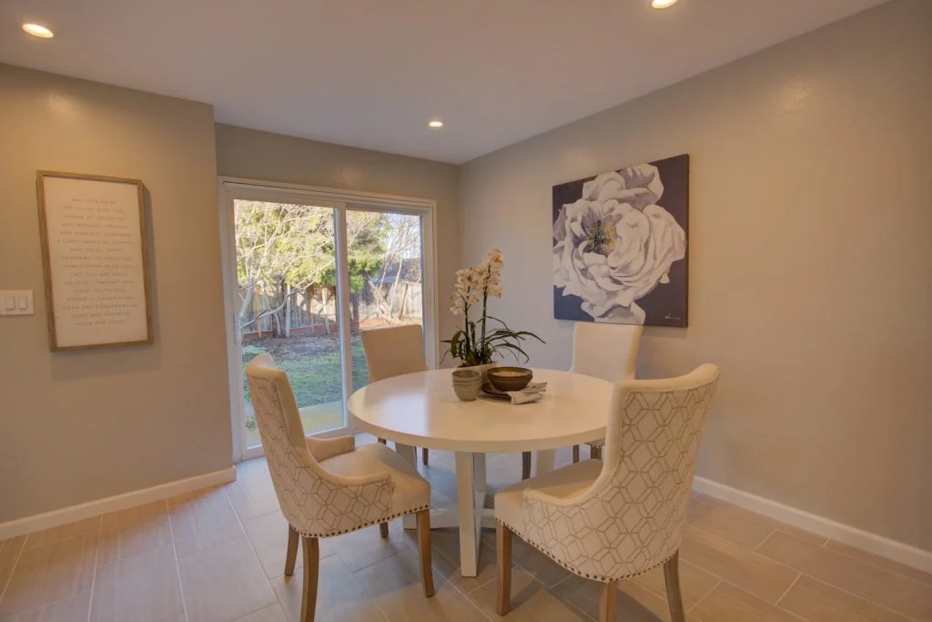 Charming single family home situated in desirable Darvon Park cul-de-sac features large lot with room to expand, three equally spacious bedrooms, separate family/living areas, and updated kitchen/bathrooms. A cozy front porch leads you into the sun-filled formal living area complete with a wood-burning fireplace, above mantel flat screen wiring, and LED recessed lighting. Updated eat-in kitchen features shaker-style cabinets, stainless-steel dishwasher, range, and microwave, quartz countertops, and dual-pane sliding glass door leading out to secluded backyard. The home sits in close proximity to Apple Spaceship campus, parks, and new Nob Hill Shopping center.