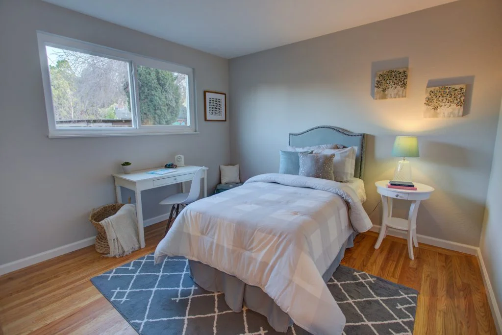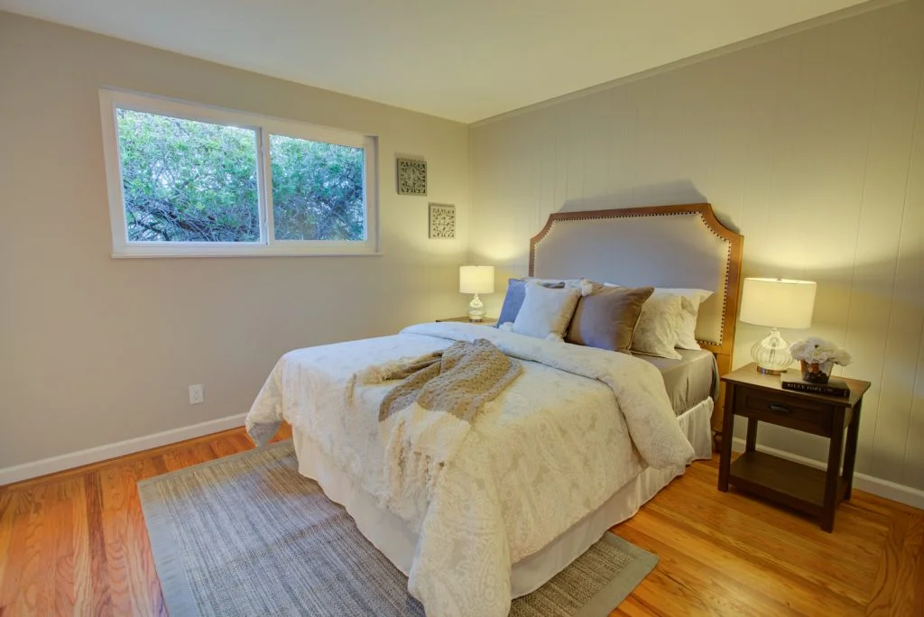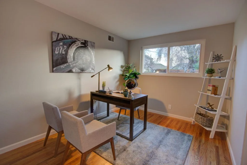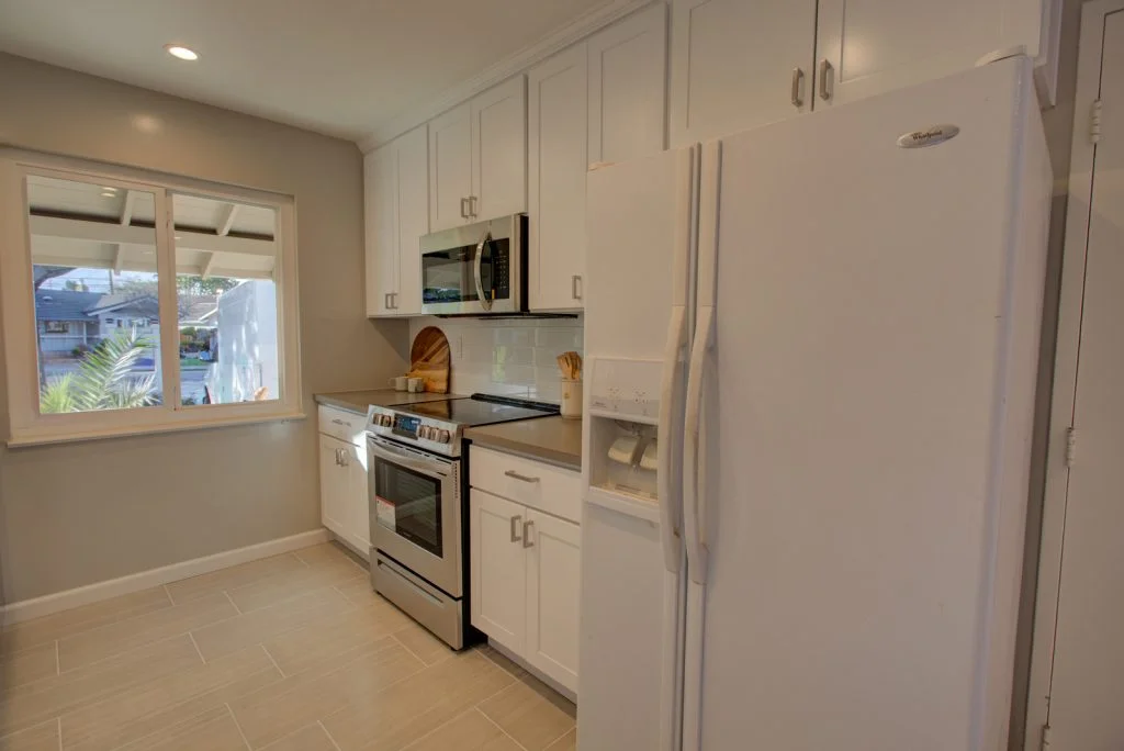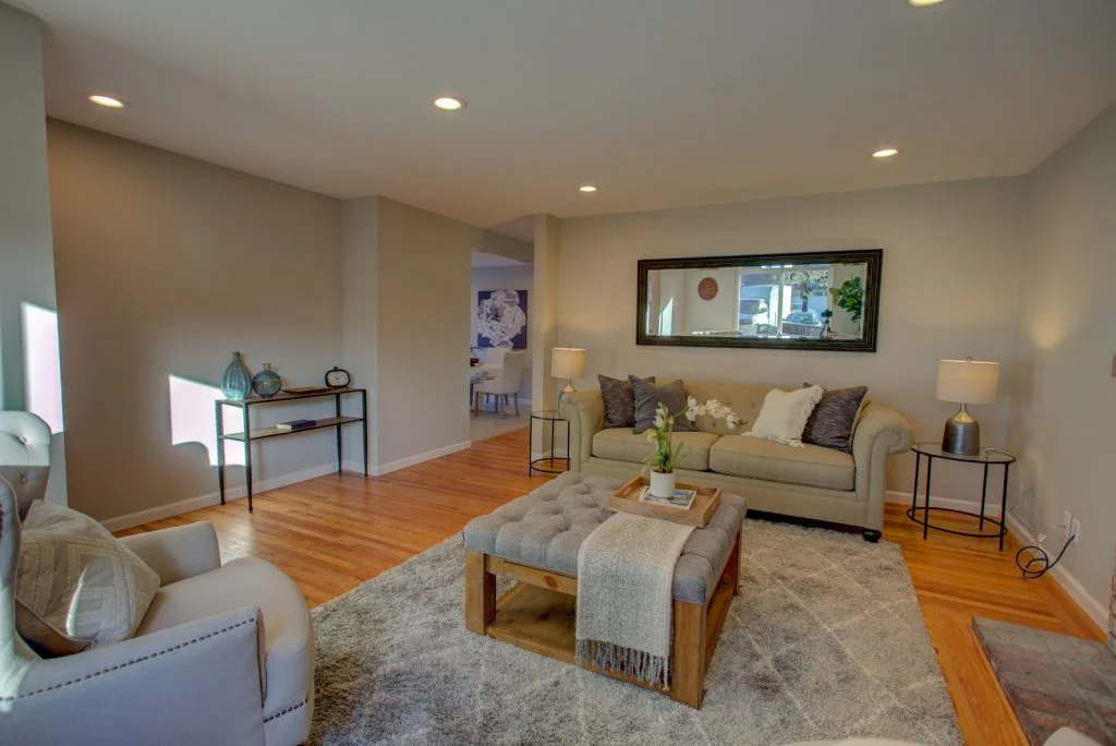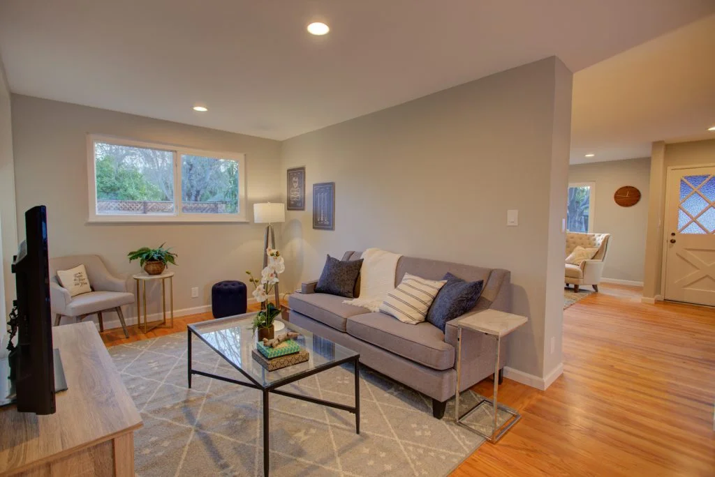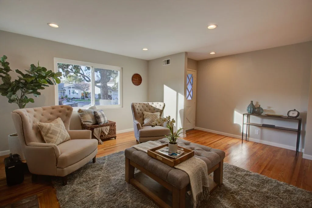 Charming single family home situated in desirable Darvon Park cul-de-sac features large lot with room to expand, three equally spacious bedrooms, separate family/living areas, and updated kitchen/bathrooms. A cozy front porch leads you into the sun-filled formal living area complete with a wood-burning fireplace, above mantel flat screen wiring, and LED recessed lighting. Updated eat-in kitchen features shaker-style cabinets, stainless-steel dishwasher, range, and microwave, quartz countertops, and dual-pane sliding glass door leading out to secluded backyard. The home sits in close proximity to Apple Spaceship campus, parks, and new Nob Hill Shopping center.