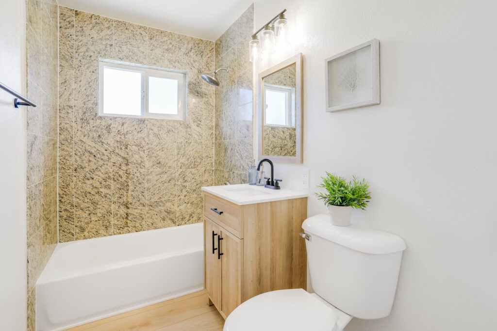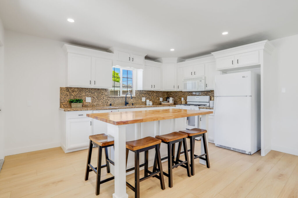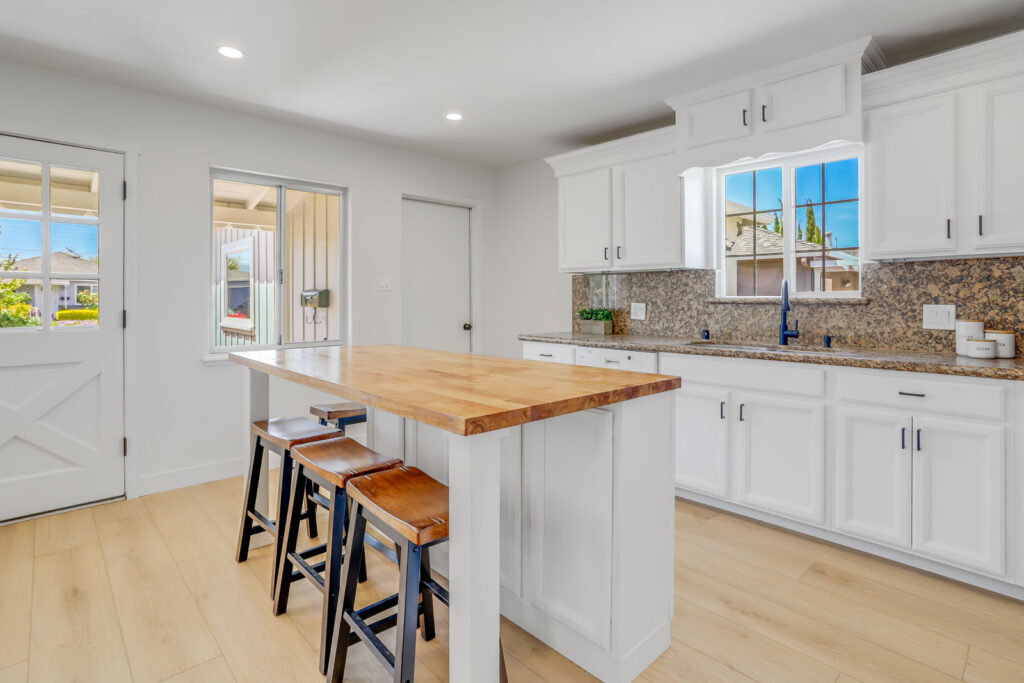 - Updated kitchen with granite countertops and oversize butcher block island with breakfast bar