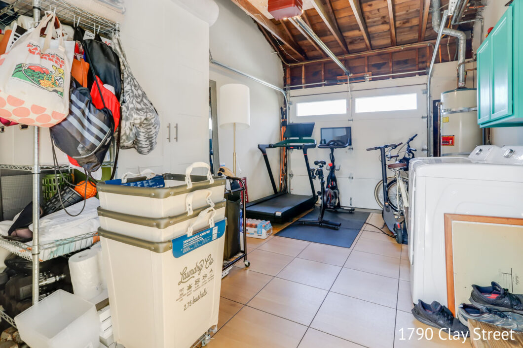 1790 Clay St: – 559 sq ft. 1bd/1ba. 1 car garage with laundry area and kitchen access. Wonderful bright, open floor plan with L-shaped kitchen and island looking out onto the living room. Charming backyard with concrete patio. Forced air heating and central AC.