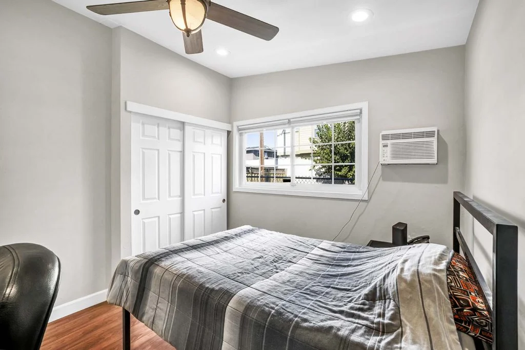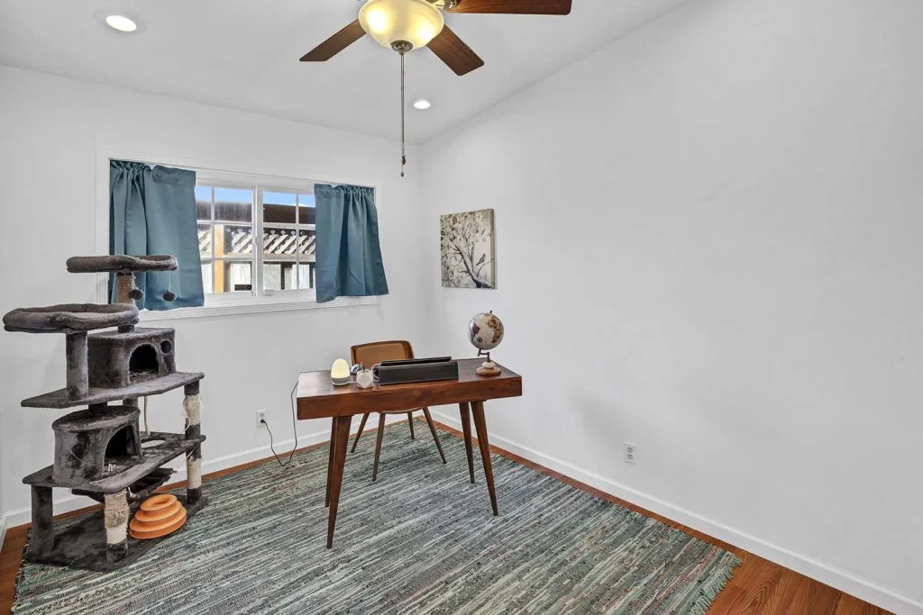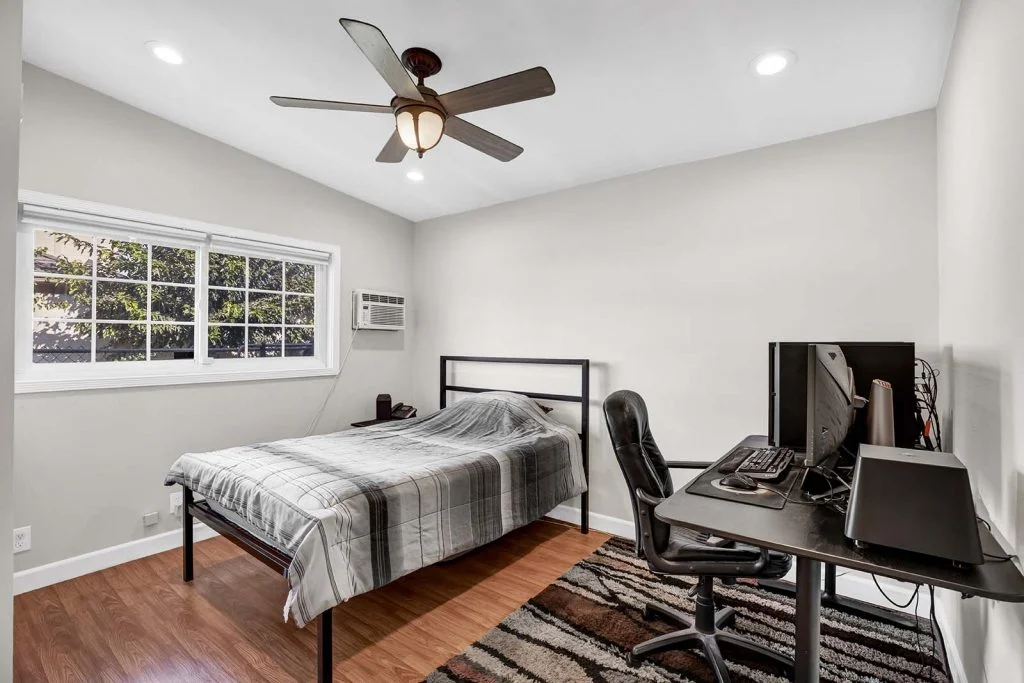 Wonderful mid-century modern style home located in the heart of Santa Clara features a large lot with potential for expansion, a gorgeous front deck with retractable SunSetter awning, and high ceilings throughout. The home’s sun-filled living room sits adjacent to the eat-in kitchen and the 3 spacious bedrooms are located at the rear of the house. The large backyard is complete with a covered patio, grass area, and endless possibilities for expansion including the option to add an ADU (Accessory Dwelling Unit) for rental income. Other features include new roof, new enlarged walkway & driveway, sun tunnels in the bathroom & kitchen, front & backyard sprinkler systems, new stone siding on exterior, new interior/exterior paint, stainless-steel appliances, 1 car garage with roll-up door/automatic opener, as well as LED recessed lighting & durable laminate flooring throughout. The home sits a short distance away from the Santa Clara Caltrain Station, Costco, parks, and major tech companies.