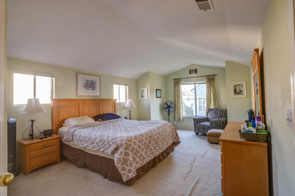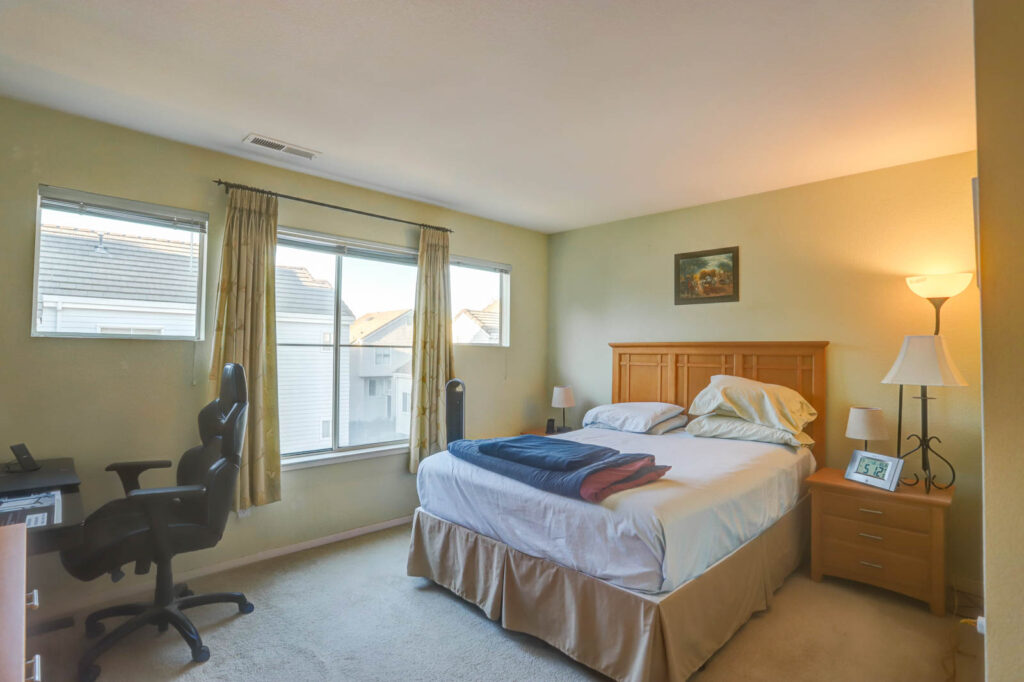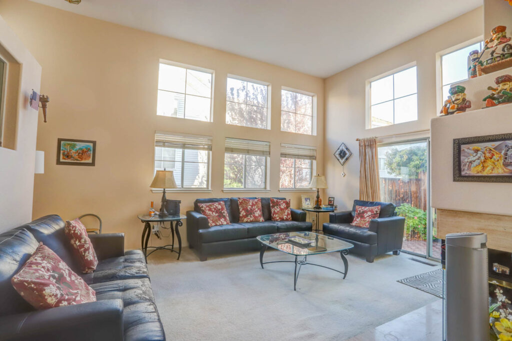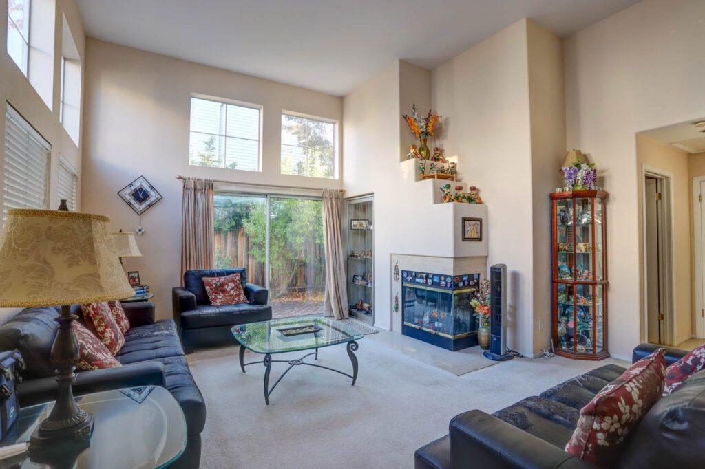 Bright and spacious corner lot home in desirable Sterling development. The tri-level 3bd/3ba home has a wonderful floor plan including 2 upstairs suites, 1 downstairs bedroom with adjacent full bath, 2 living areas, and a formal dining area. The large open kitchen overlooks the family room and features oak cabinetry and center island with granite slab countertops. Adjacent to this sits the spacious dining area that looks out onto the first-floor formal living room. The first floor features extra tall ceilings, a fireplace, and access to the backyard. Low maintenance backyard is easy to maintain and perfect for entertaining/relaxing. Additional features include central AC, 2 car garage with an automatic opener, dual pane windows, and recessed lighting. Central location with easy commute access, minutes from Costco, access to Calabazas trail, schools, parks, shopping, dining, and major tech companies including Nvidia and Apple.