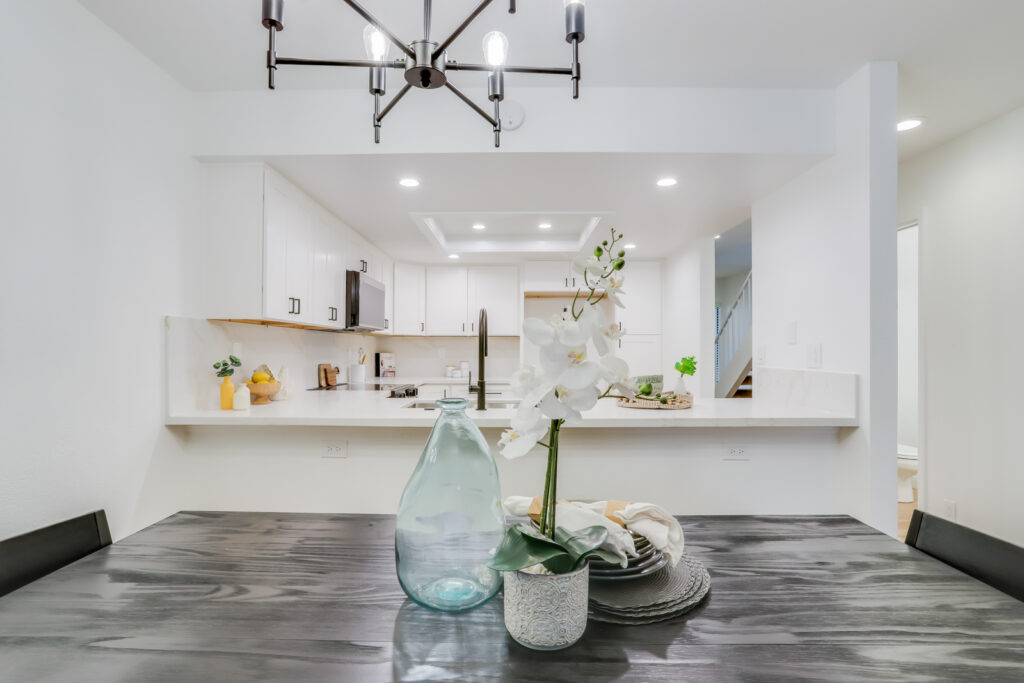 Discover this beautiful 2 bedroom, 2.5 bathroom, townhome, with a spacious backyard patio. This home offers the perfect blend of modern luxury and convenient living. With two large master bedrooms, each featuring vaulted ceilings, and their own en-suite bathrooms, this home is ideal for families or those who value privacy. The newly remodeled kitchen is a chef’s dream, boasting sleek quartz countertops and backsplash, new cabinets, and state-of-the-art stainless steel appliances. Enjoy the convenience of SMART home technology as you control your appliances with ease. The downstairs is adorned with luxurious plank flooring, adding a touch of elegance and durability. This home features a sunlit open-floor plan, attached 1 car garage, large private patio with pavers, upstairs in-unit laundry with washer and dryer, and community swimming pool. Conveniently located in a highly desirable community, this townhome offers easy access to shopping centers, and major transportation routes. Don’t miss this opportunity to make this stunning property your new home.