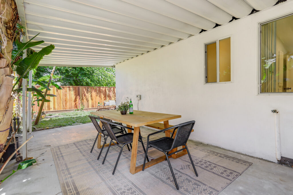 Nestled in the serene Bowers Crest neighborhood, this bright and airy home welcomes you with an abundance of natural light and a warm, inviting atmosphere. Step inside to a spacious living room featuring a cozy gas fireplace. The thoughtfully designed layout includes separate, generous living and family rooms, providing ample space for both entertaining and everyday living. The heart of this home is its remarkably spacious kitchen, boasting extensive counter space, a charming coffered ceiling, and a dedicated dining area that’s ideal for gatherings. The primary bedroom offers a private retreat with its own en-suite bathroom. Convenience is key with inside laundry, and with recent upgrades, including new LVP flooring, fresh interior paint, and new hardware throughout. Enjoy the modern touch of LED recessed lighting and mirrored closet doors in all bedrooms. Dual-pane windows ensure energy efficiency and a peaceful environment. Three separate sliding glass doors connect the interior to a private backyard oasis, complete with a covered patio area, perfect for outdoor enjoyment. Parking is a breeze with an extra-large two-car carport. All of this is situated in a quiet, serene neighborhood, making it the perfect place to call home.