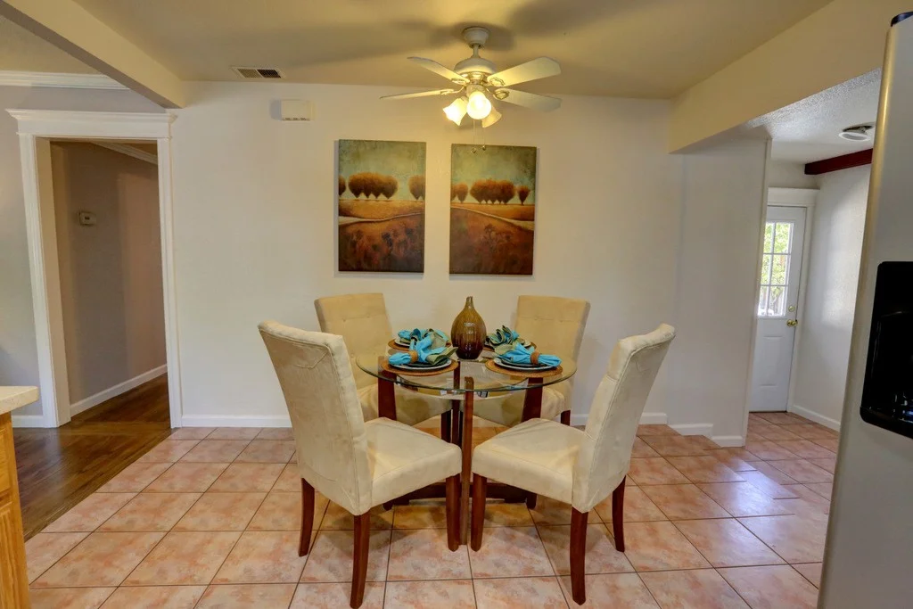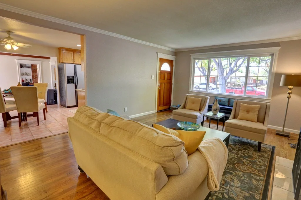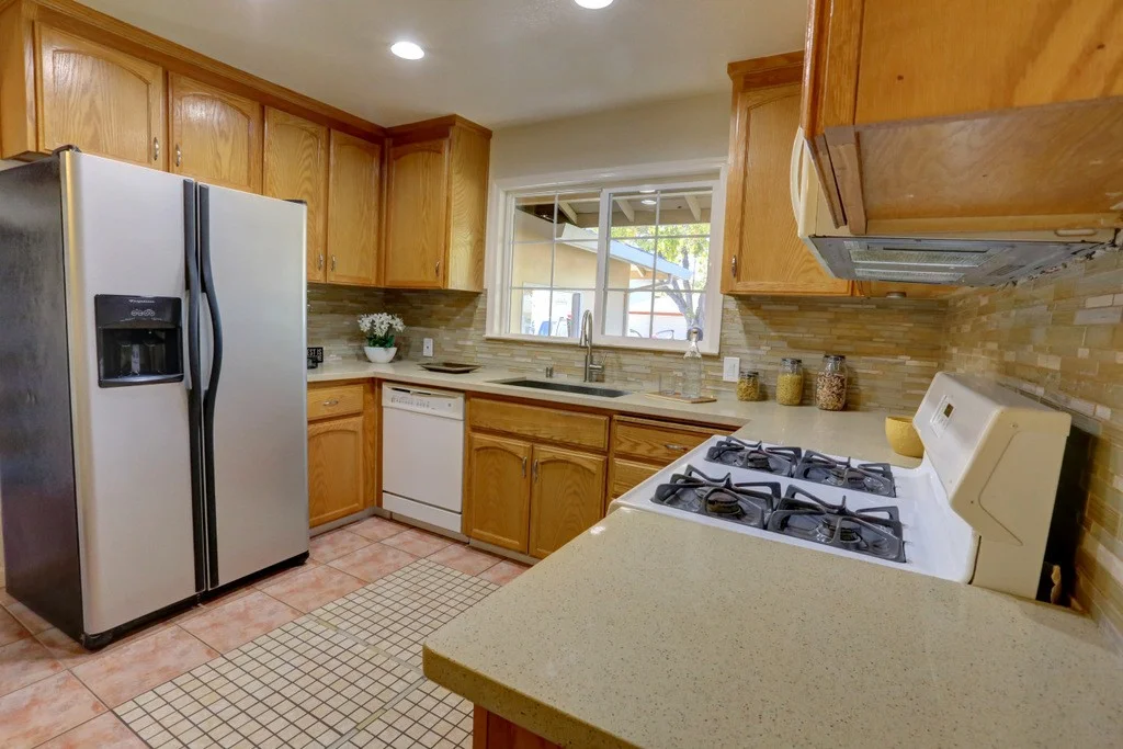 Beautifully maintained and updated home in Santa Clara’s Lawrence Meadows neighborhood. The home features a spacious living room with fireplace, updated kitchen and separate family room area. Kitchen features quartz countertops, LED recessed lighting, stainless steel undermount sink, tile backsplash, oak cabinets and gas cooking. Additional features include dual pane windows, two car garage with automatic opener, hardwood flooring. Spacious backyard with patio and lawn area, and storage shed.