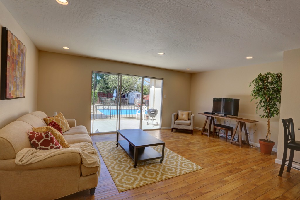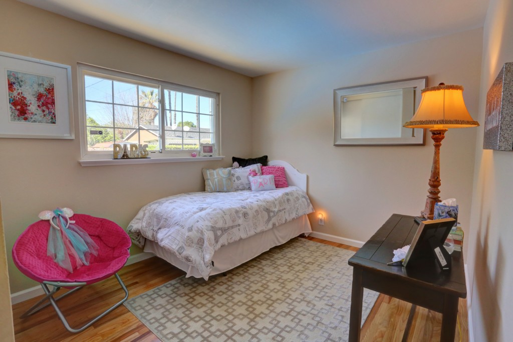 Spacious 4 bedroom 2 bath home in the Bonnie Brae neighborhood of Santa Clara with an oversized lot. This home features a living room and separate family room, central kitchen and large eating area. Bedrooms feature hardwood flooring and sliding door closets. Other features include dual pane windows, newer dimensional composition roof, central heating, recessed LED lighting, and 2 car garage with automatic door opener. Backyard is large and features a patio, in ground lap pool, and lawn area.