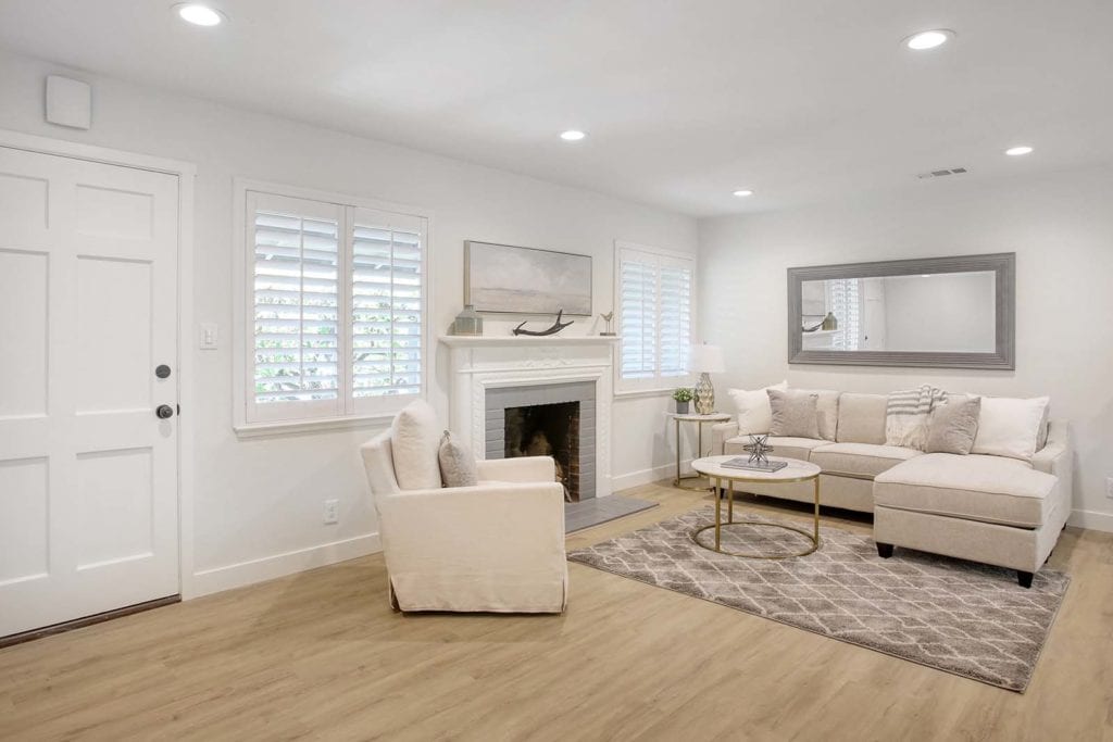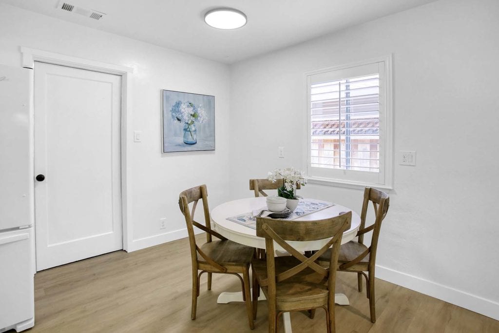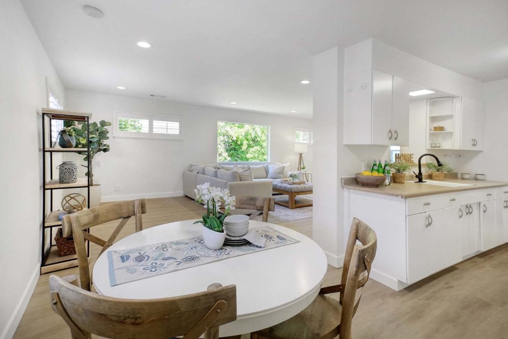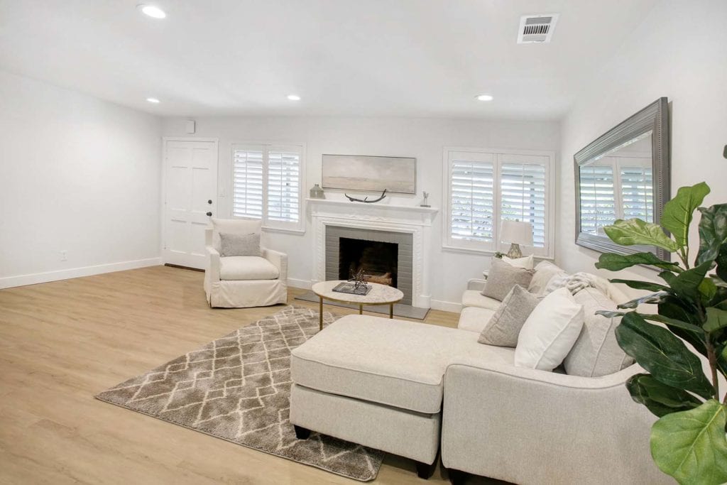 Beautifully-maintained and expanded home located in the heart of Santa Clara. The home features new flooring throughout and offers a wonderful layout with 3 bedrooms, 2 full bathrooms, and 2 separate living areas separated by the kitchen and large dining area. The sun-filled, expanded family room features built-in shelves, passthrough window to the eat-in kitchen, large picture window, & slider leading out to the secluded backyard. Serene backyard is complete with mature fruit trees, sprinkler system, & storage shed. Additional features include expansive master suite with added bathroom, central heating/AC, new driveway, newer roof, recessed lighting in living areas, updated electrical system, updated interior/exterior paint, wood-burning fireplace, & shutter window treatments. Central Silicon Valley location close to major tech companies, great schools, parks, & shopping. Don’t miss out on the opportunity to own this move-in ready home in the desirable Scott Lane Gardens neighborhood!