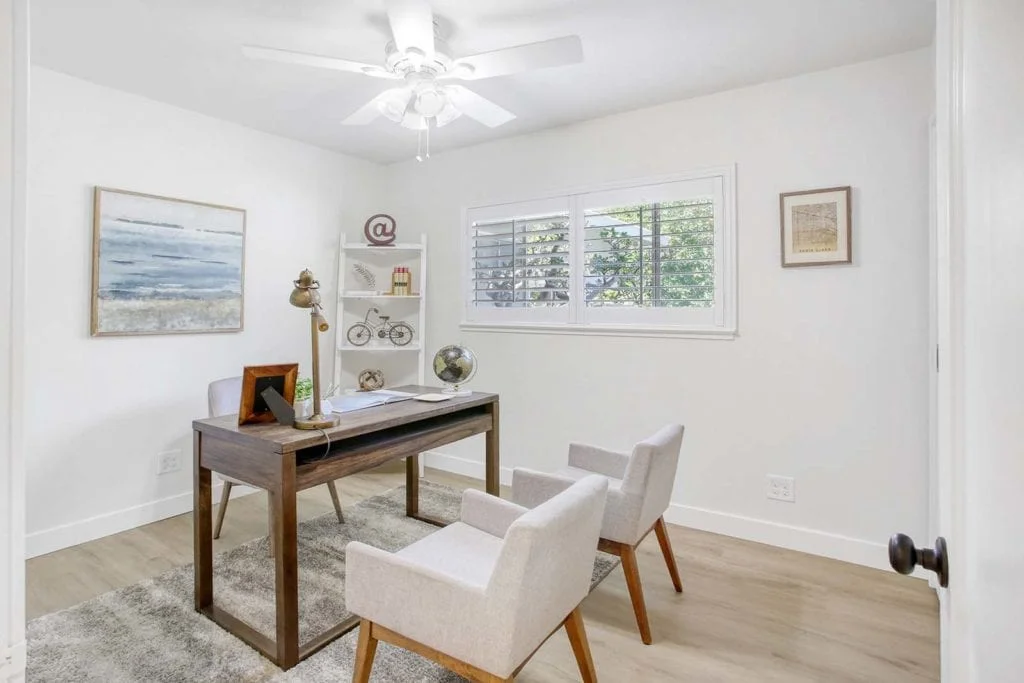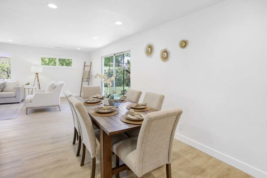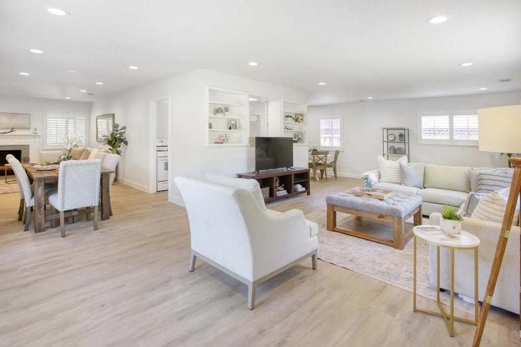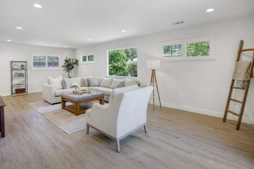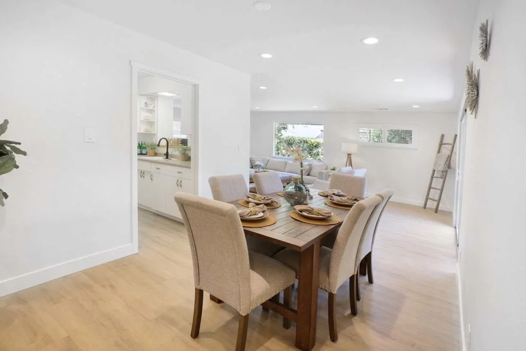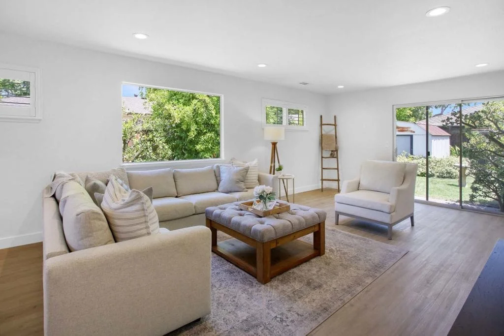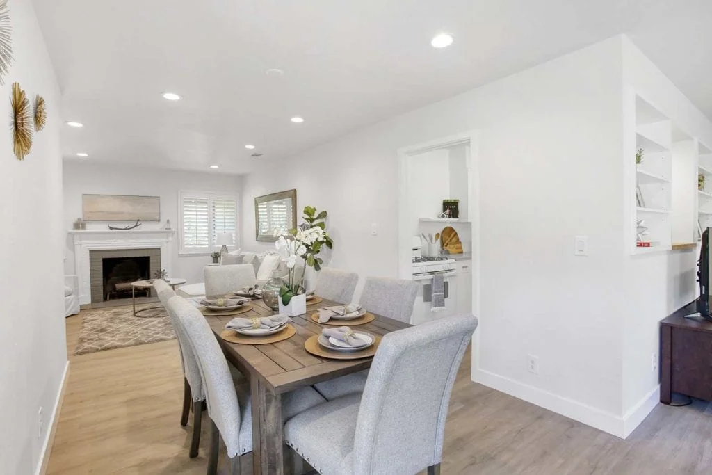 Beautifully-maintained and expanded home located in the heart of Santa Clara. The home features new flooring throughout and offers a wonderful layout with 3 bedrooms, 2 full bathrooms, and 2 separate living areas separated by the kitchen and large dining area. The sun-filled, expanded family room features built-in shelves, passthrough window to the eat-in kitchen, large picture window, & slider leading out to the secluded backyard. Serene backyard is complete with mature fruit trees, sprinkler system, & storage shed. Additional features include expansive master suite with added bathroom, central heating/AC, new driveway, newer roof, recessed lighting in living areas, updated electrical system, updated interior/exterior paint, wood-burning fireplace, & shutter window treatments. Central Silicon Valley location close to major tech companies, great schools, parks, & shopping. Don’t miss out on the opportunity to own this move-in ready home in the desirable Scott Lane Gardens neighborhood!