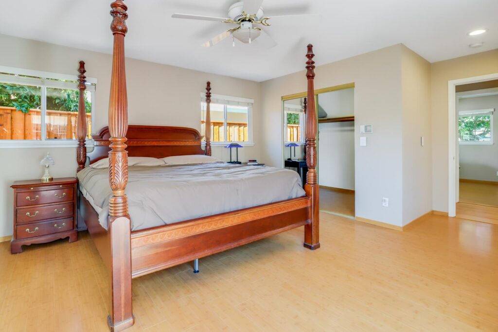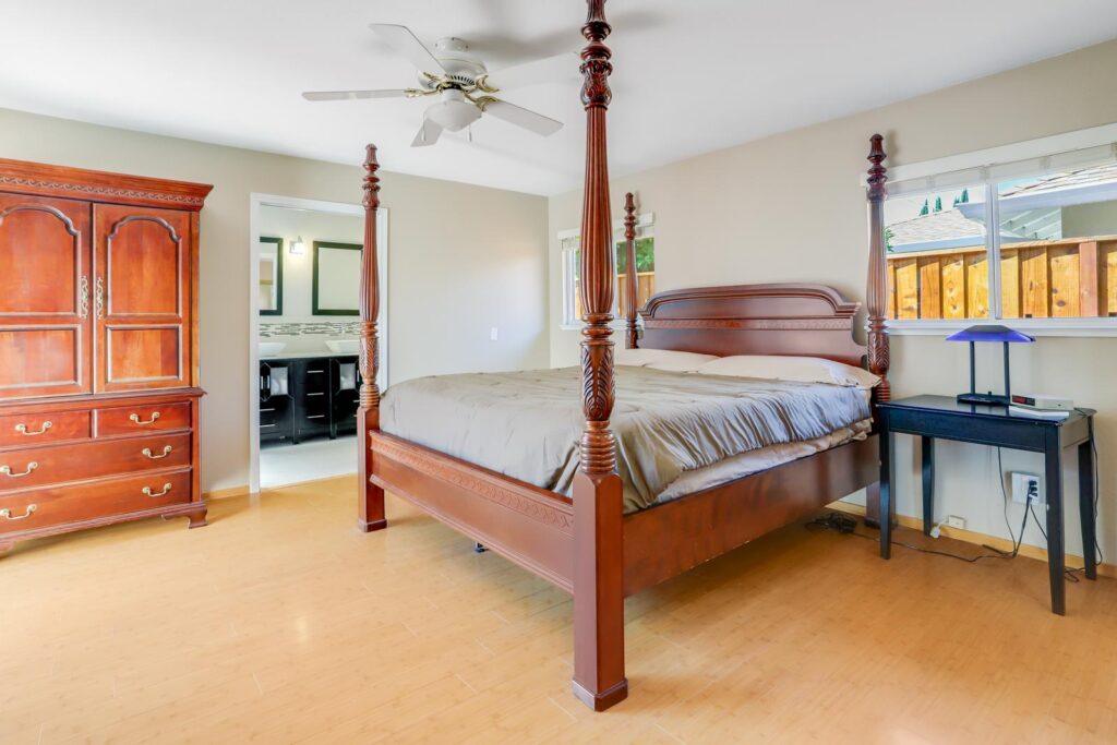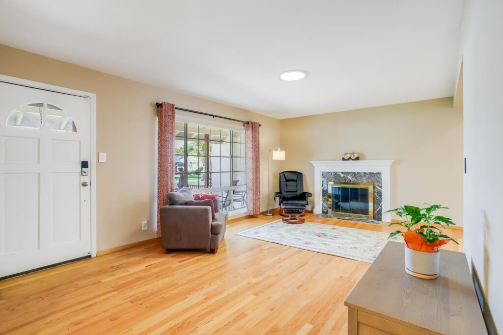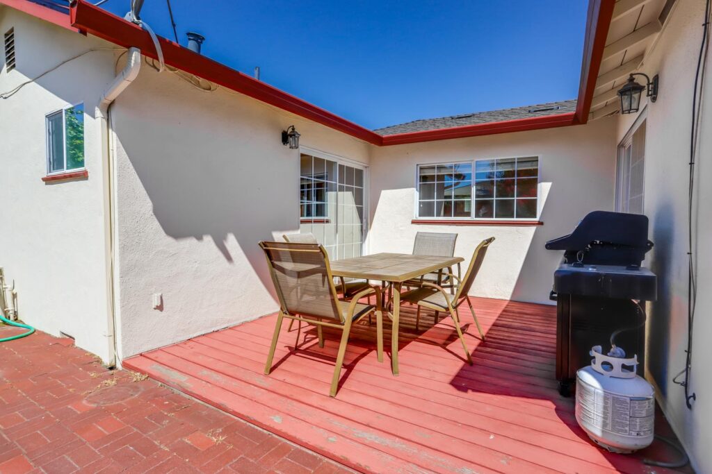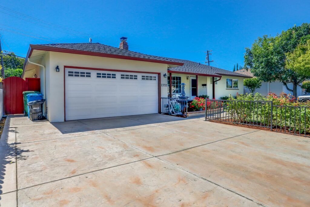 Beautifully-maintained and updated home located in the heart of Santa Clara. The home features offers a wonderful open floor plan with great room. The sun-filled great room features vaulted ceiling, 2 skylights, beautifully remodeled kitchen, spacious dining area, and living area overlooking the backyard. The updated kitchen is complete with SS appliances, granite countertops, large garden window, and huge island with sink, wine fridge, and breakfast bar. Serene backyard is complete with deck, flagstone and brick walkways, grass, citrus tree, and gated dog run with shed. The primary retreat with private entrance to the backyard deck and spa-like ensuite with freestanding tub, dual sink vanity, and shower w/ frameless enclosure. Additional features include AC, updated bathrooms, finished garage with epoxy flooring, large front porch, & formal living room with oversized window and fireplace. Central Silicon Valley location close to major tech companies, great schools, parks, & shopping.
