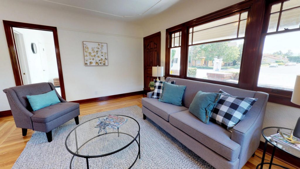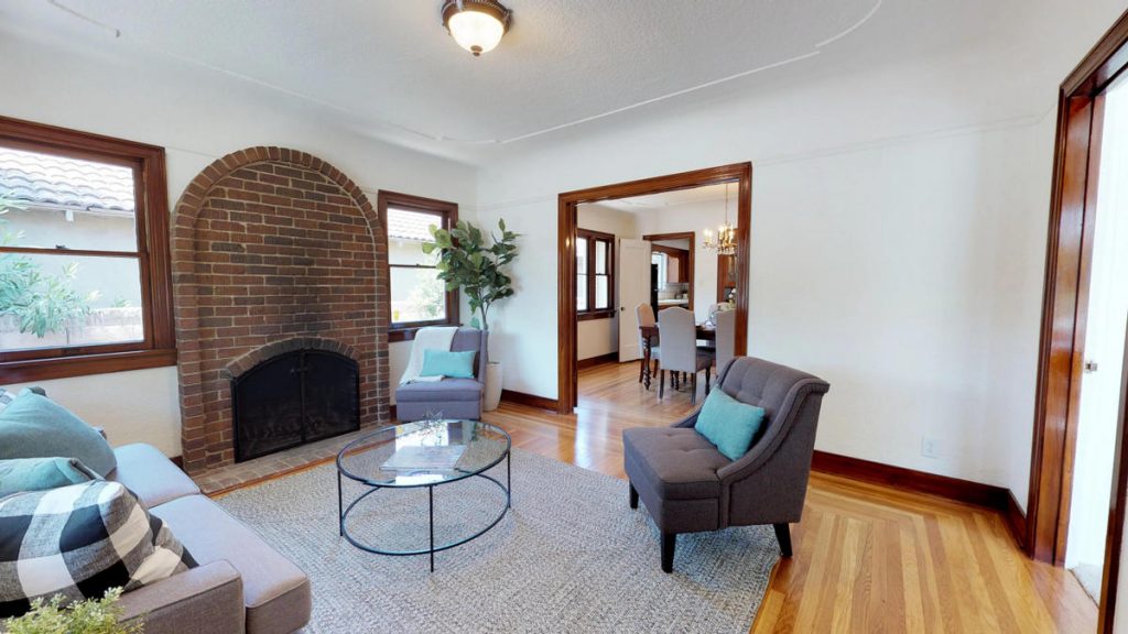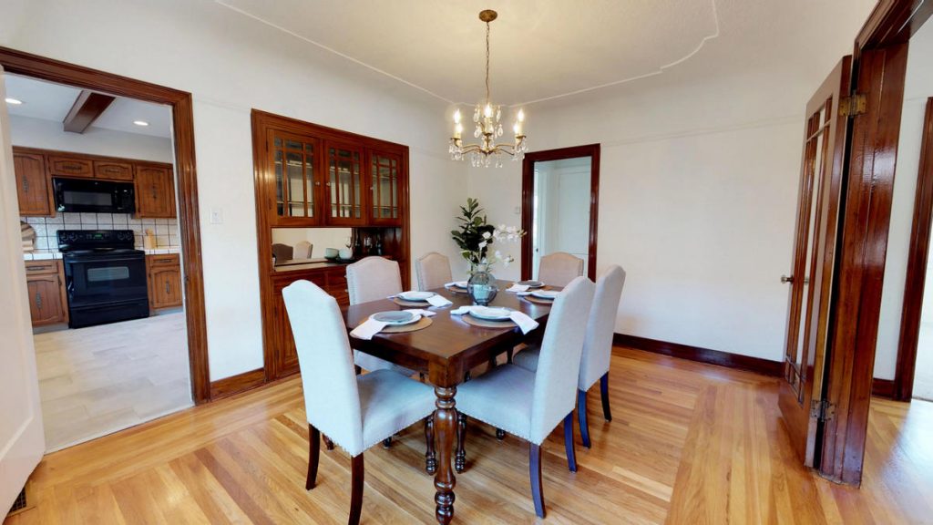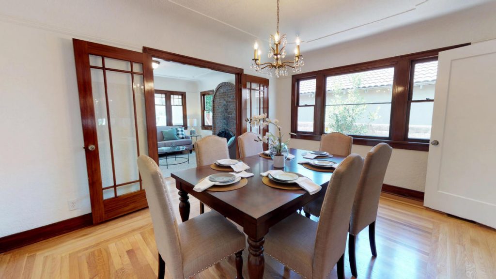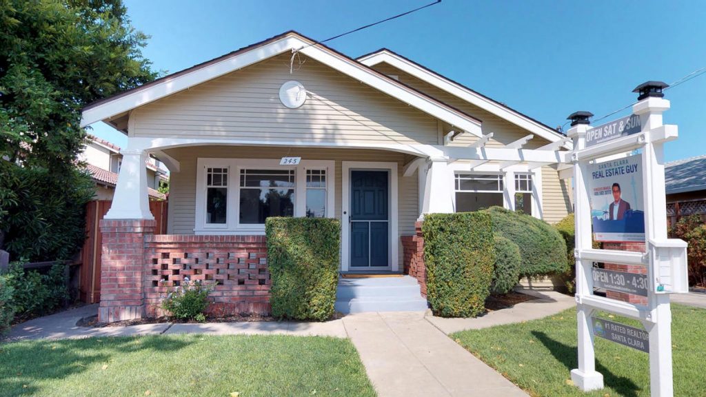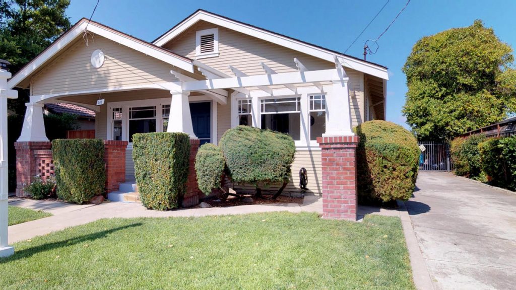 Charming Craftsman-style home situated in the heart of Old Quad neighborhood features cozy front and back porch, formal dining room with built-in buffet, and original woodwork throughout. Eat-in concept kitchen features updated porcelain tile flooring, recessed lighting, tile countertops, original solid hardwood cabinets, and large garden window. The home features 3 bedrooms, two bathrooms, and a laundry room with quarter bath and pantry. Backyard features covered porch with access to three quarter basement, grassy area, and access to detached garage. Convenient location to Franklin Square, parks, Santana Row, SJ Airport, and new Apple Campus.