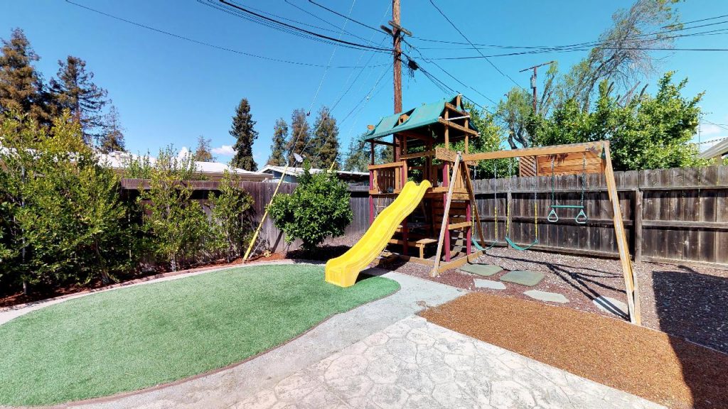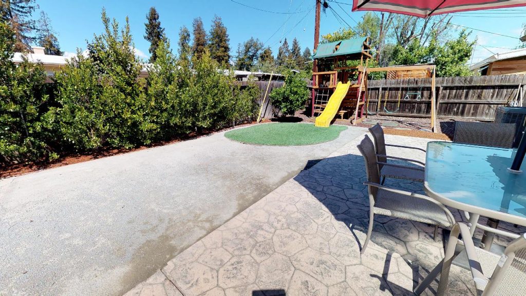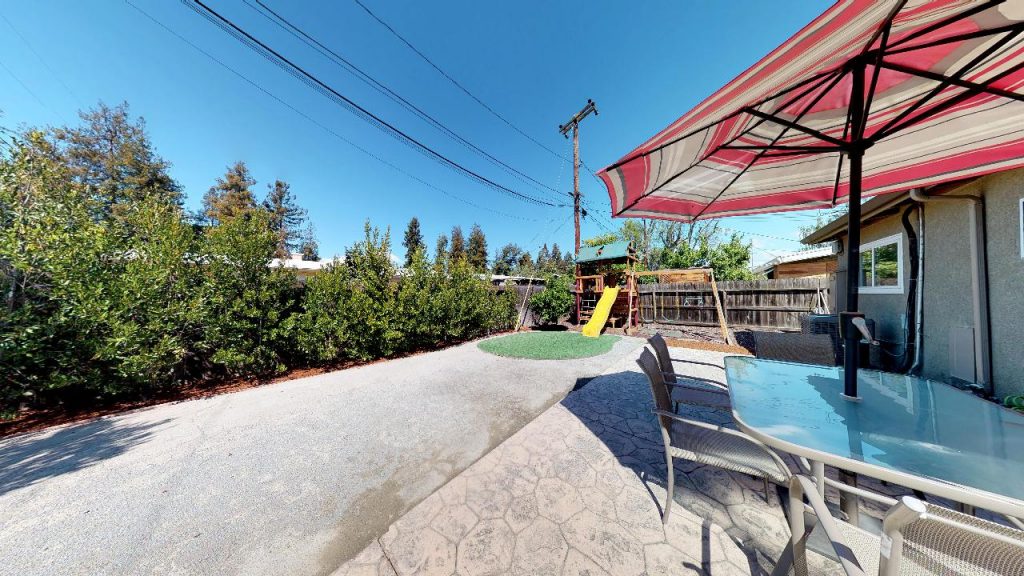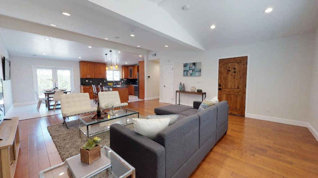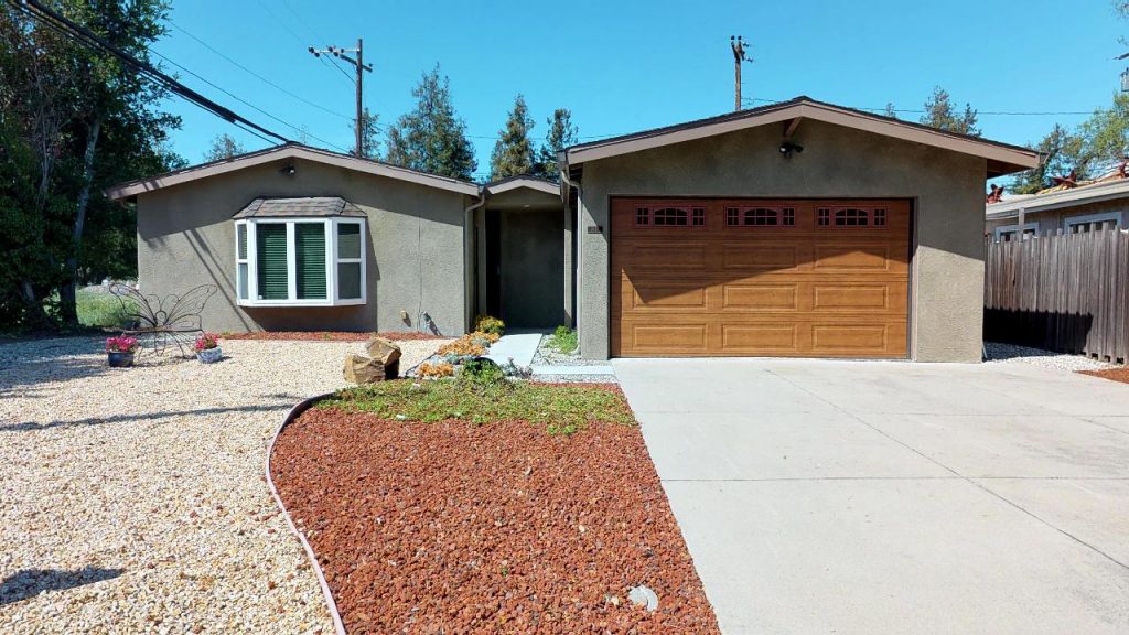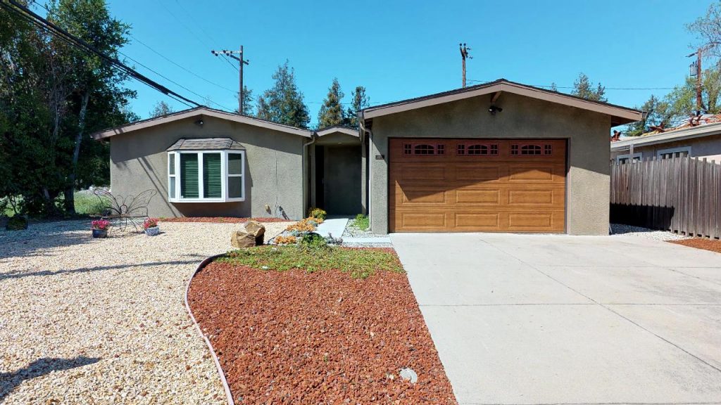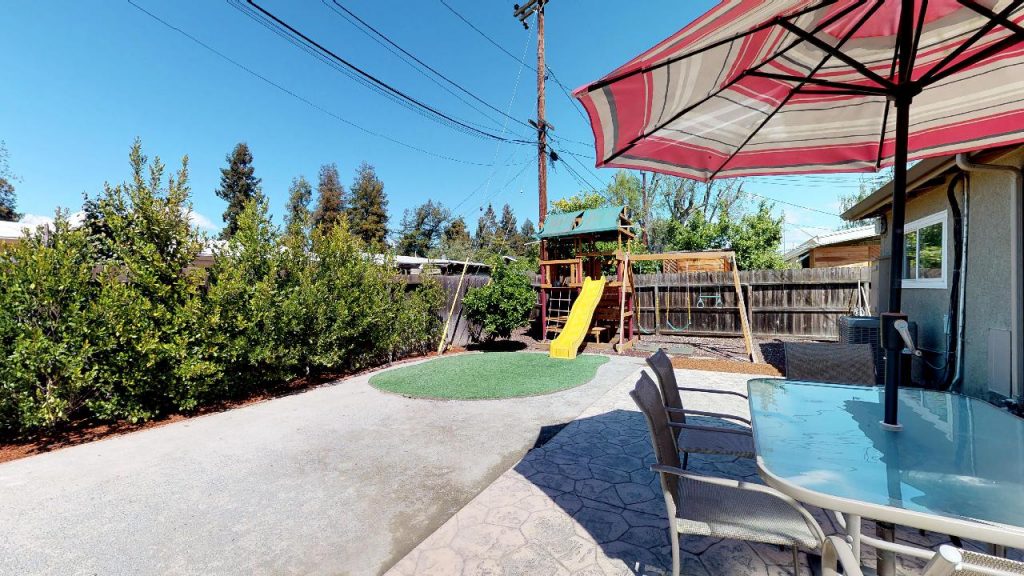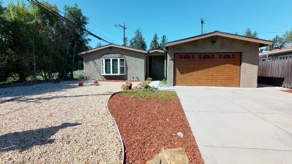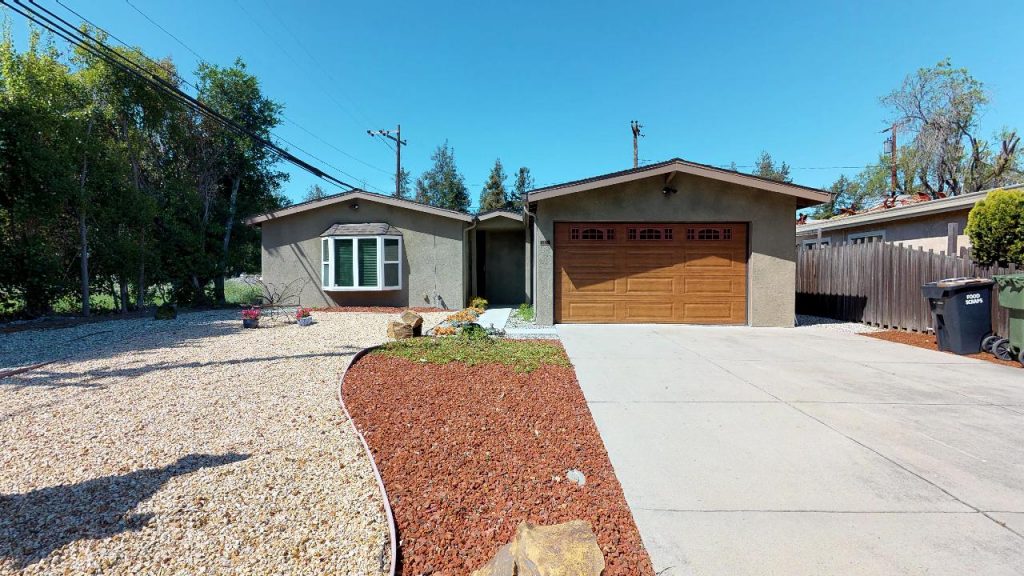 Remodeled in 2015, this beautiful, contemporary home features an expansive great room with dramatic vaulted ceilings open to a large island kitchen. The living room is spacious and features a bay window and recessed LED lighting. A large island kitchen with ample cabinetry, over island drop down pendant and LED recessed lighting, Blue Pearl granite slab countertops, under-mount stainless steel sink, breakfast bar, and stainless steel appliances. Master bedroom suite features a beautiful ensuite bath with dual vanity, walk-in closet with organizers, spacious stall shower with frameless glass enclosure, modern fixtures, hardware, and lighting. Other features include tankless water heater, rustic hand-scraped hardwood flooring throughout, updated insulation, new electrical, new plumbing, children’s play structure, artificial turf, patio with retractable awning, automatic drip irrigation, dual pane windows and french doors, finished 2 car garage with roll-up door and automatic opener.