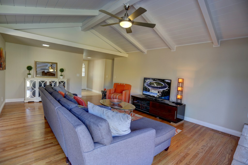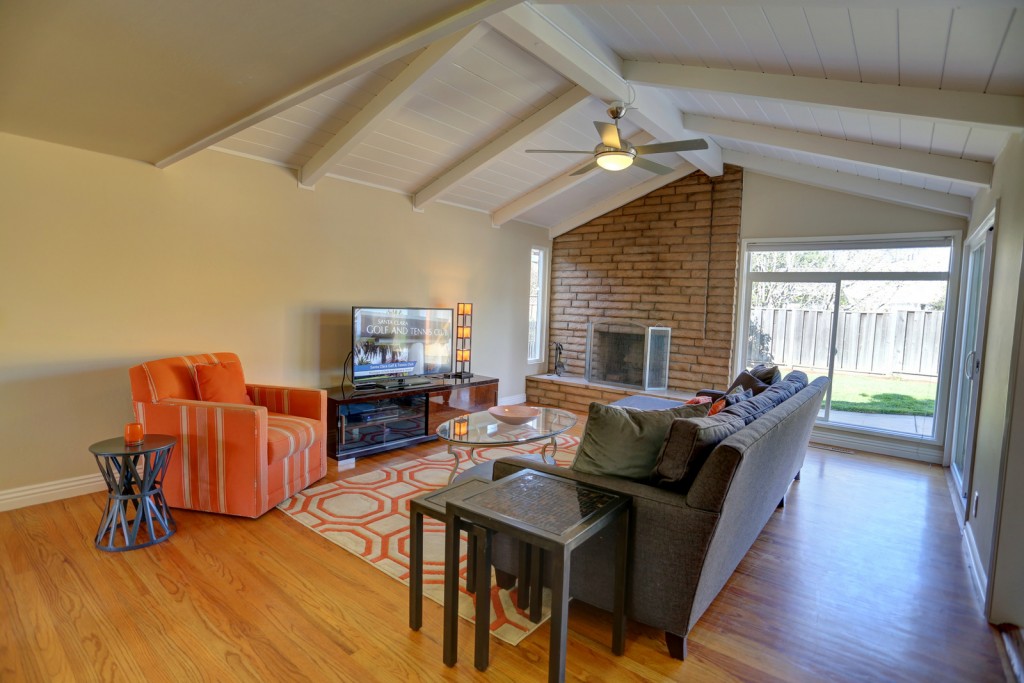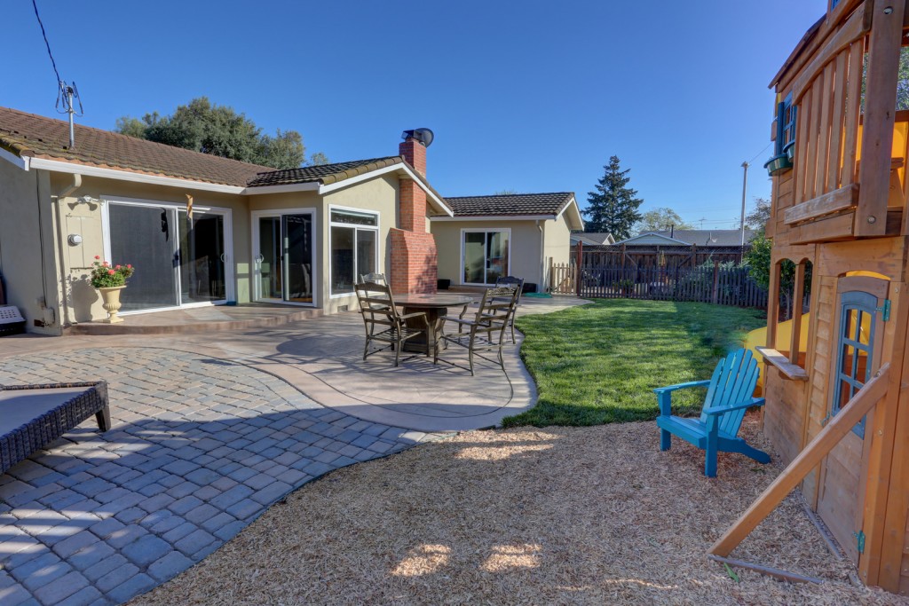 4 bedroom Forest Park home with large 10k Sq Ft. corner lot & Cupertino Schools. This home has a wonderful floor plan with spacious eat in kitchen, separate family room & living rooms & spacious bedrooms. Kitchen is updated with contemporary shaker style cabinets, granite countertops, tile floor, tile backsplash, undercounter lighting, recessed lighting & Bosch stainless steel cooktop. Livingroom is spacious & features vaulted ceilings, large fireplace, picture window overlooking the backyard & sliding door leading to the large rear patio. Separate family room / formal dining area open to living room & features access to the backyard through its own sliding glass door. Master bedroom is spacious & features a private bath with stall shower, his & her closets & sliding glass door to rear patio. Other features include dual pane windows, metal tile roof, large 2 car garage with automatic opener & roll up door, copper plumbing & beautifully landscaped yards with automatic sprinklers.